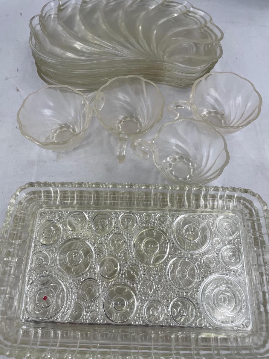 Anchor Hocking Viking snack set & Hazel Atlas Swirl Shell Snack plate