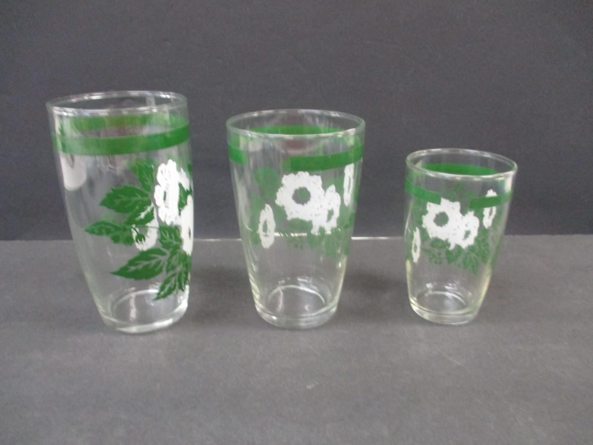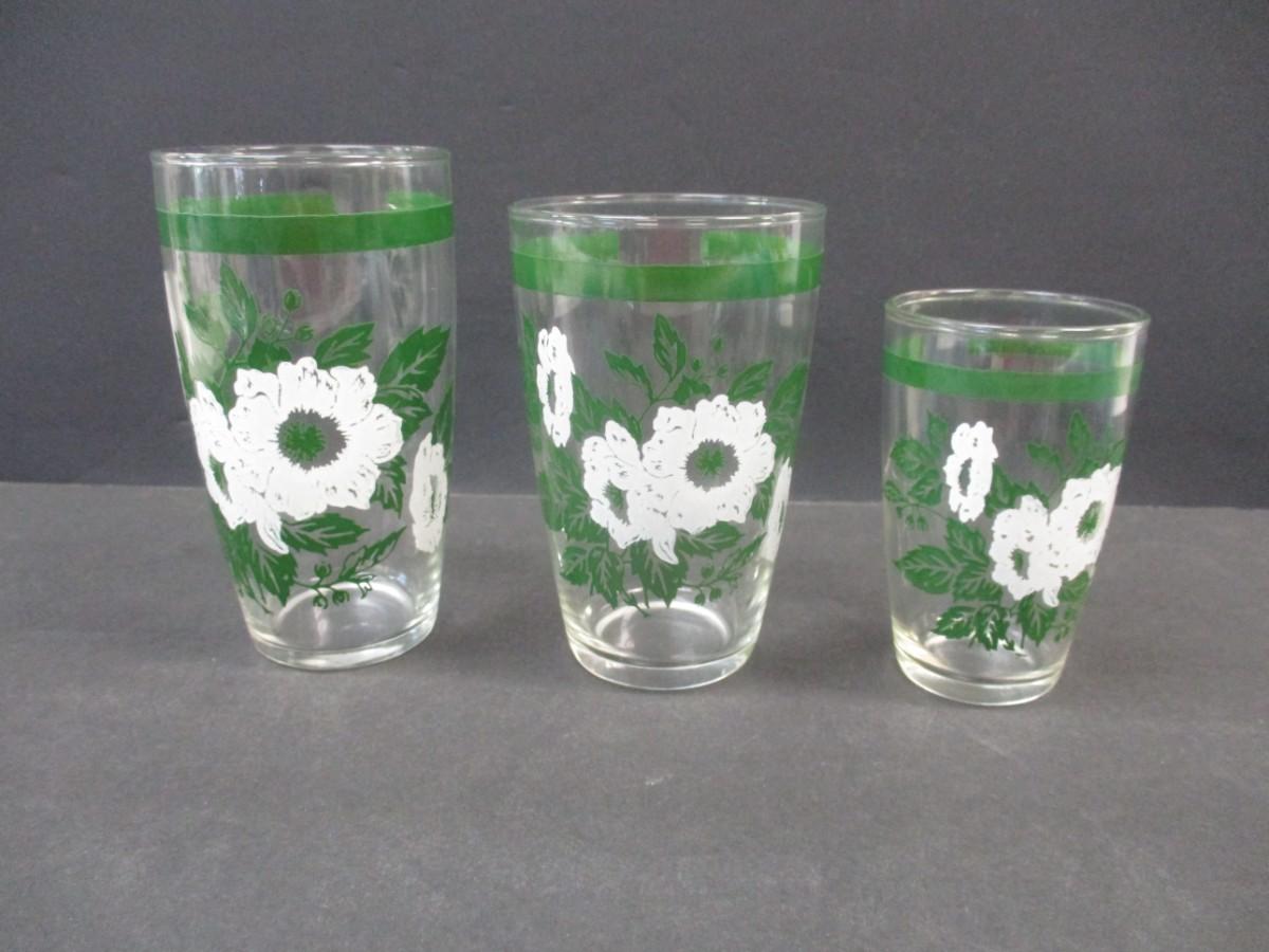 Anchor Hocking Vintage Beverage Glasses White Flowers