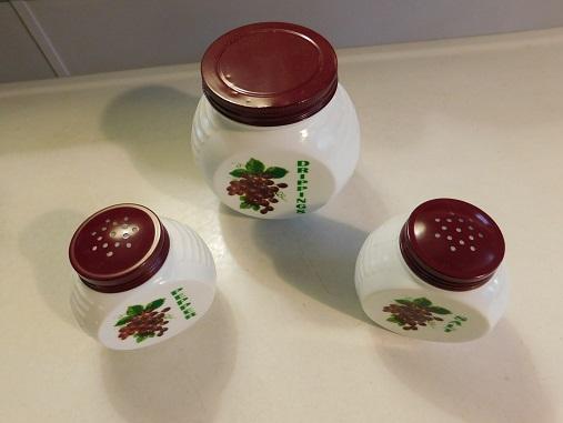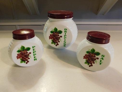 Anchor Hocking Vitrock Grape Cluster Grease Jar and Salt/Pepper