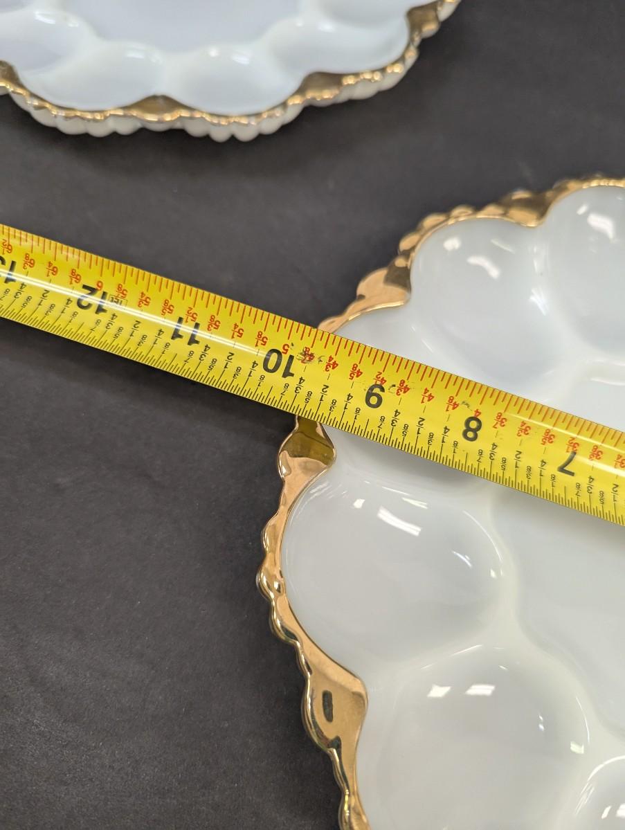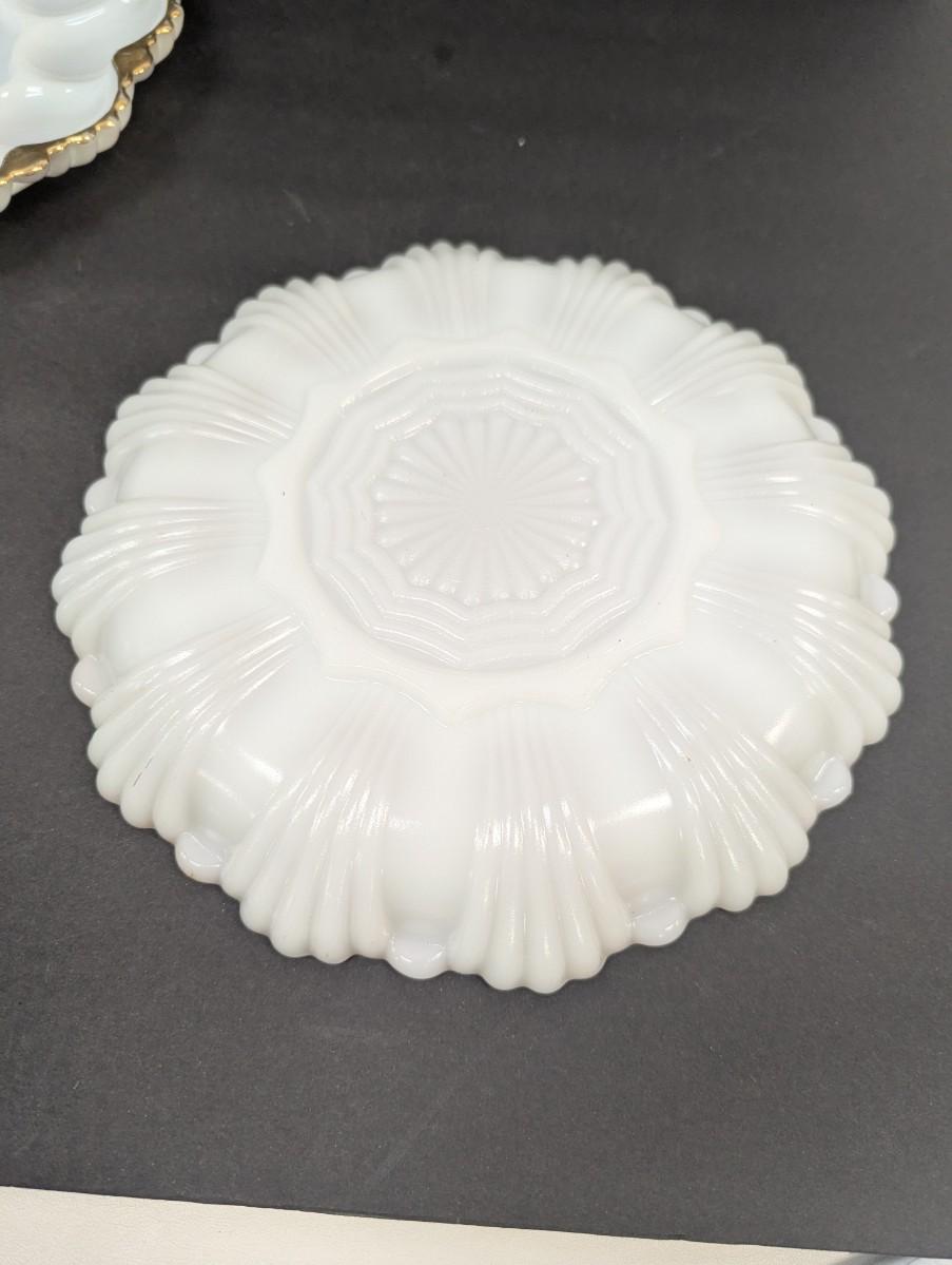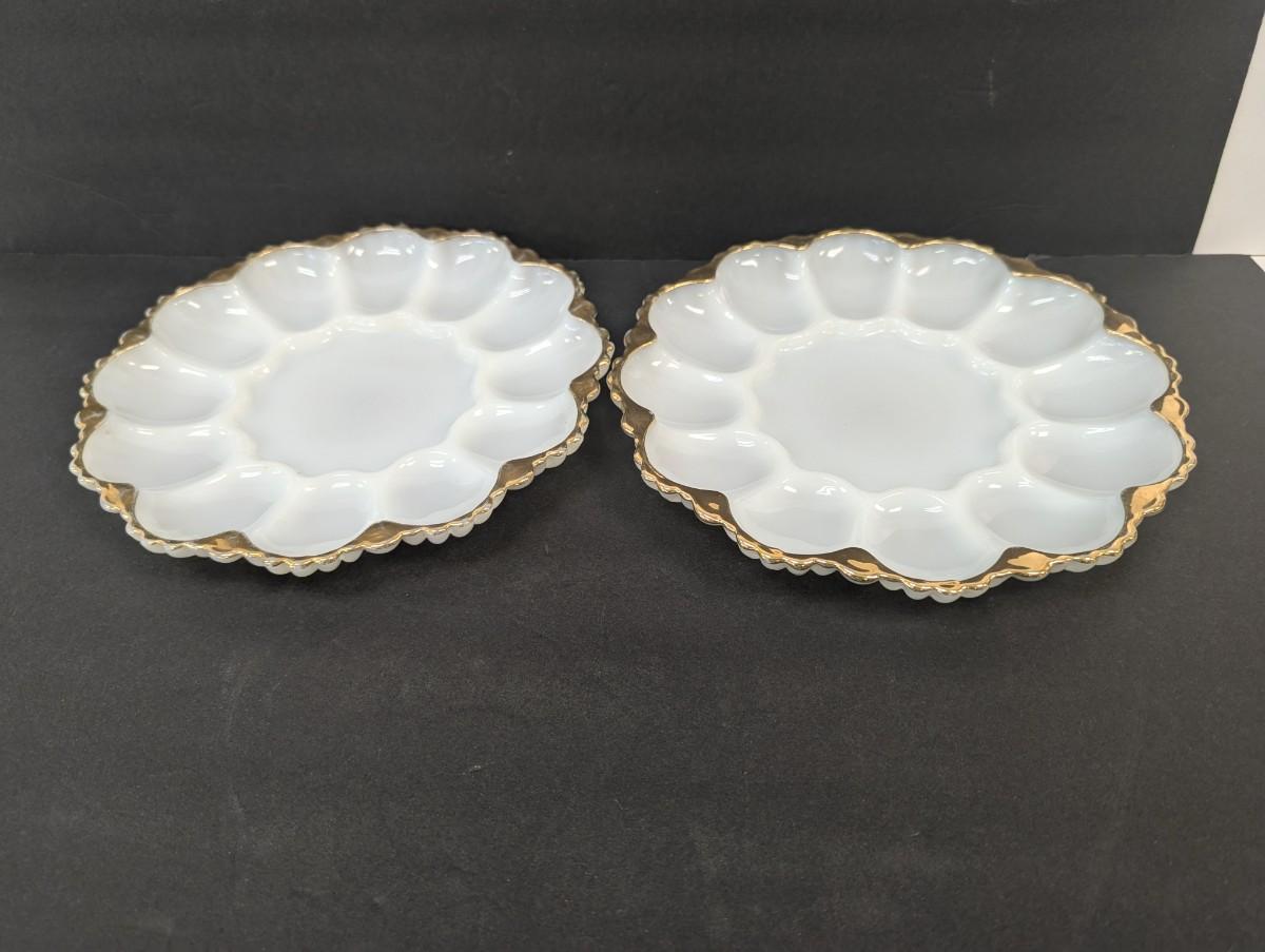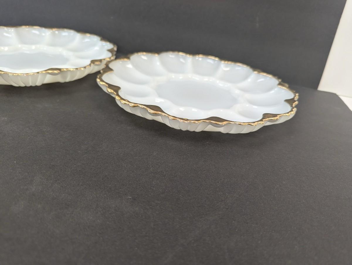 Anchor Hocking White Milk Glass Oyster Plates With Gold Trim