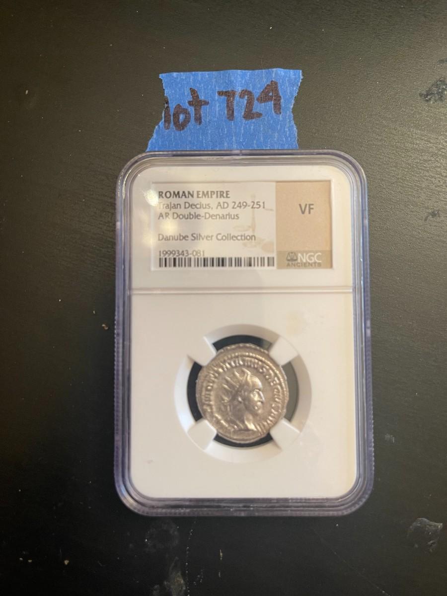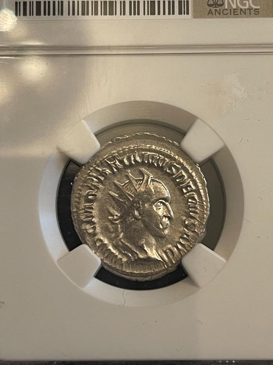 Danube Silver collection NGC Ancients Cert. Roman Empire Trojan Decius AD 249-251 AR Double Denarious VF coin.