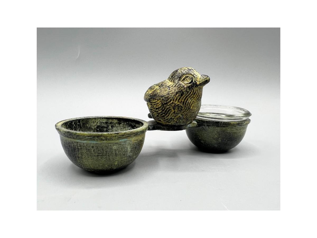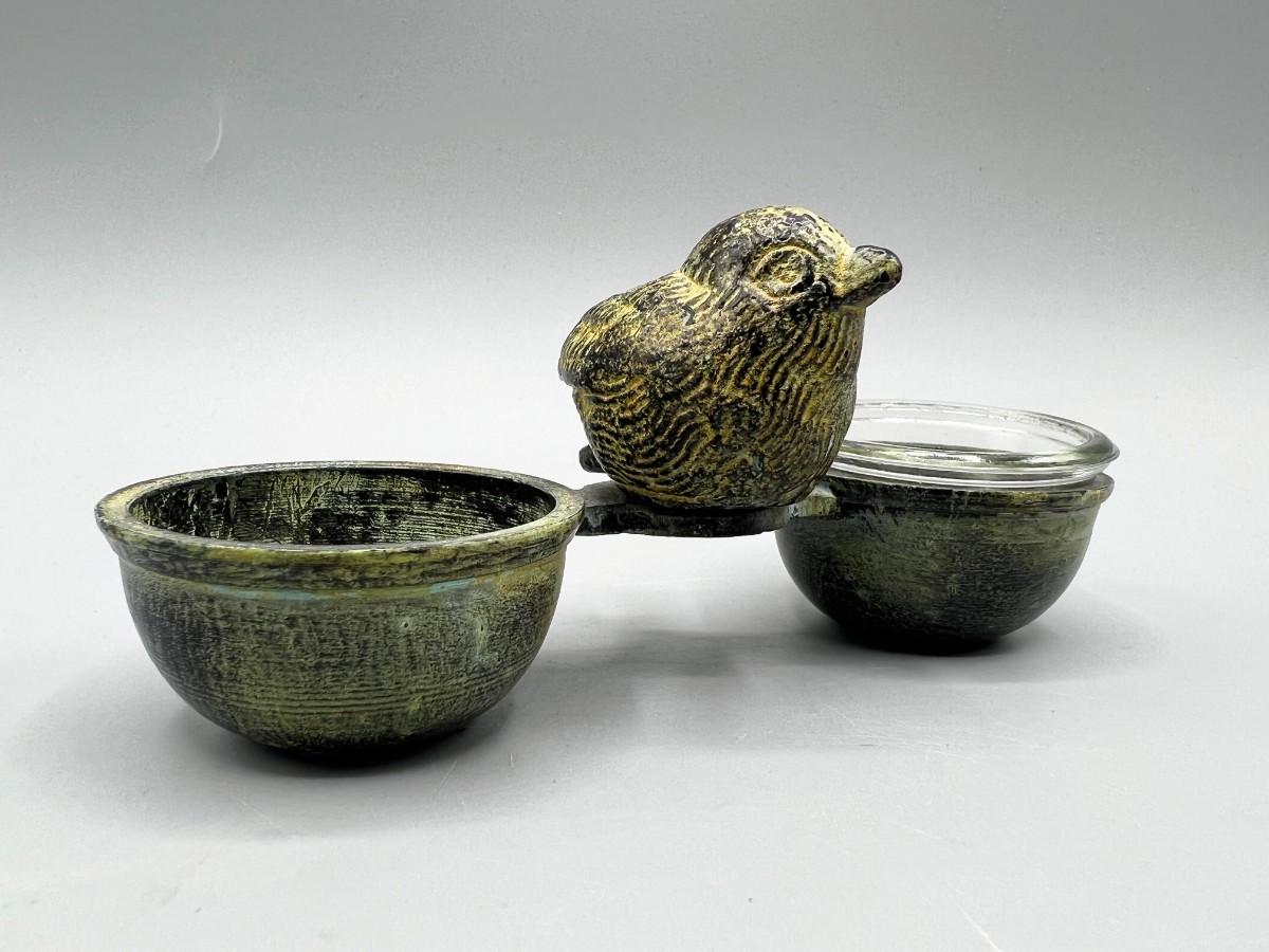 Ancient Graffiti Cast Metal Bird Candle Holder, there is no significant damage to the piece and is in good displayable condition. Check pictures for more details and for sizing. The candle holder only comes with one glass candle cup.