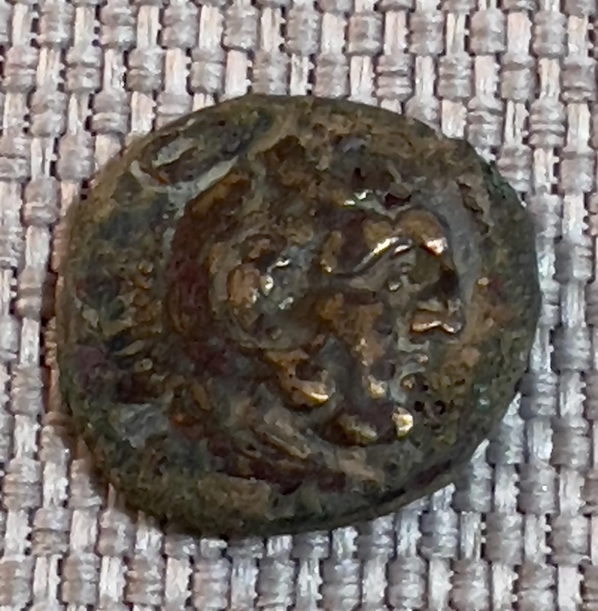 Ancient Greek Bronze Coin Bust and Archer on a Horse Brass? Bronze?