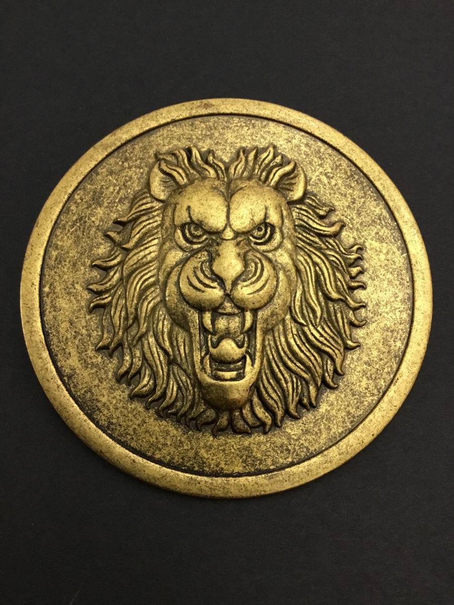 Ancient Greek design, lion, queen, circular brooch