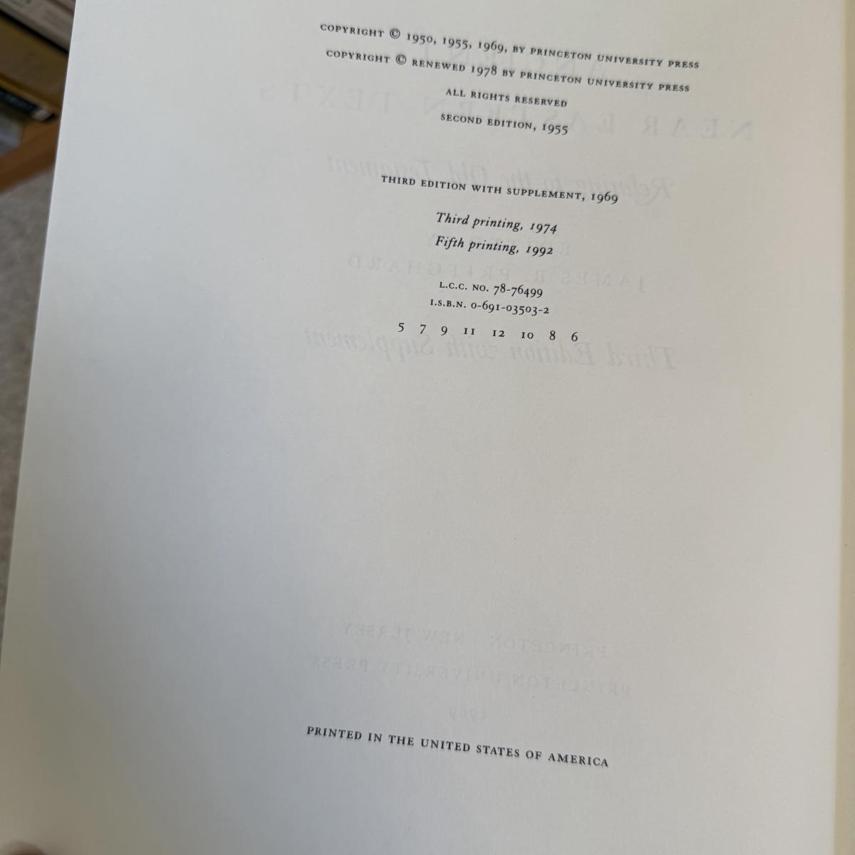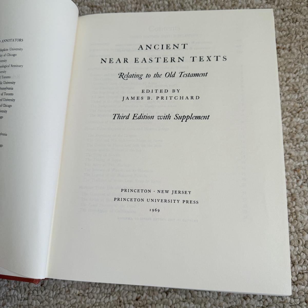 Hardcover copy of “Ancient Near Eastern Texts Relating to the Old Testament” edited by Pritchard comes with three other books related to the Old Testament.