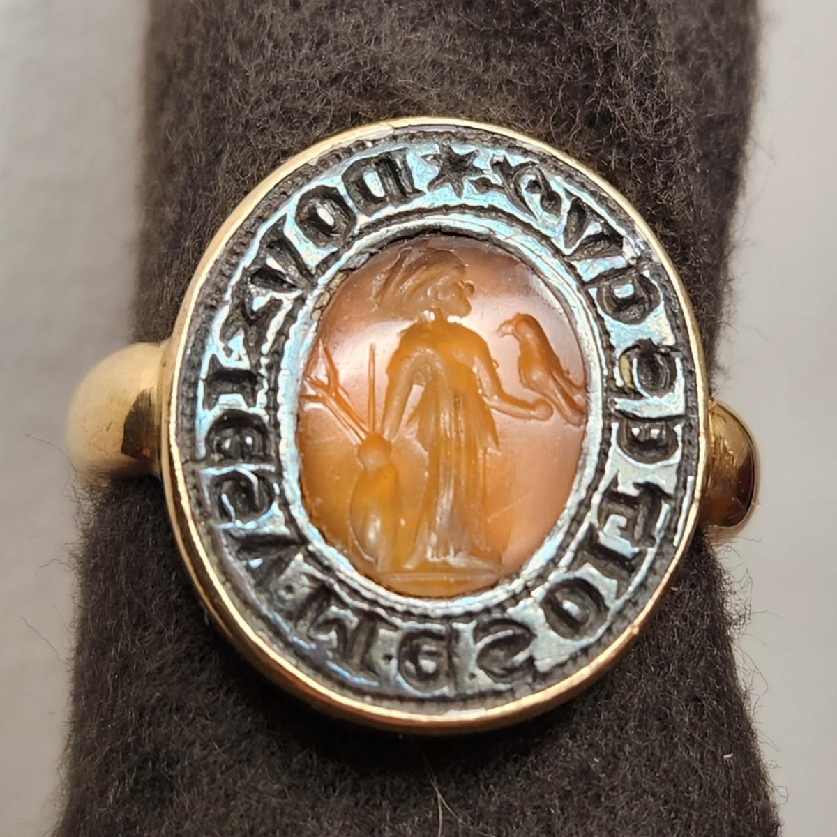 Ancient Roman Carnelian Intaglio set in Gold Ring