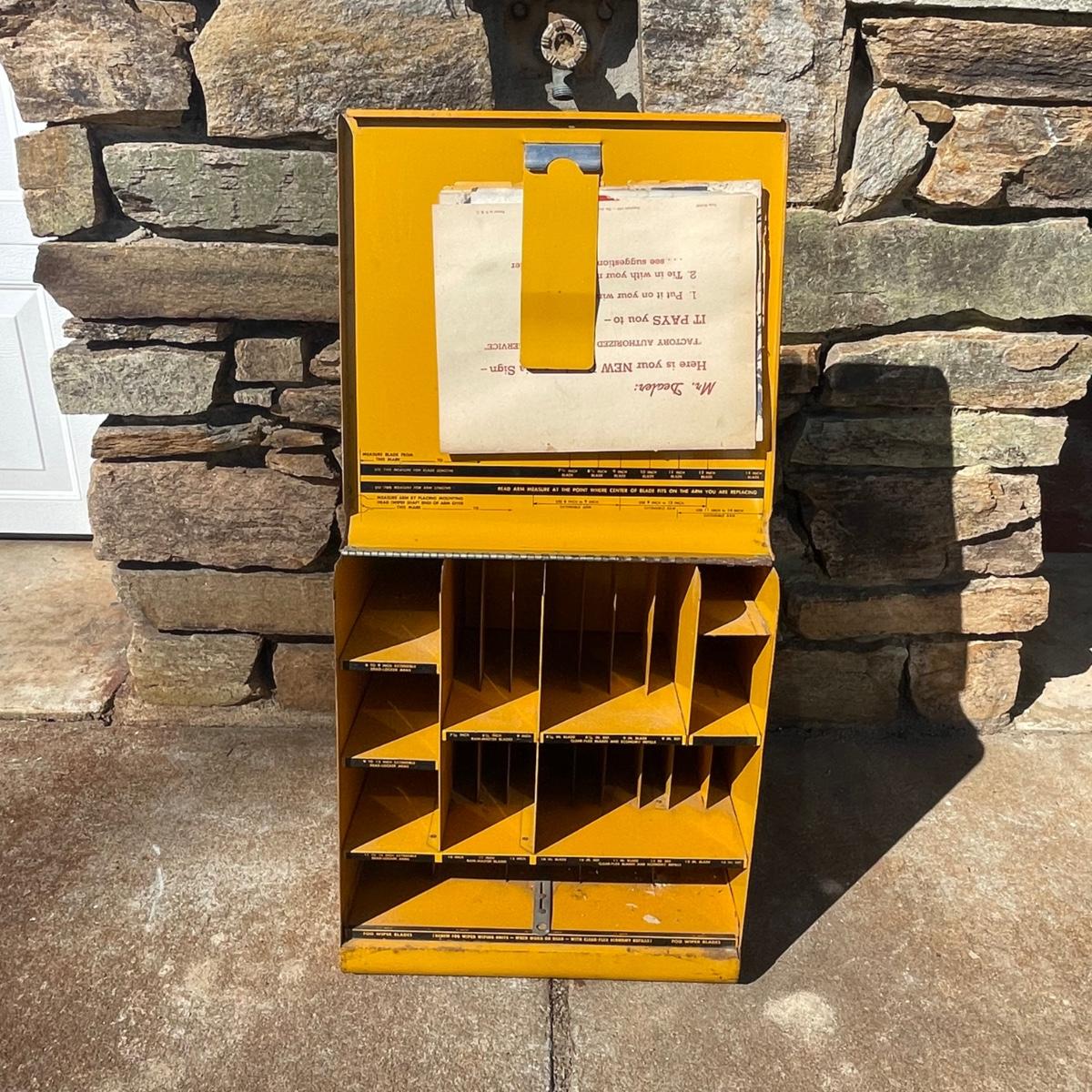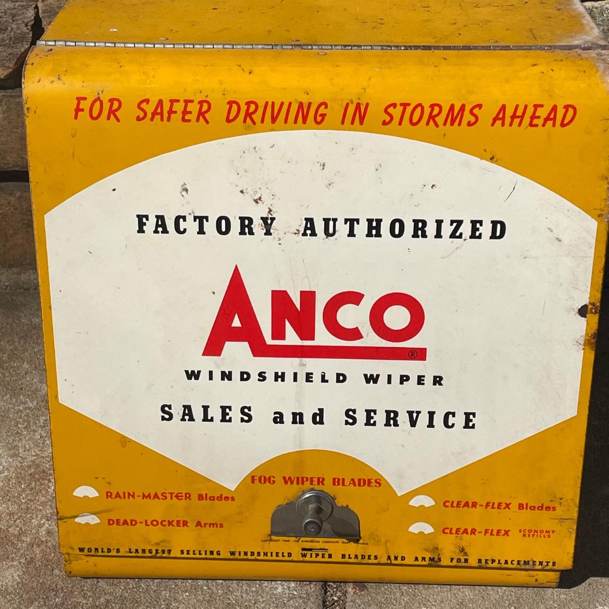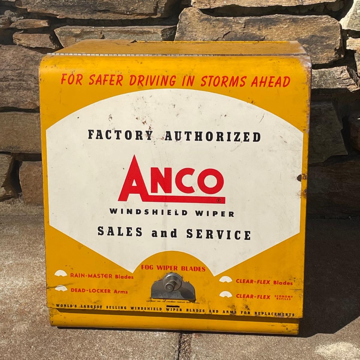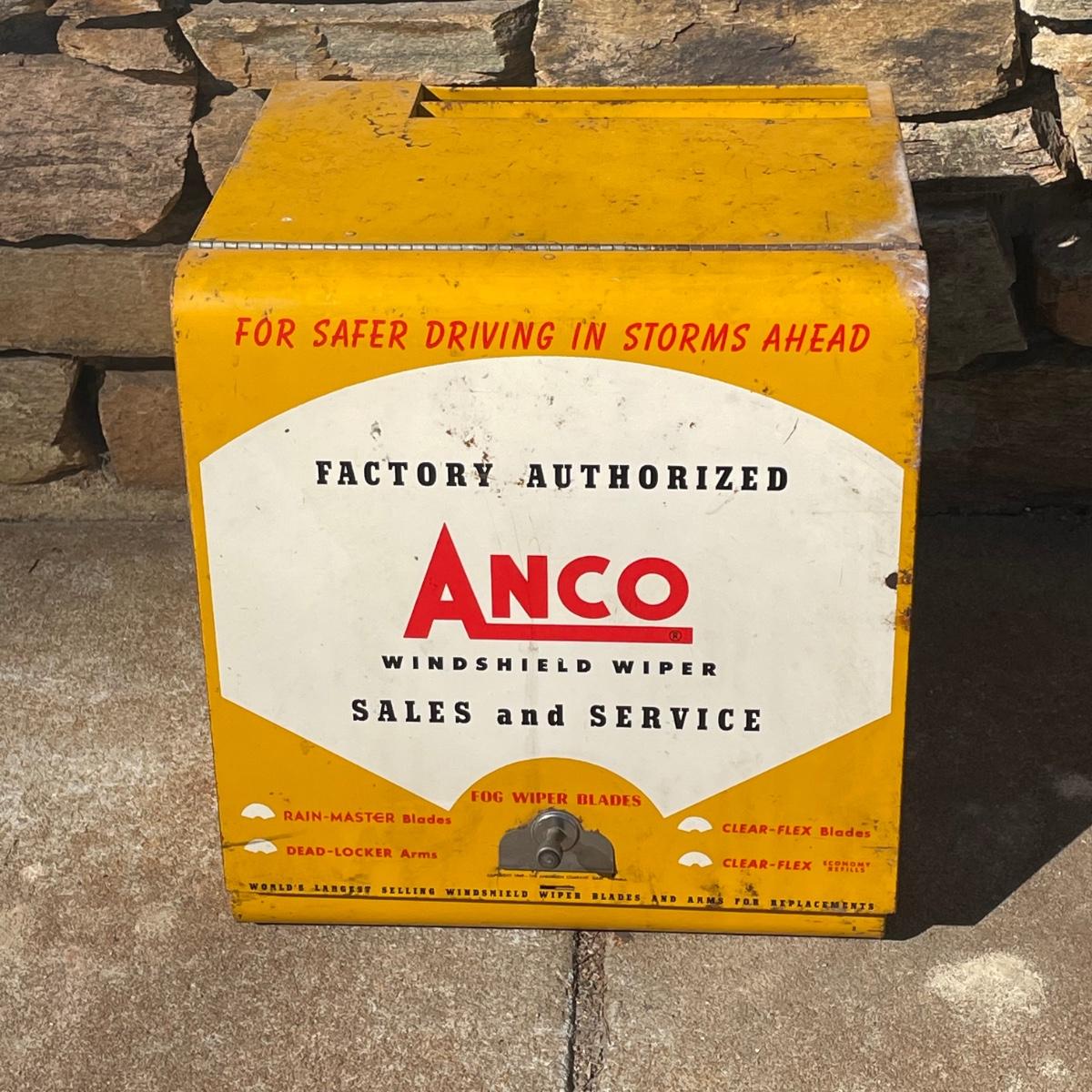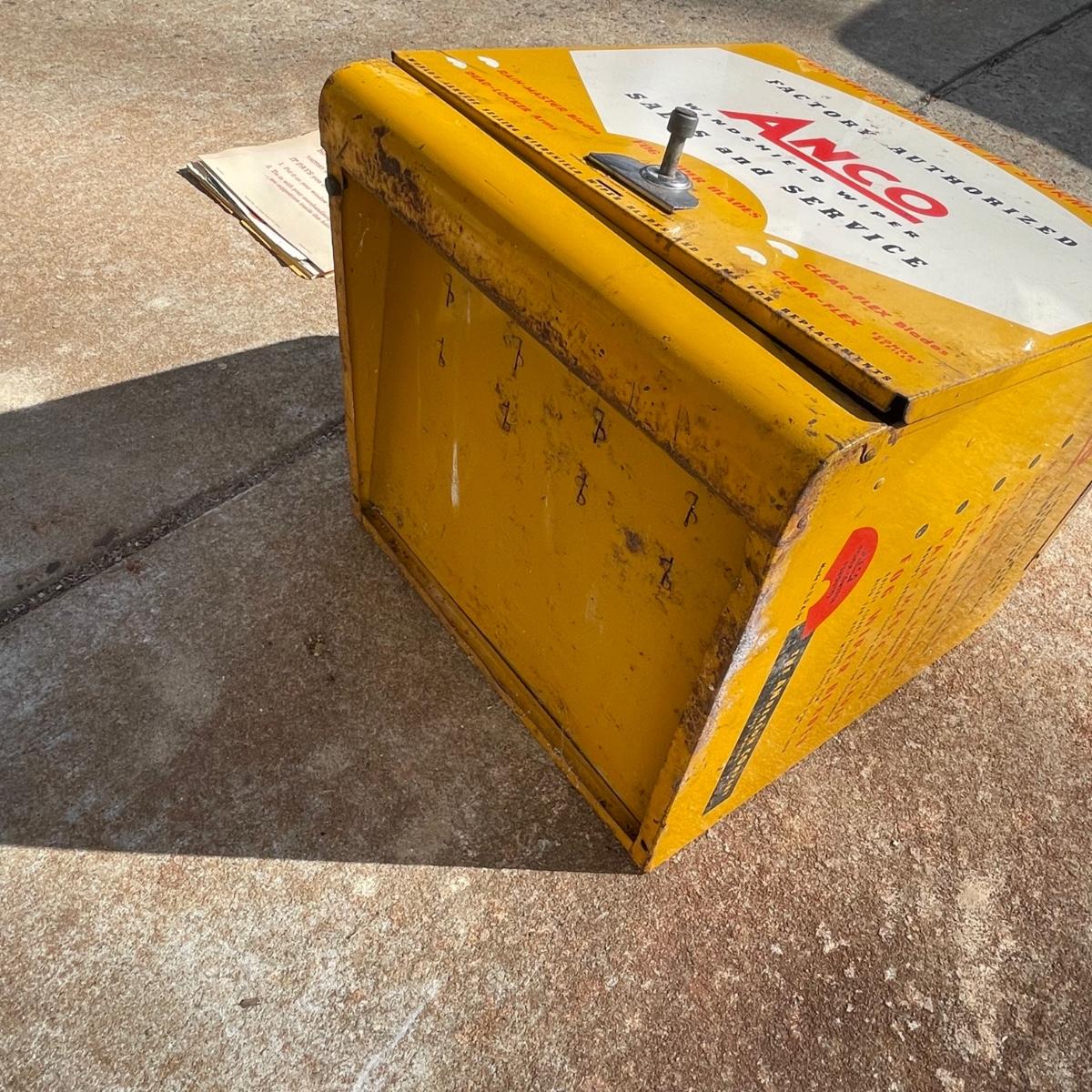This vintage Anco metal box was an authorized dealers windshield wiper holder box and even has the original paperwork.