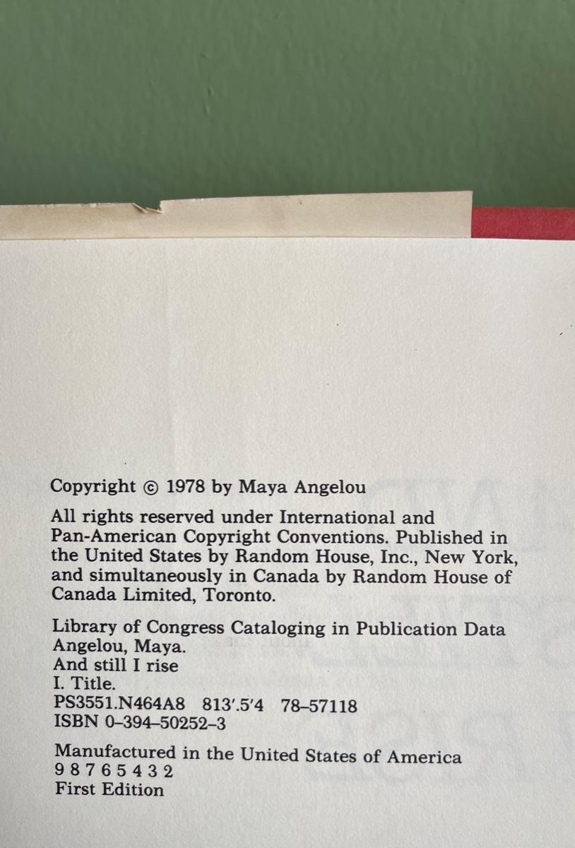 LOT 4 - And Still I Rise - Maya Angelou - 1st Edition - Poetry Book