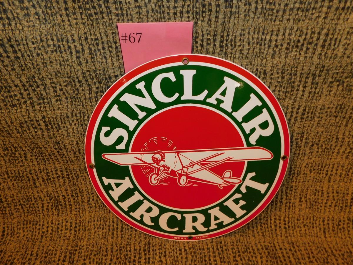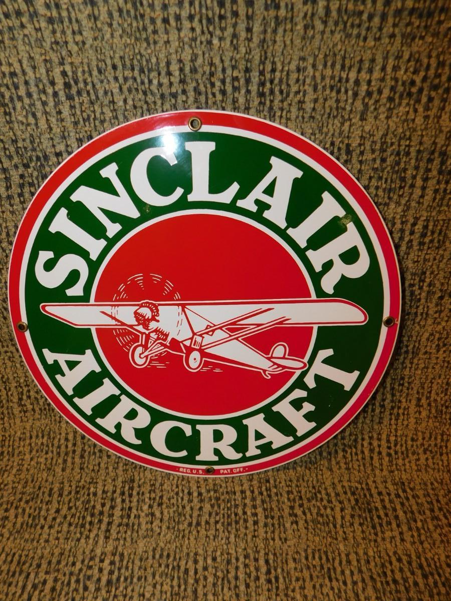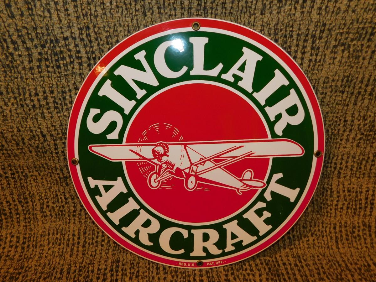 Ande Rooney Porcelain Sign ‘Sinclair Aircraft’ 11.25” Diameter
