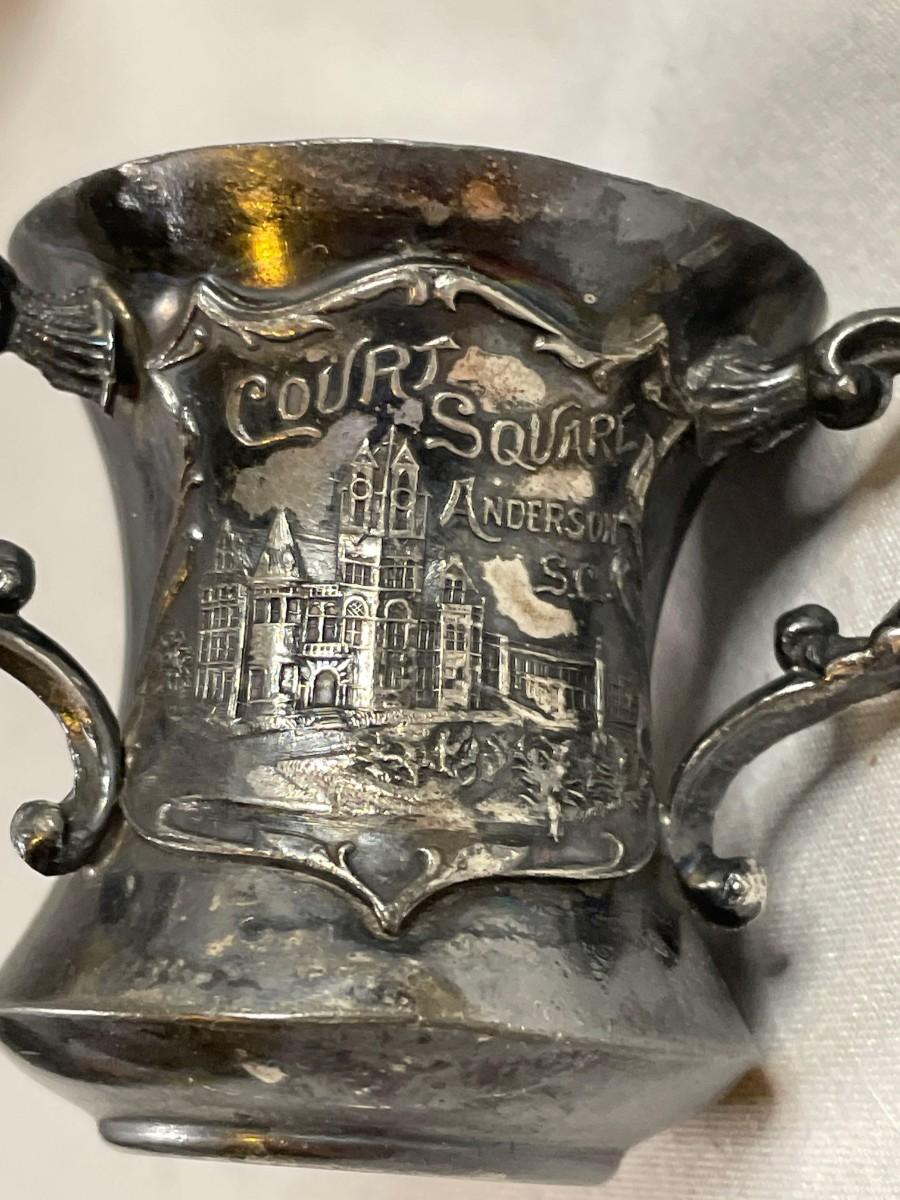 This piece is commemorative of the courthouse in Anderson, South Carolina. It is quadruple plated and free from dings.<br />