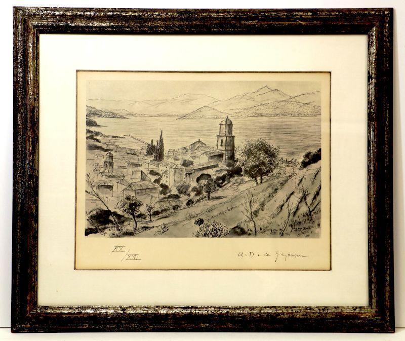 Limited Edition Lithograph numbered XX/XXV (#20/25) hand signed by the artist André Dunoyer de Segonzac, French listed painter (1884-1974), artwork - 19" x 15", frame with glass front - 28.5" x 24.25". In great condition - Rare Collector's Item!