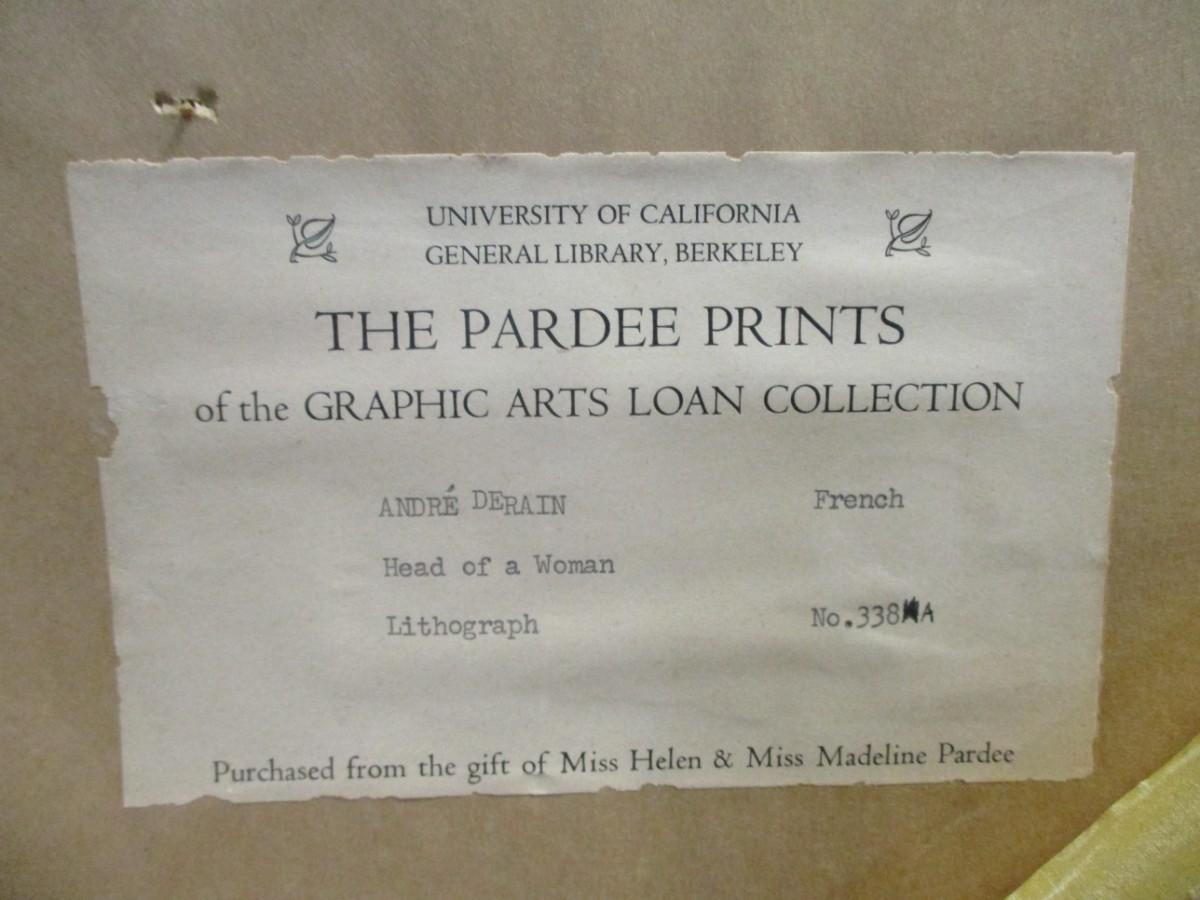Andre Derain Lithograph Numbered - "Head Of A Woman" 24 1/2" x 20 1/2"