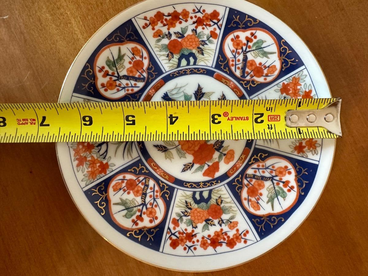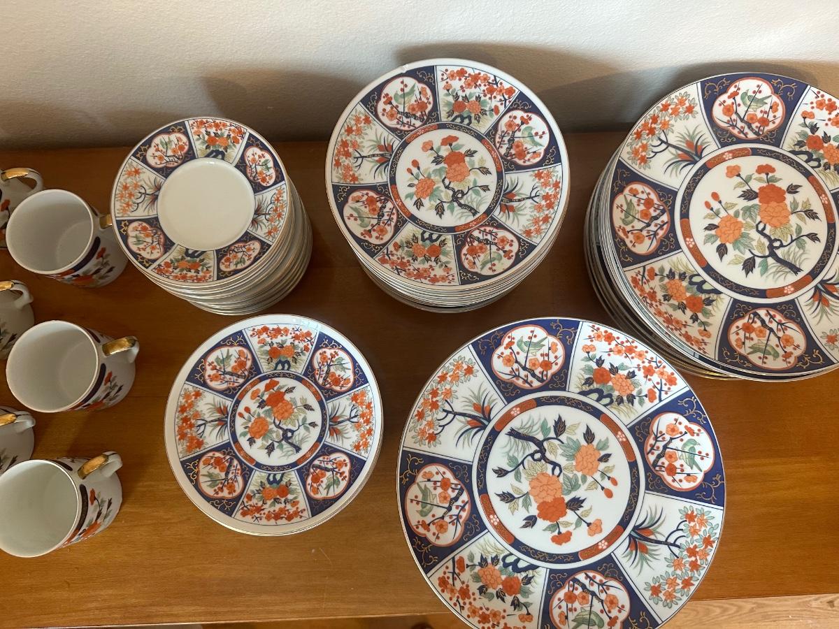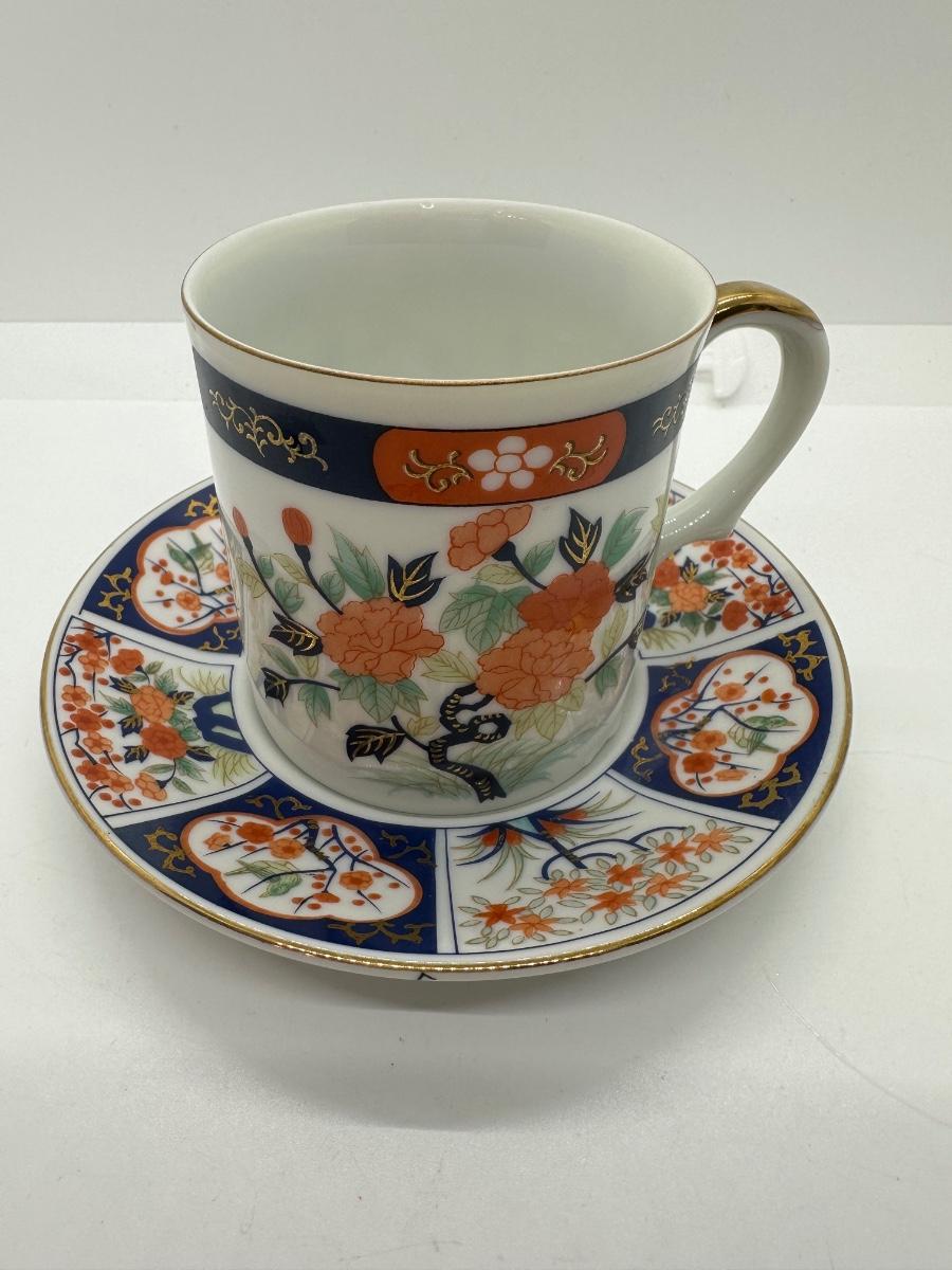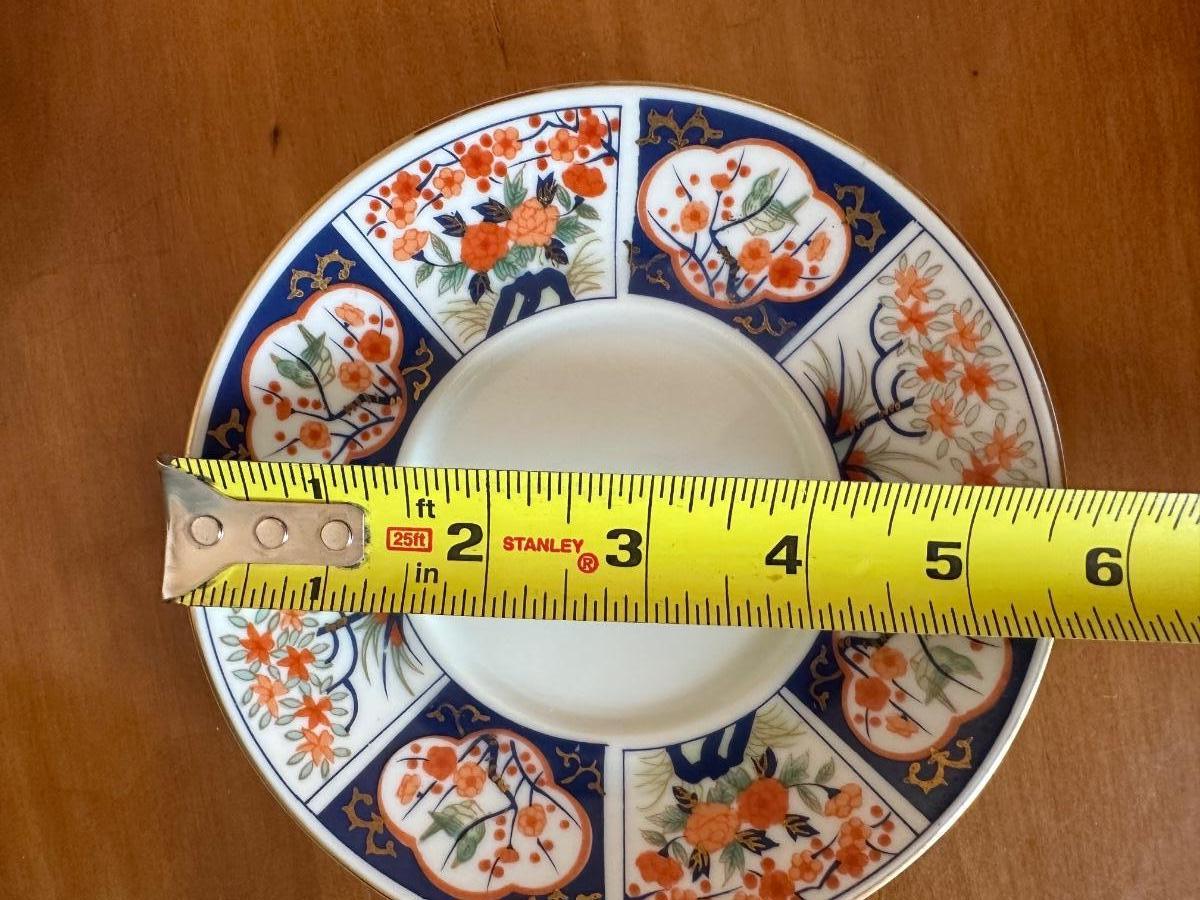One plate has a small chip, see last pictures. One cup had a rough edge, see last pictures.