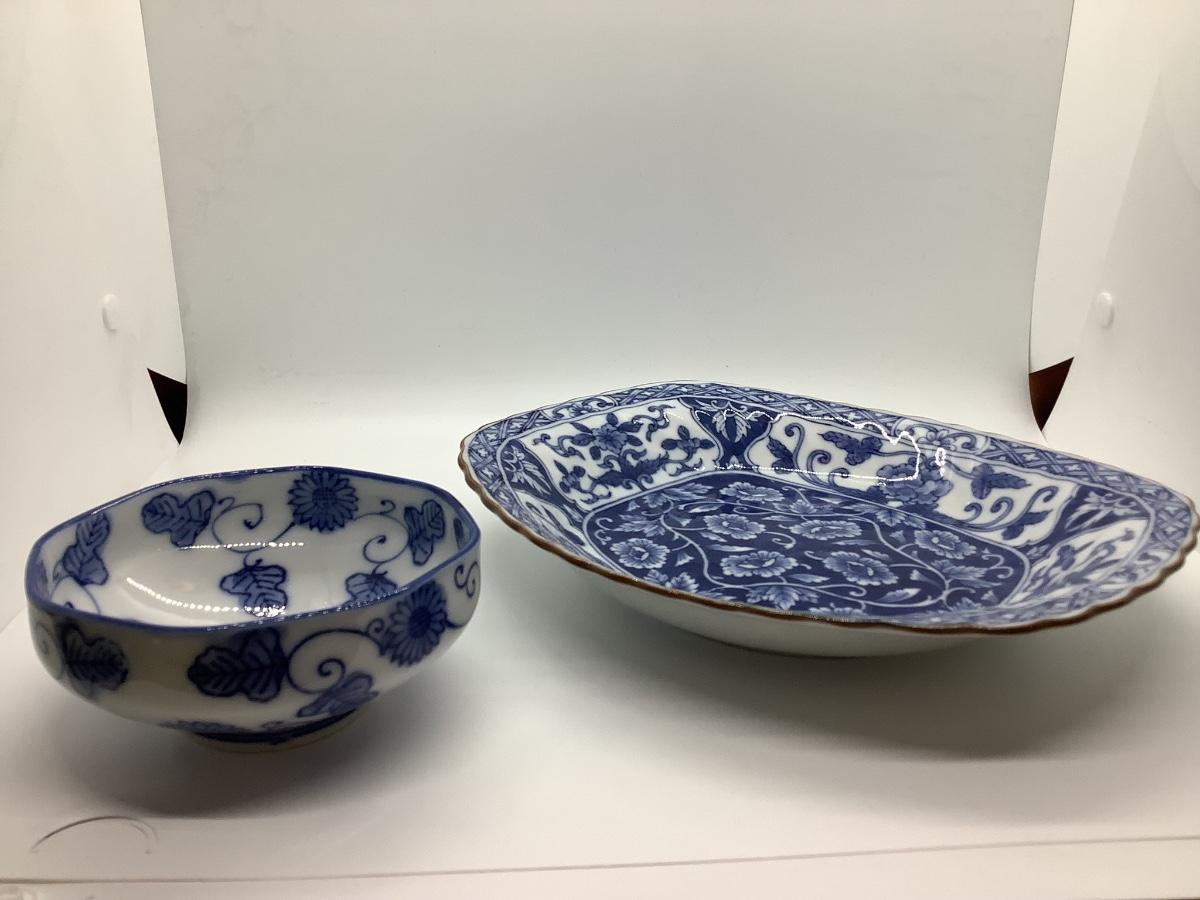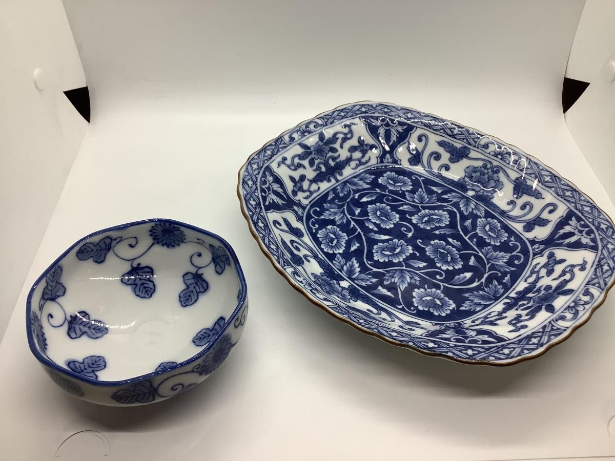 Andrea by Sadek bowl & smaller unmarked blue & white bowl
