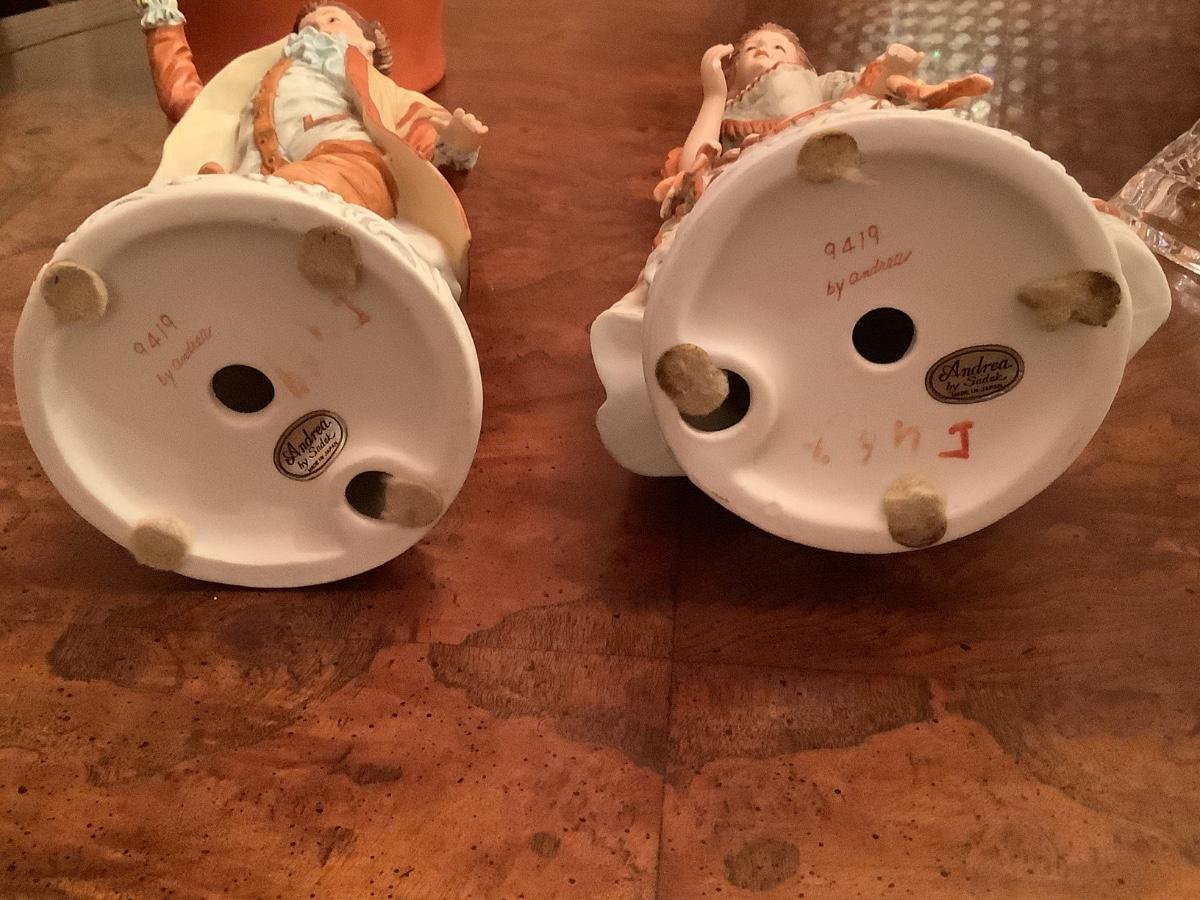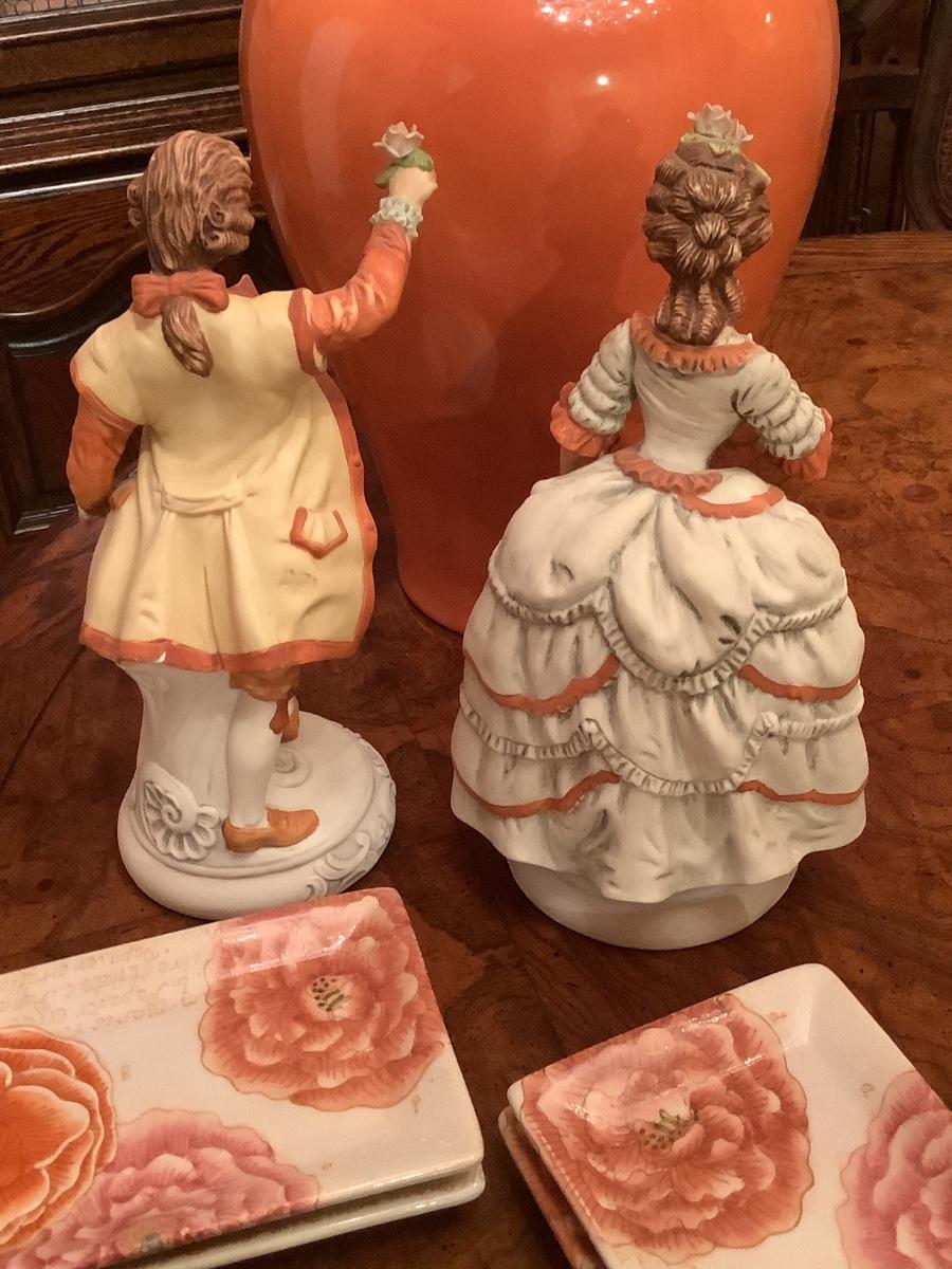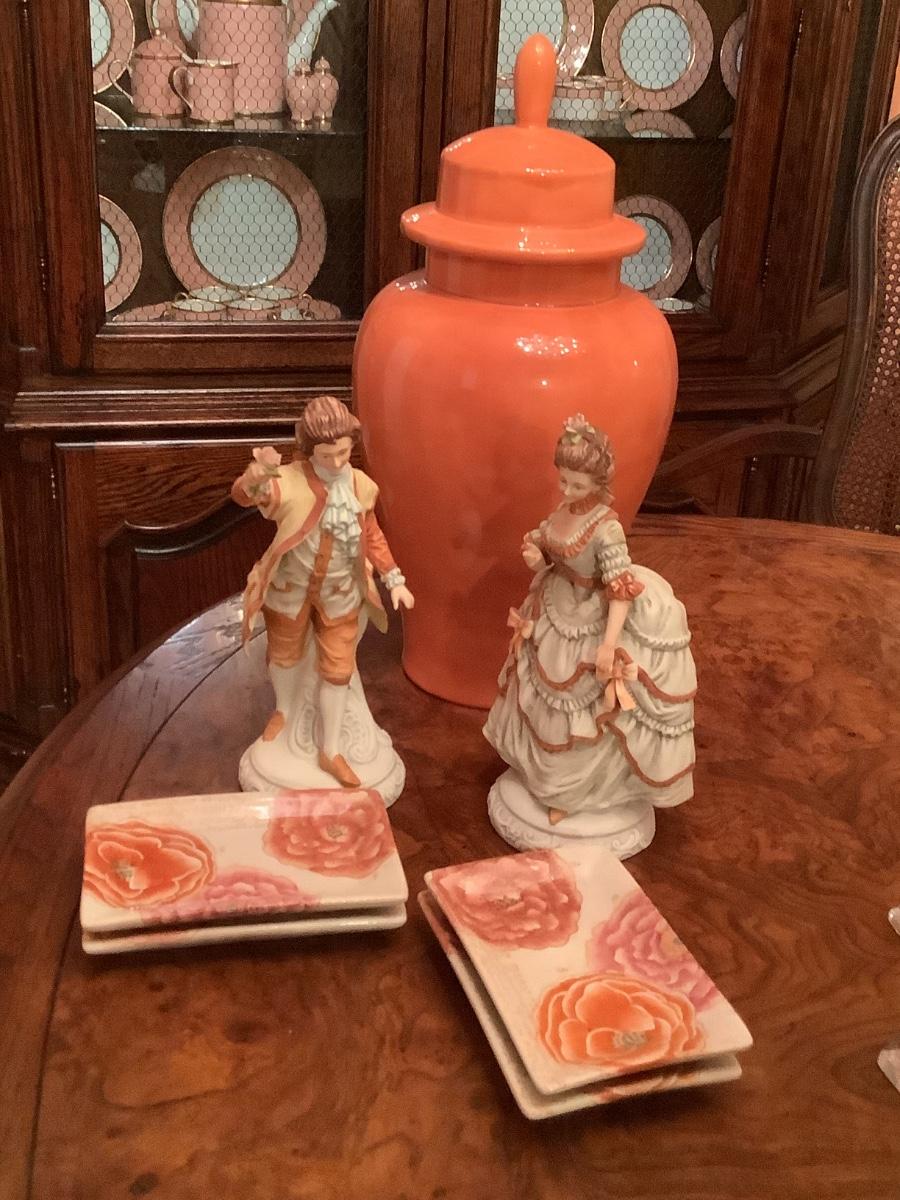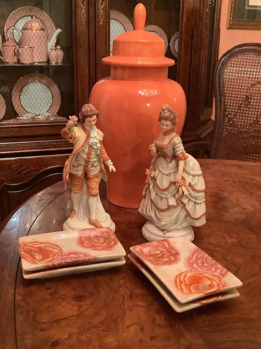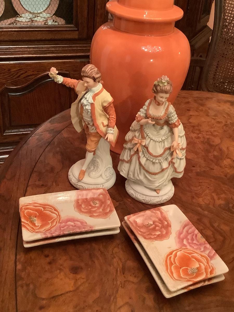 Andrea by Sadek figurines 2 lovely figurines in their fine attire, vase, and rectangular plates