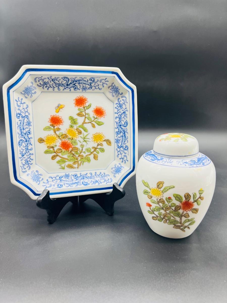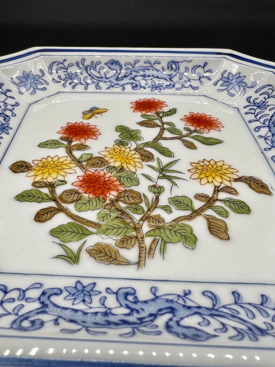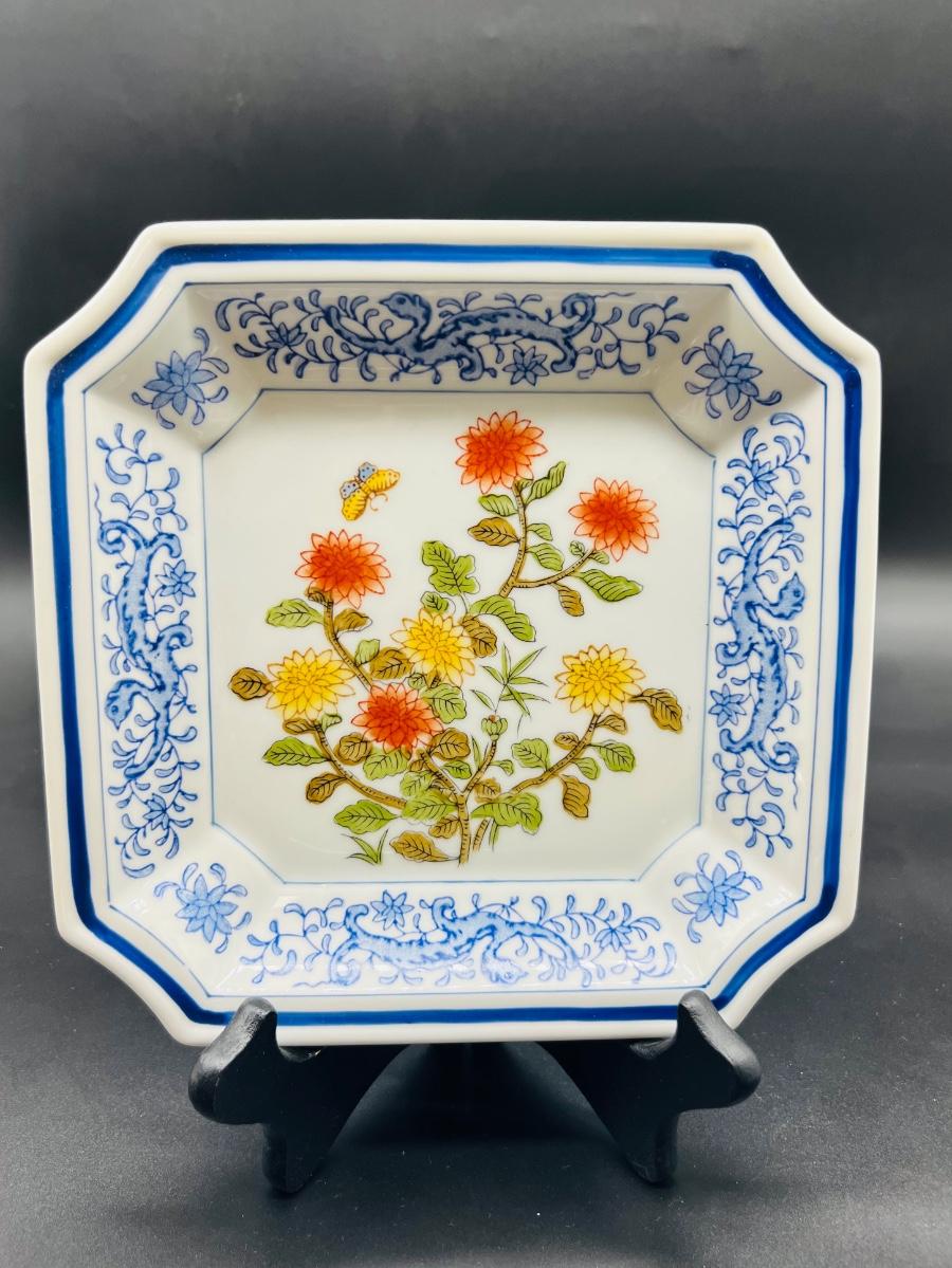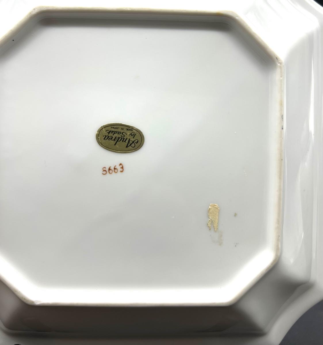 Andrea by Sadek Octagonal Plate #8663 measures 8 1/2 X 8 1/2. Vase # 8730 measures 6 1/2 tall. Stand not included.