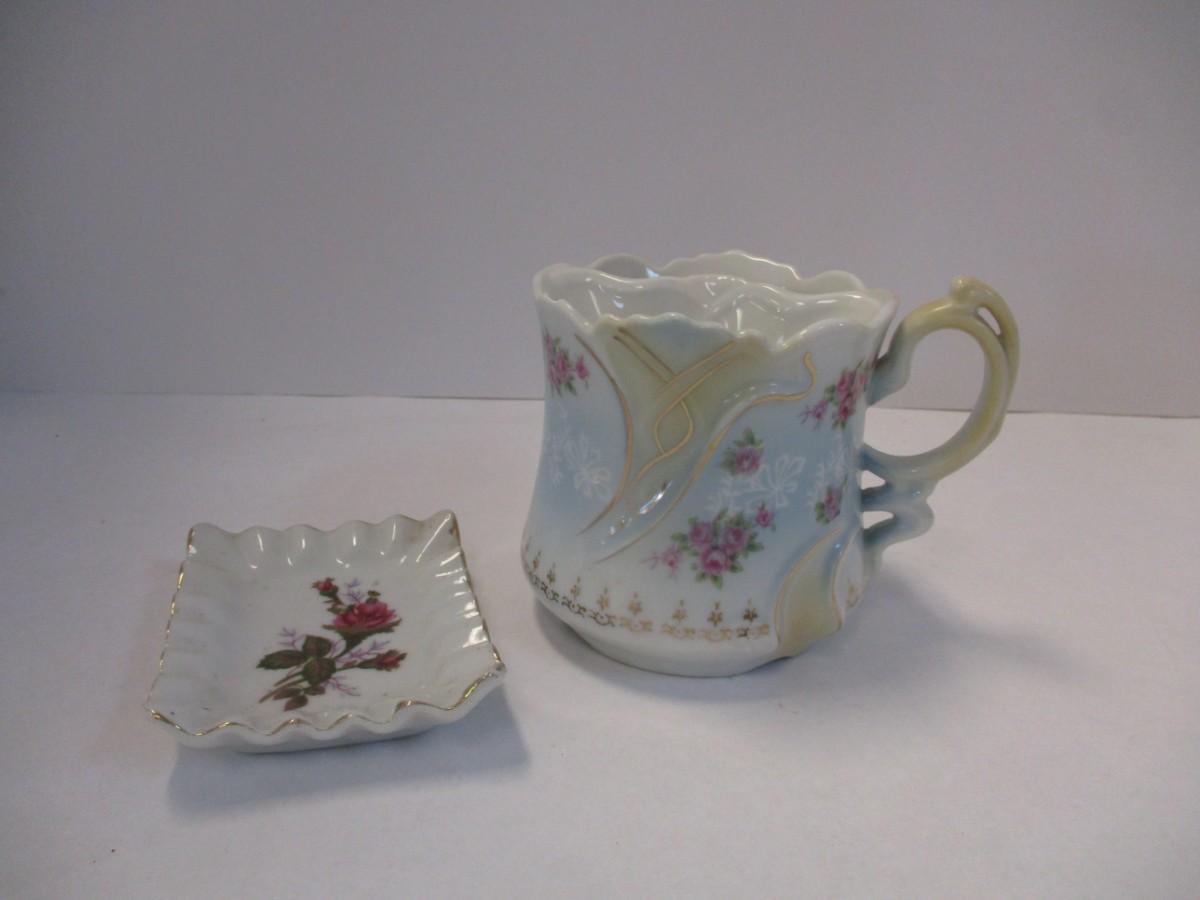 Andrea By Sadek Porcelain Mustache Teacup Mug & Trinket DIsh