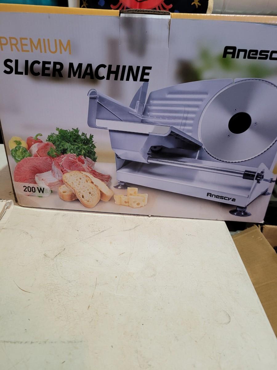 Anescra 200W Electric Deli Food Slicer with Two Removable 7.5'' Stainless Steel Blades and Food Carriage, Child Lock Protection, Used once.