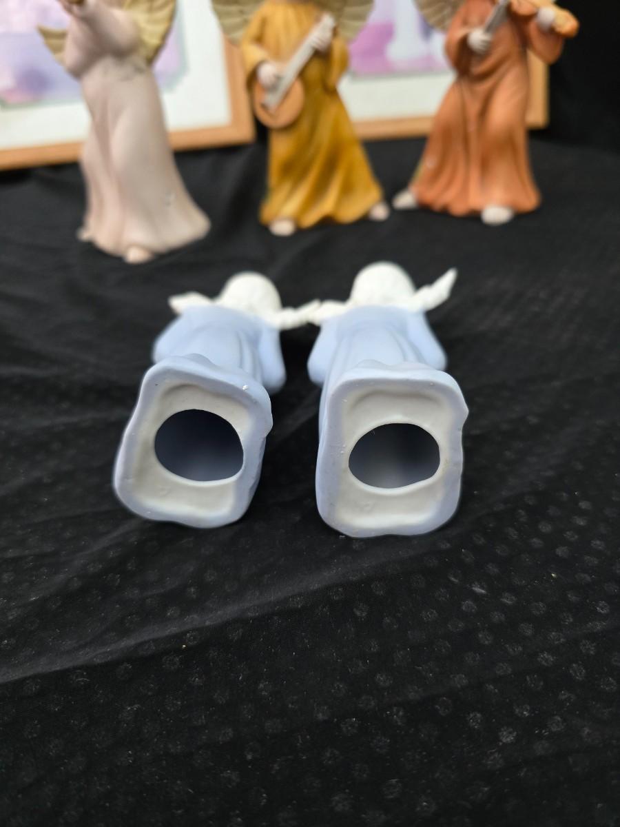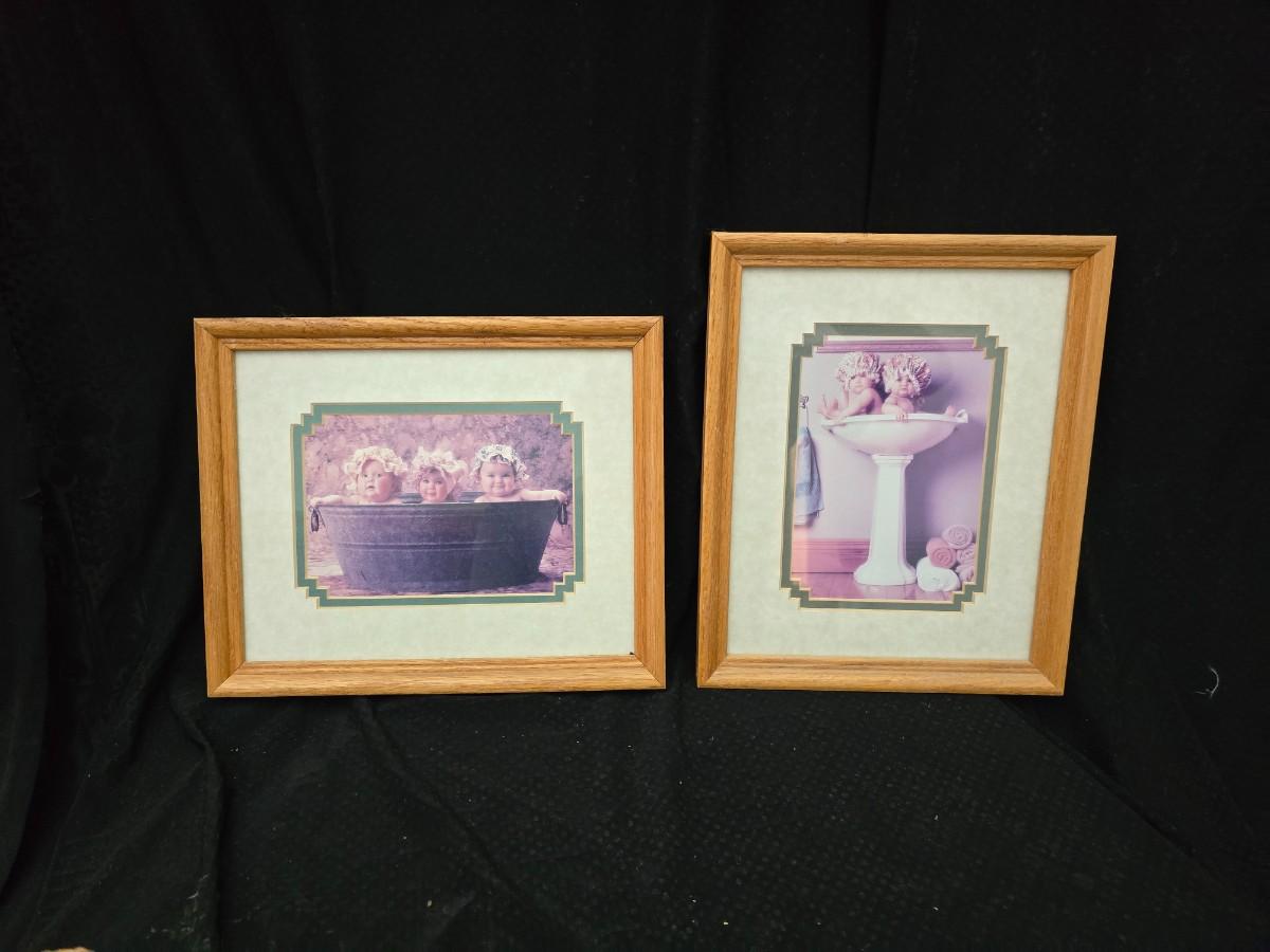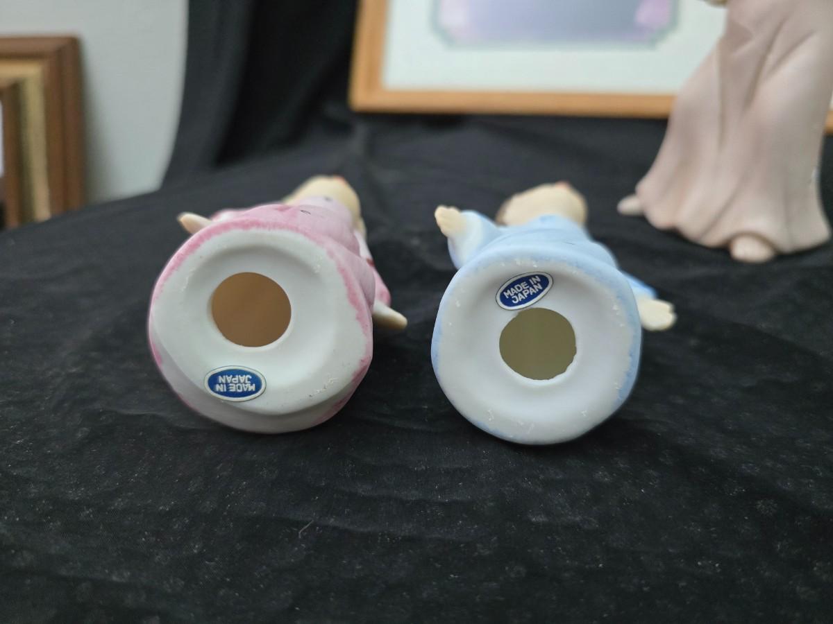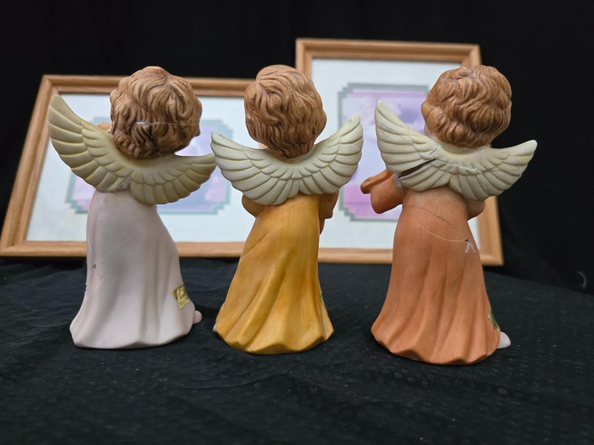 Angel figures with two framed Anne Geddes framed wall art pictures
