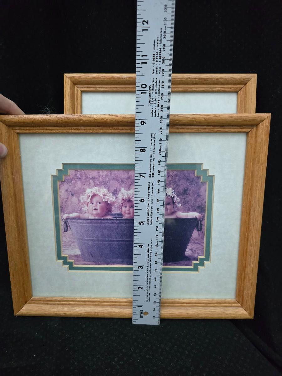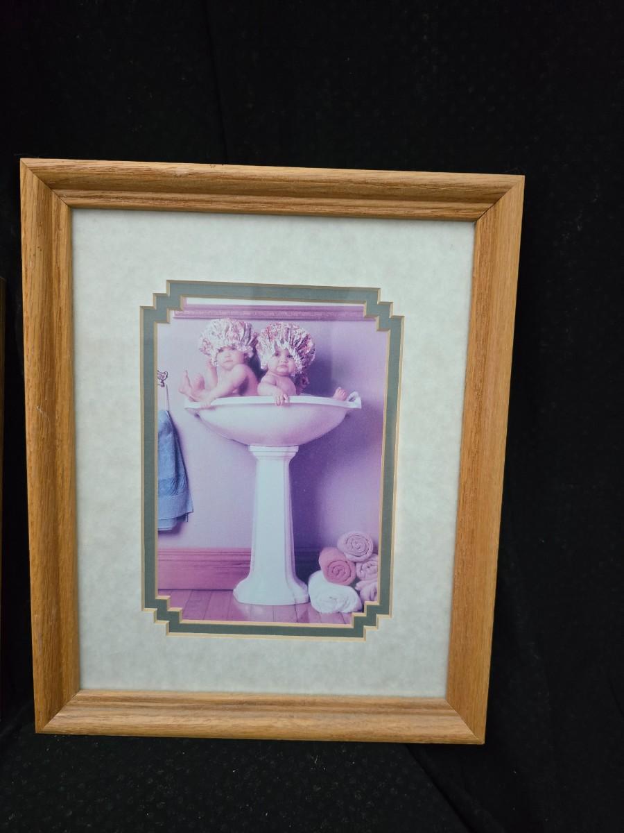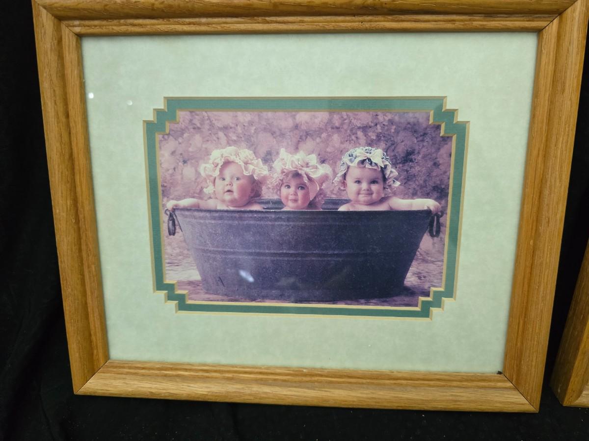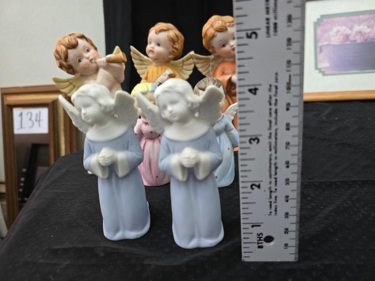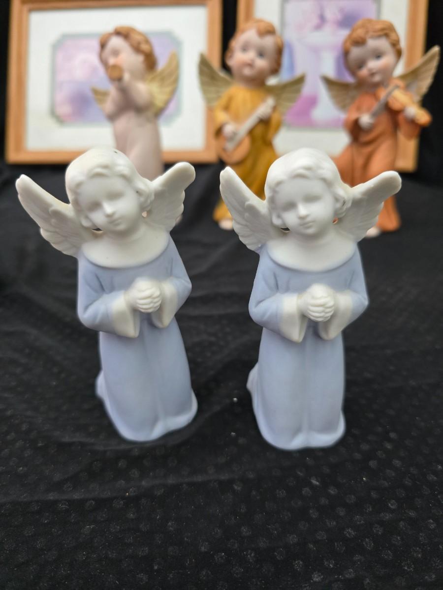 Angel figures with two framed Anne Geddes framed wall art pictures