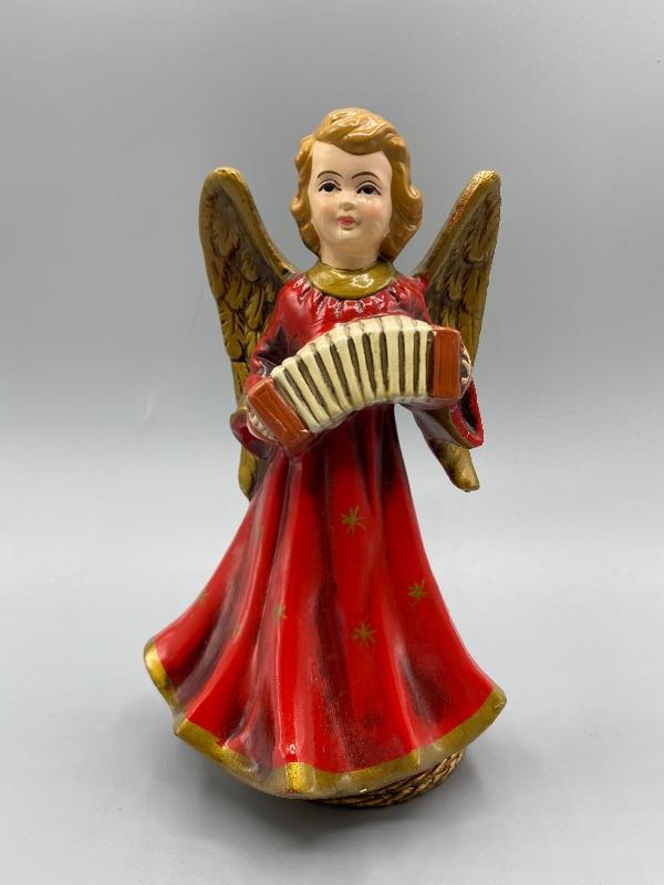Unbranded angel music box. Works, plays Silent Night. Stands about 8" tall.