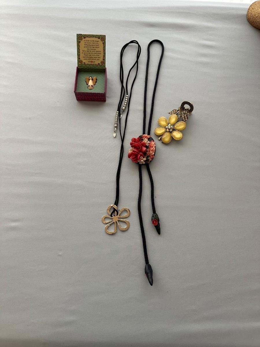 ANGEL PIN, LADIES BOLO TIE, NECKLACE AND FANCY HAIR CLIP