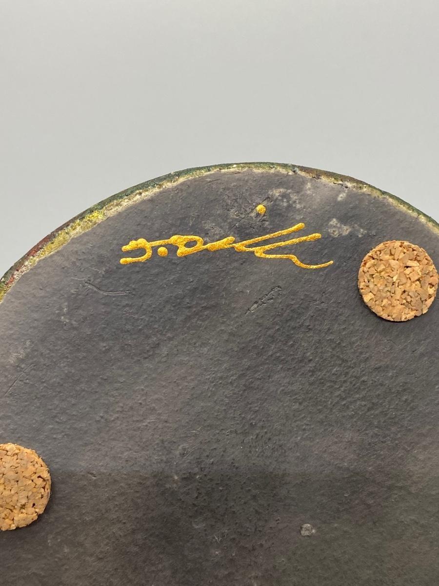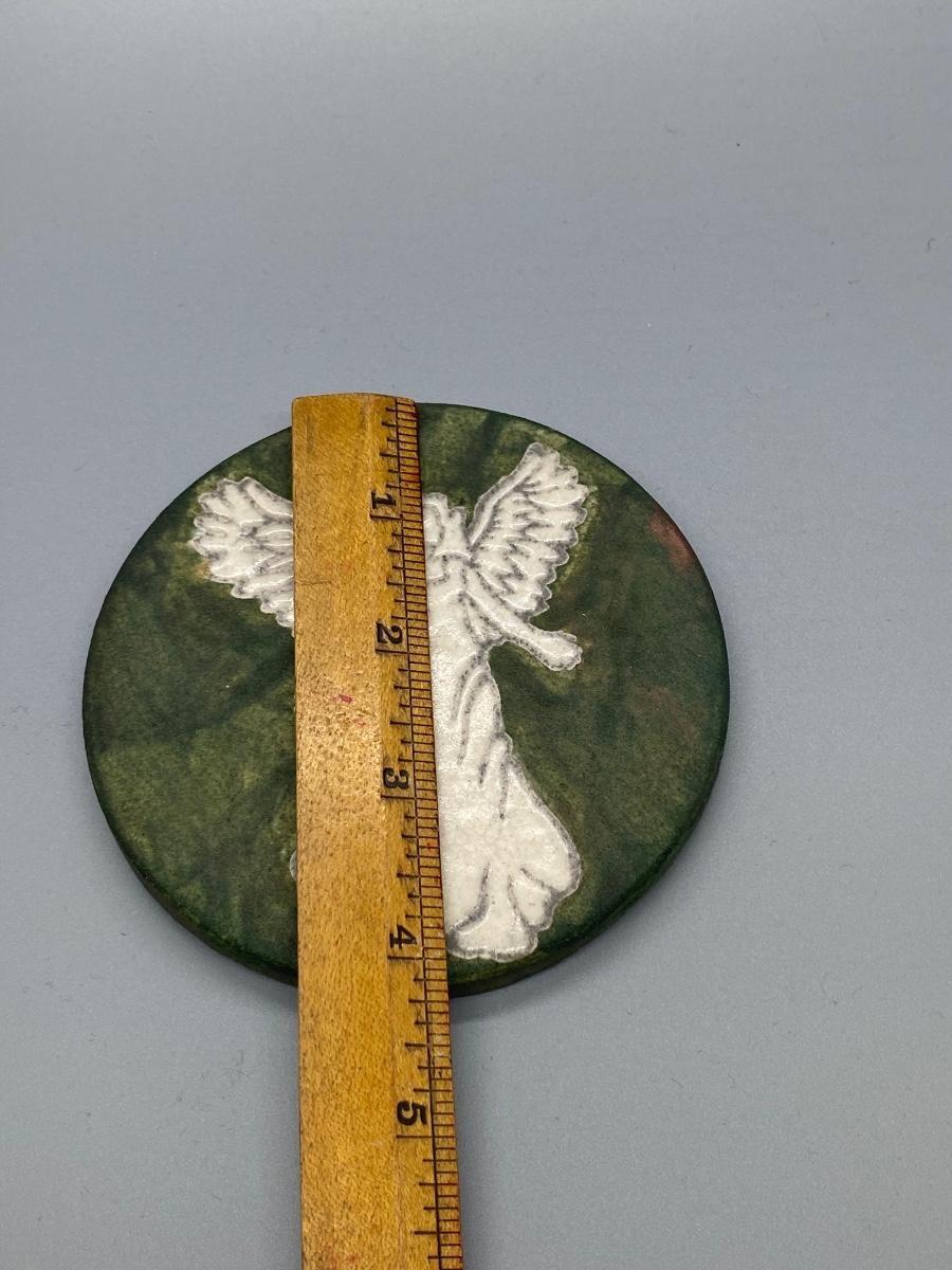 Angel design coaster paperweight. Artist signed on the back. Has small cork feet to keep it from sliding or scratching on surfaces. About 4" size diameter.