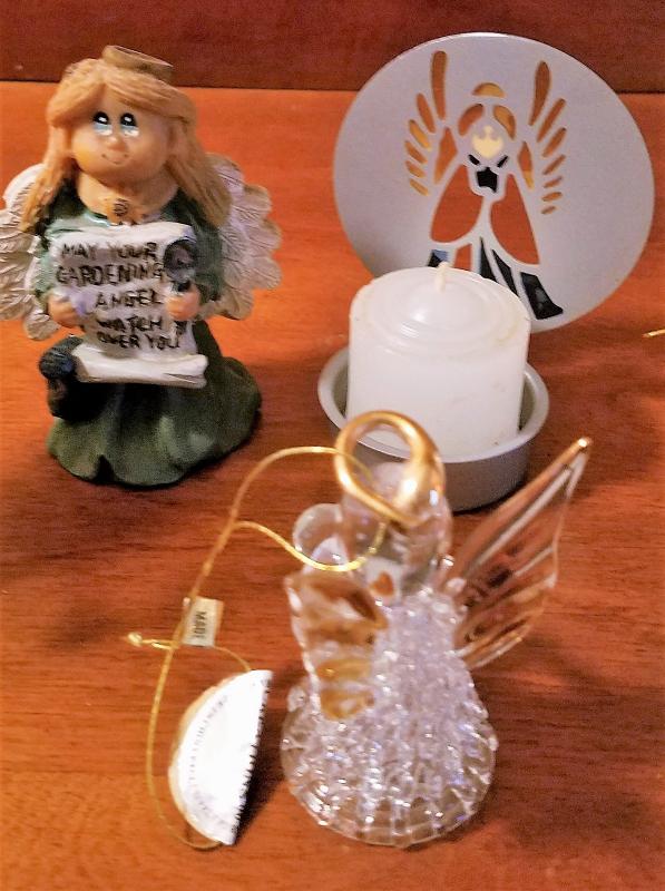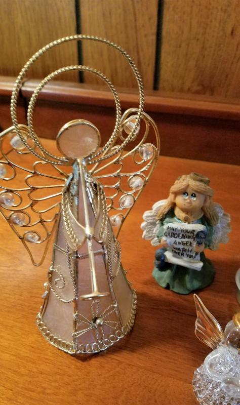 Angel Tree Toppers 2, 1 made of glass and 1 is crystal and other angel decor.