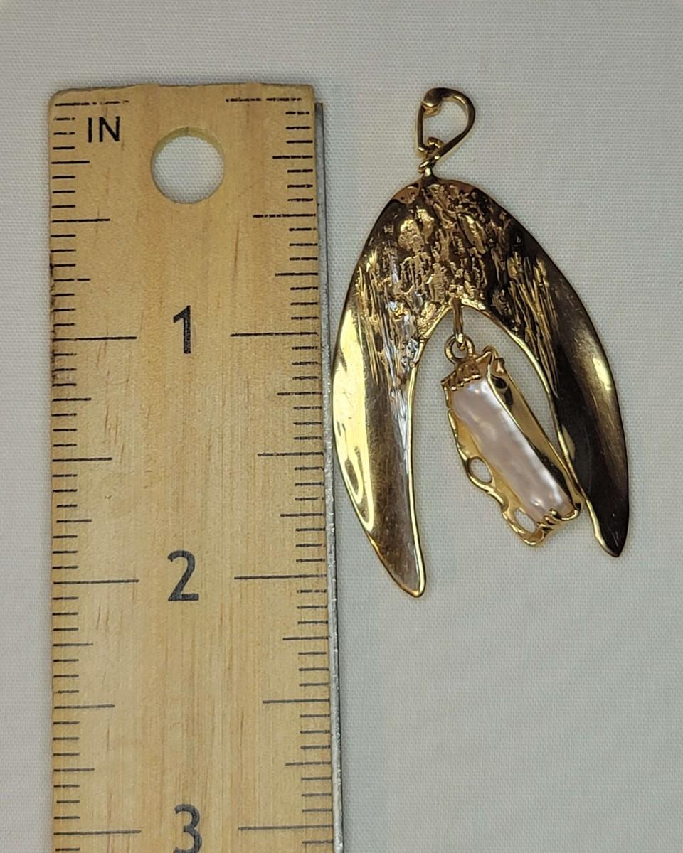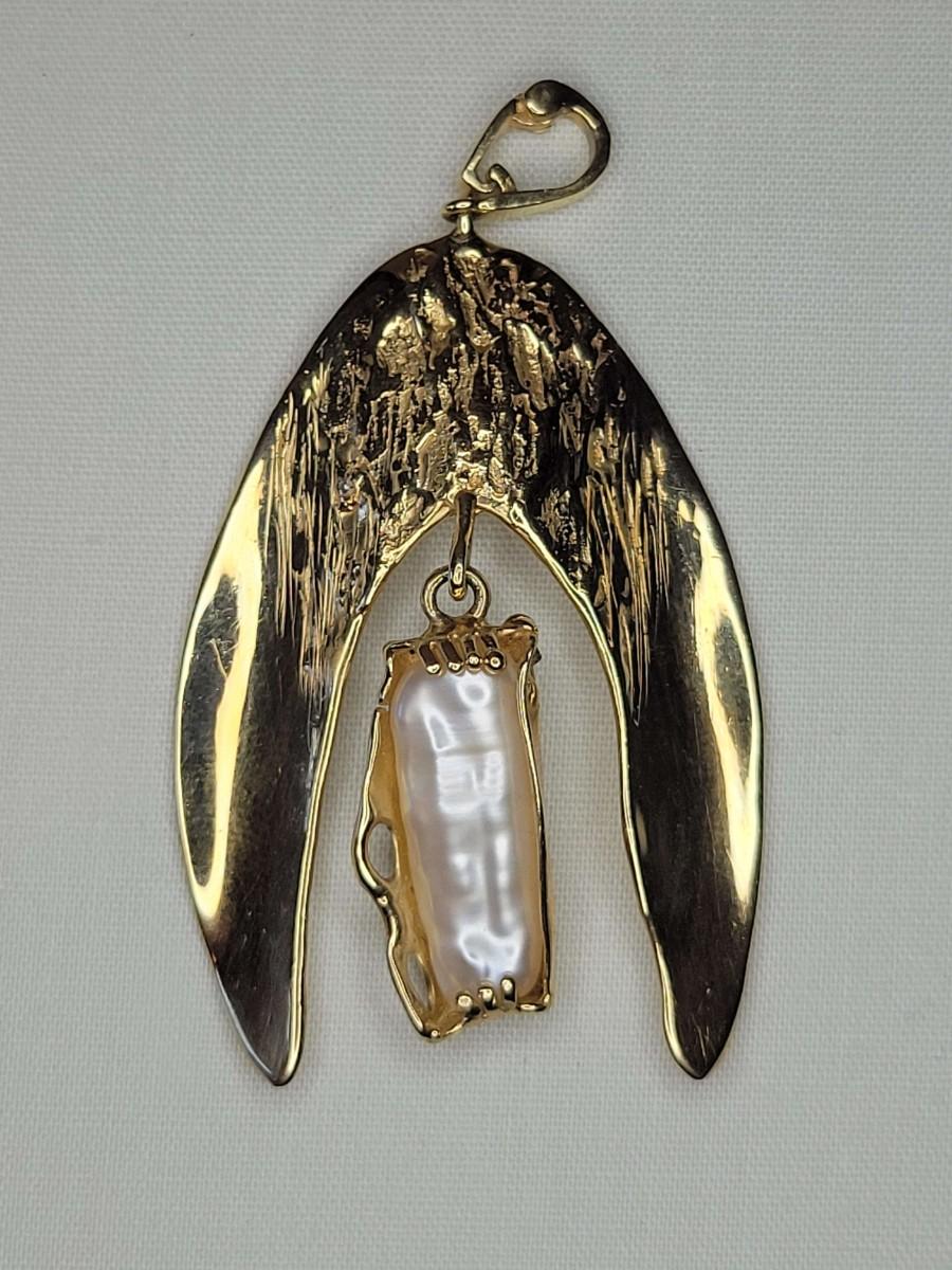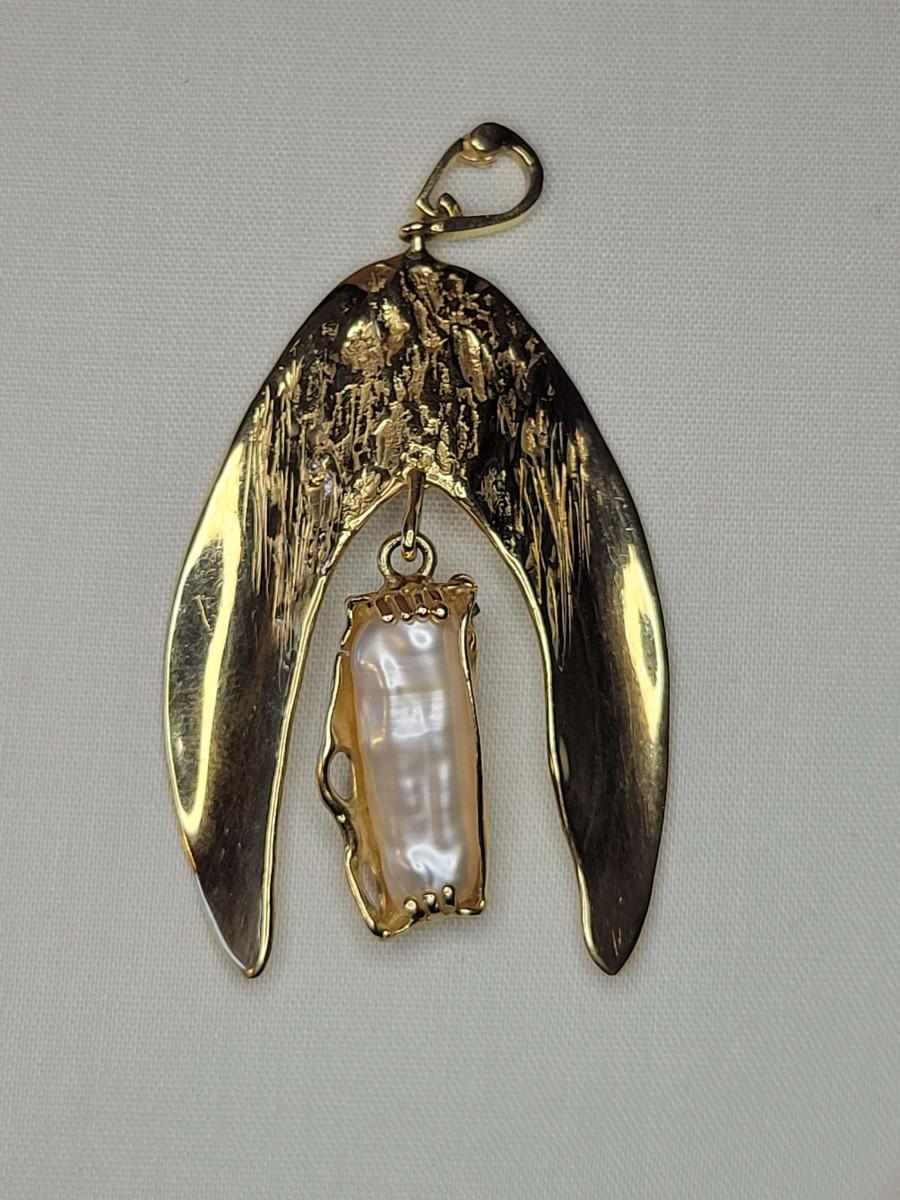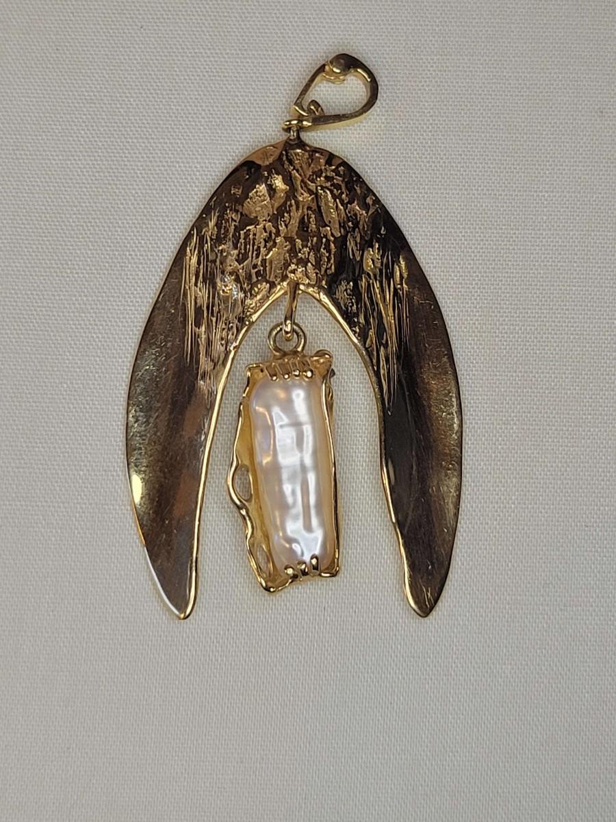 14k Angel wings with baroque pearl pendant