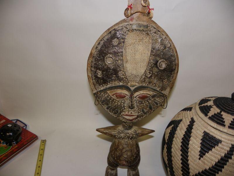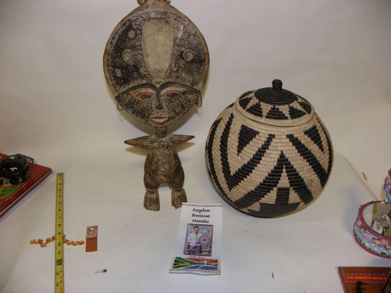 These are original pieces from south Africa and made in Africa. Artifact 15 inches high and basket approx. 12 x 10 in.