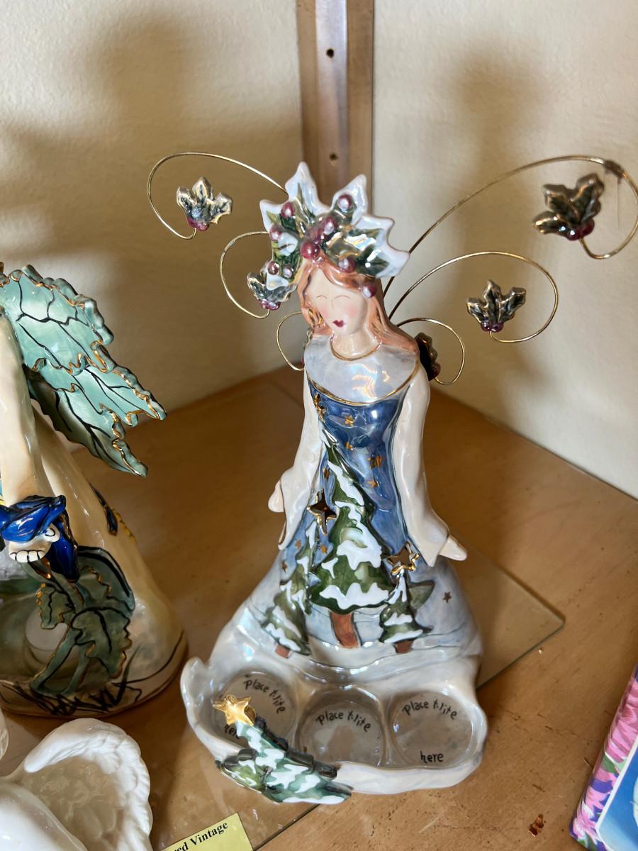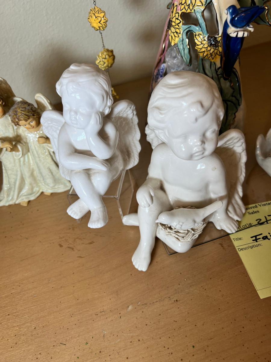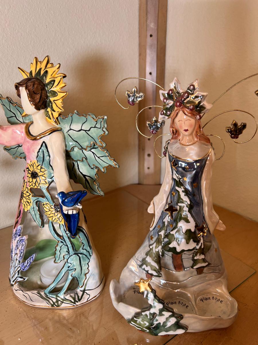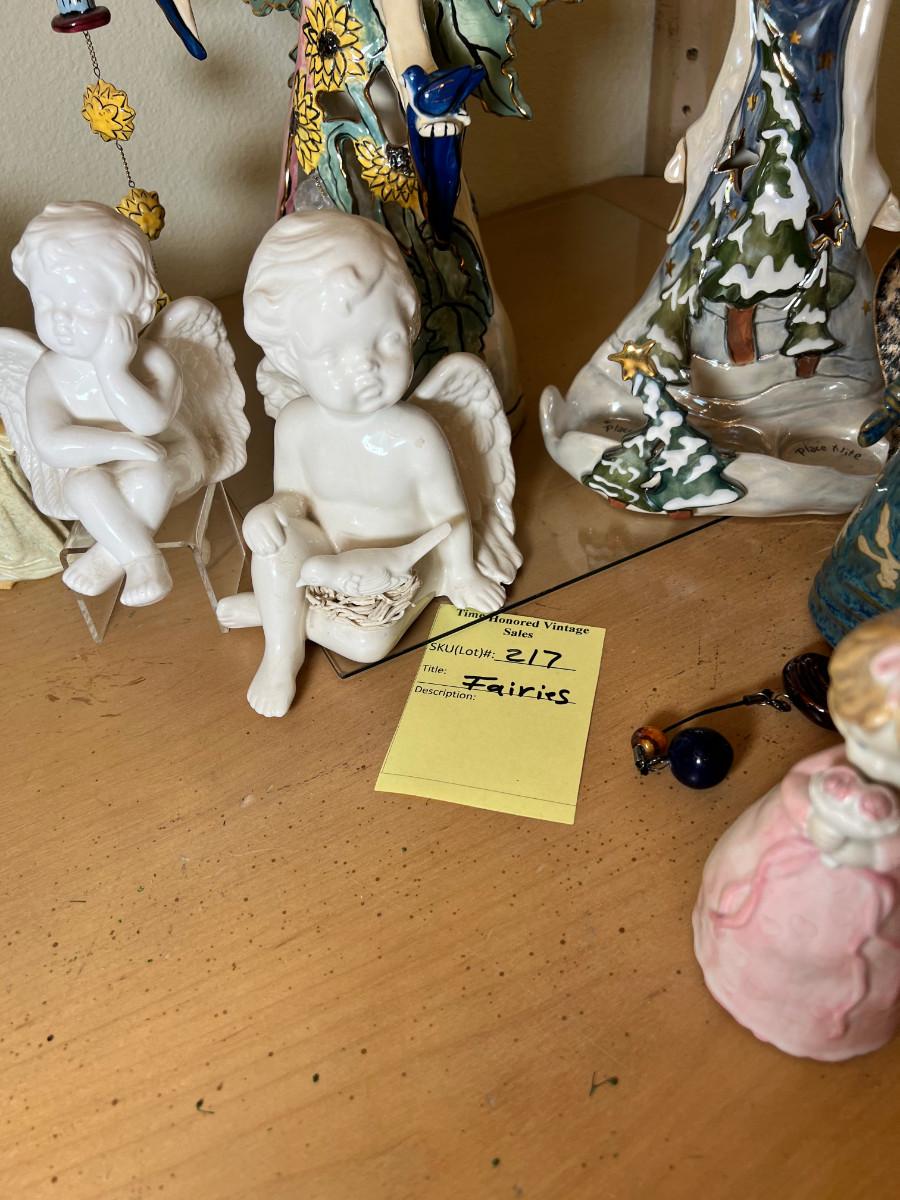 Angels and fairies, 2 ceramic Bells, 2 larger candle holders 1 new in box