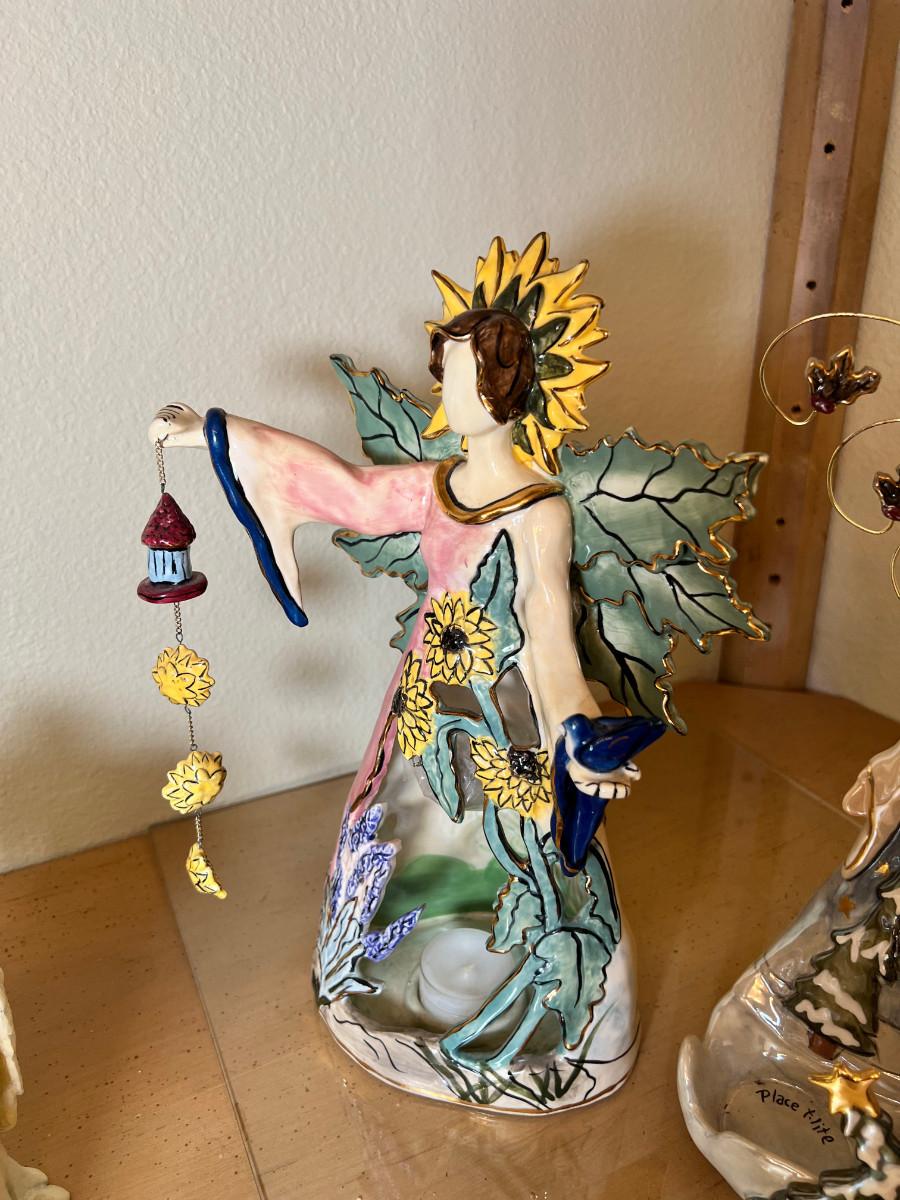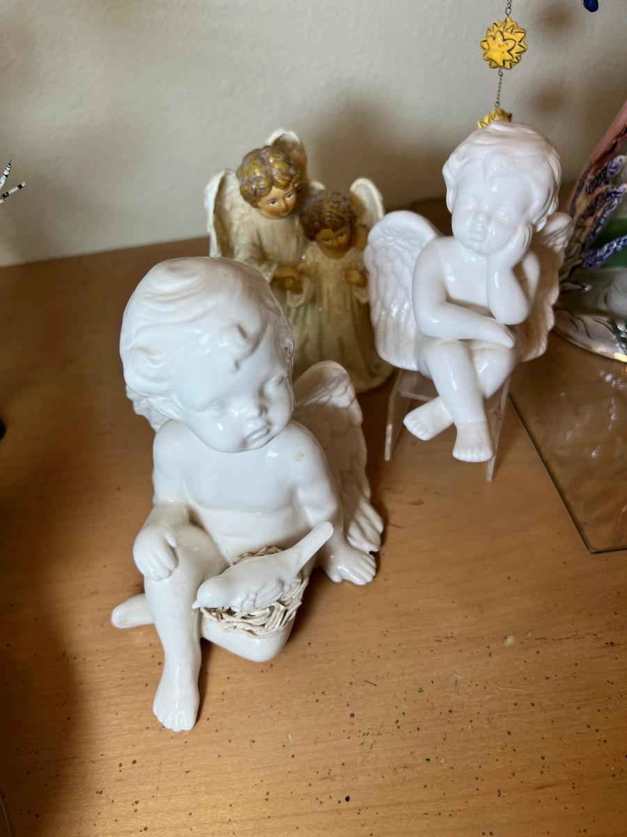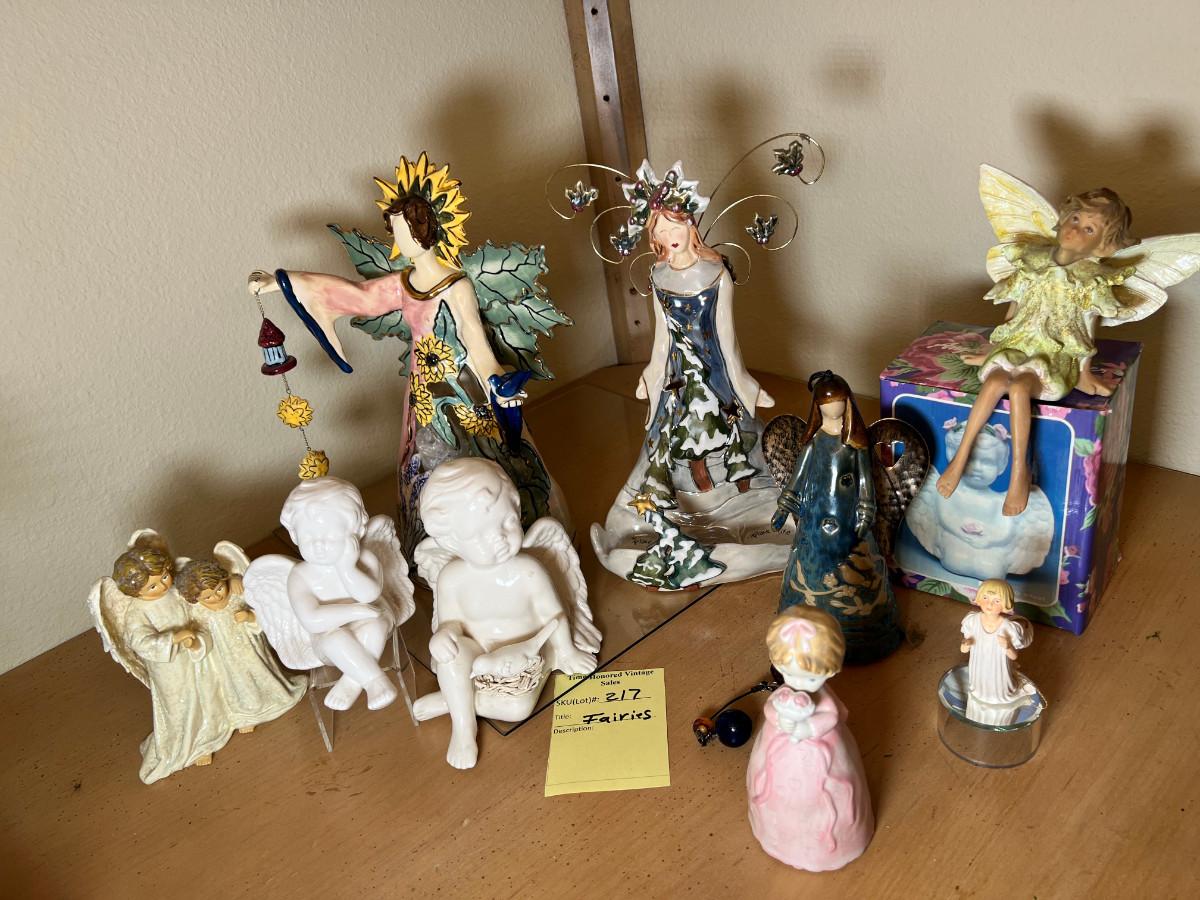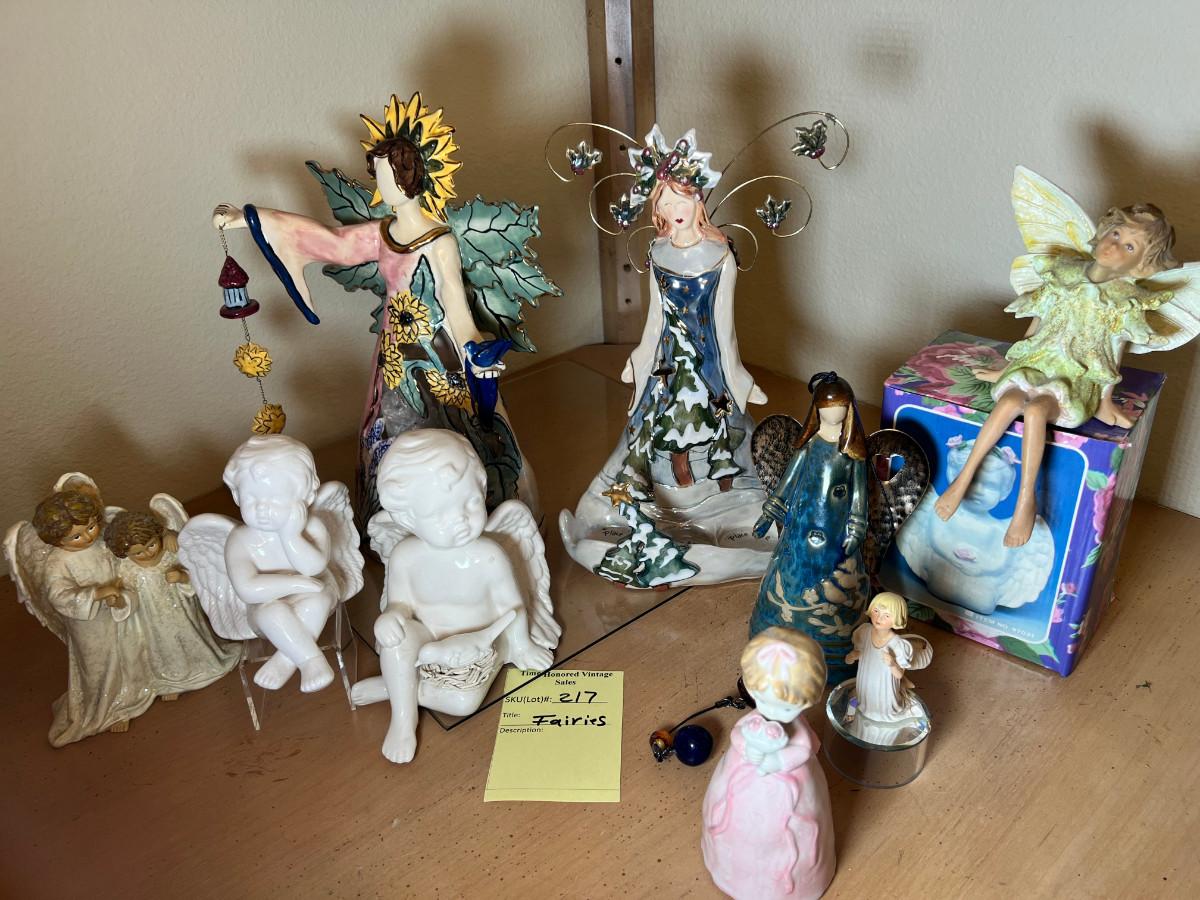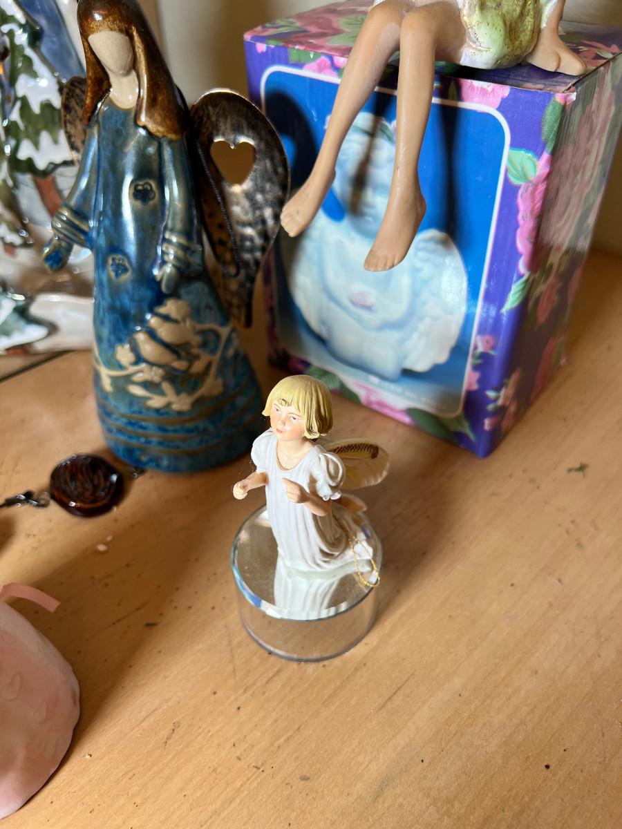 Angels and fairies, 2 ceramic Bells, 2 larger candle holders 1 new in box