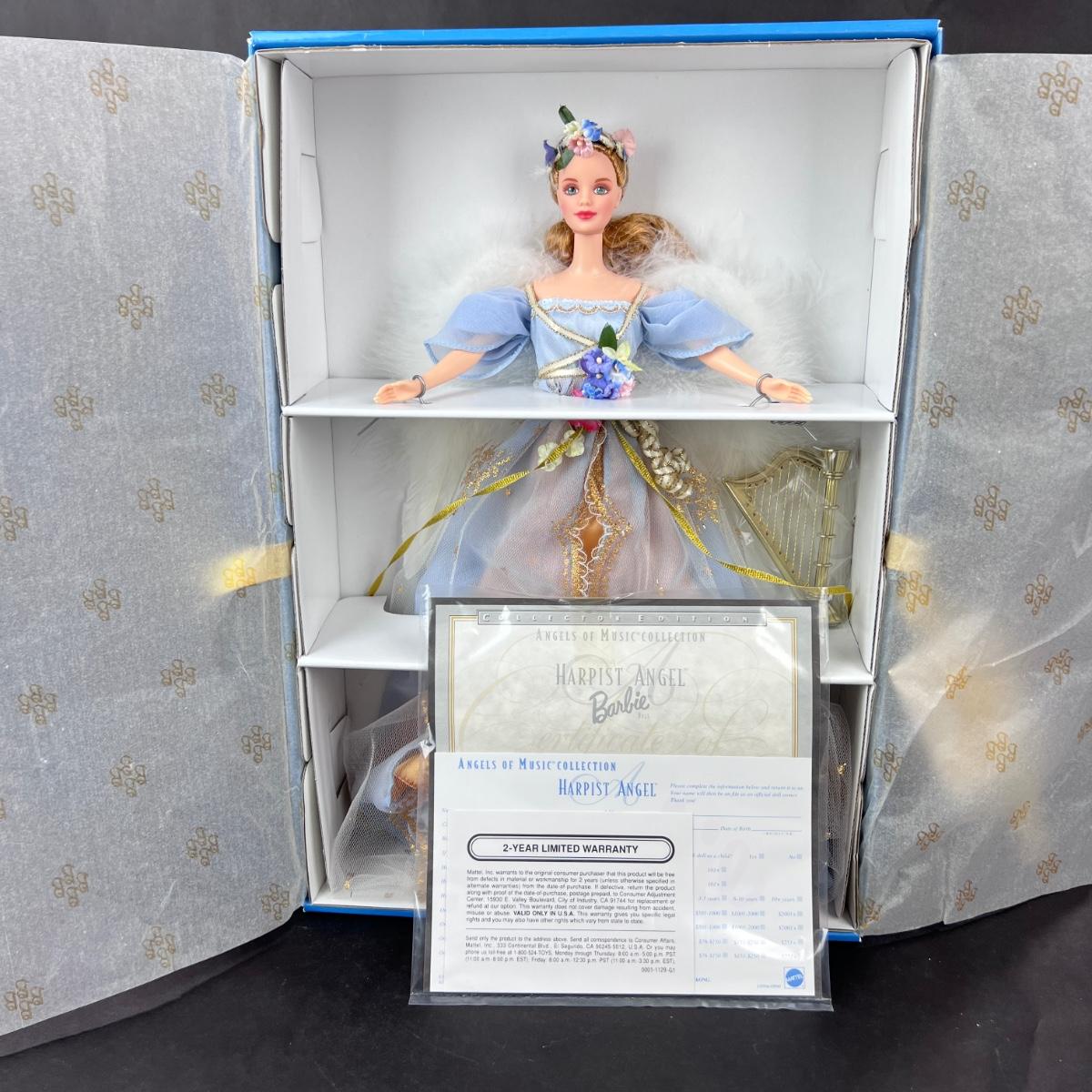 This Harpist Angel Barbie is the first in a series of Angels of Music. This doll comes with all original paperwork and accessories. This doll has not been out of its box. **|** Please see photos for details and condition. ::: Shipping is available on this lot. If you require shipping you must let us know at the close of the auction. We will coordinate with you after the item has been won. Shipping fees will include insurance up to or exceeding the value of all items being mailed. If you have any questions regarding this lot please contact the auctioneer either via this website, by direct email or by phone. PICK UP TIMES and other important information can be found in the TERMS and DESCRIPTION of the auction. Please take a look for pertinent information. Thanks!