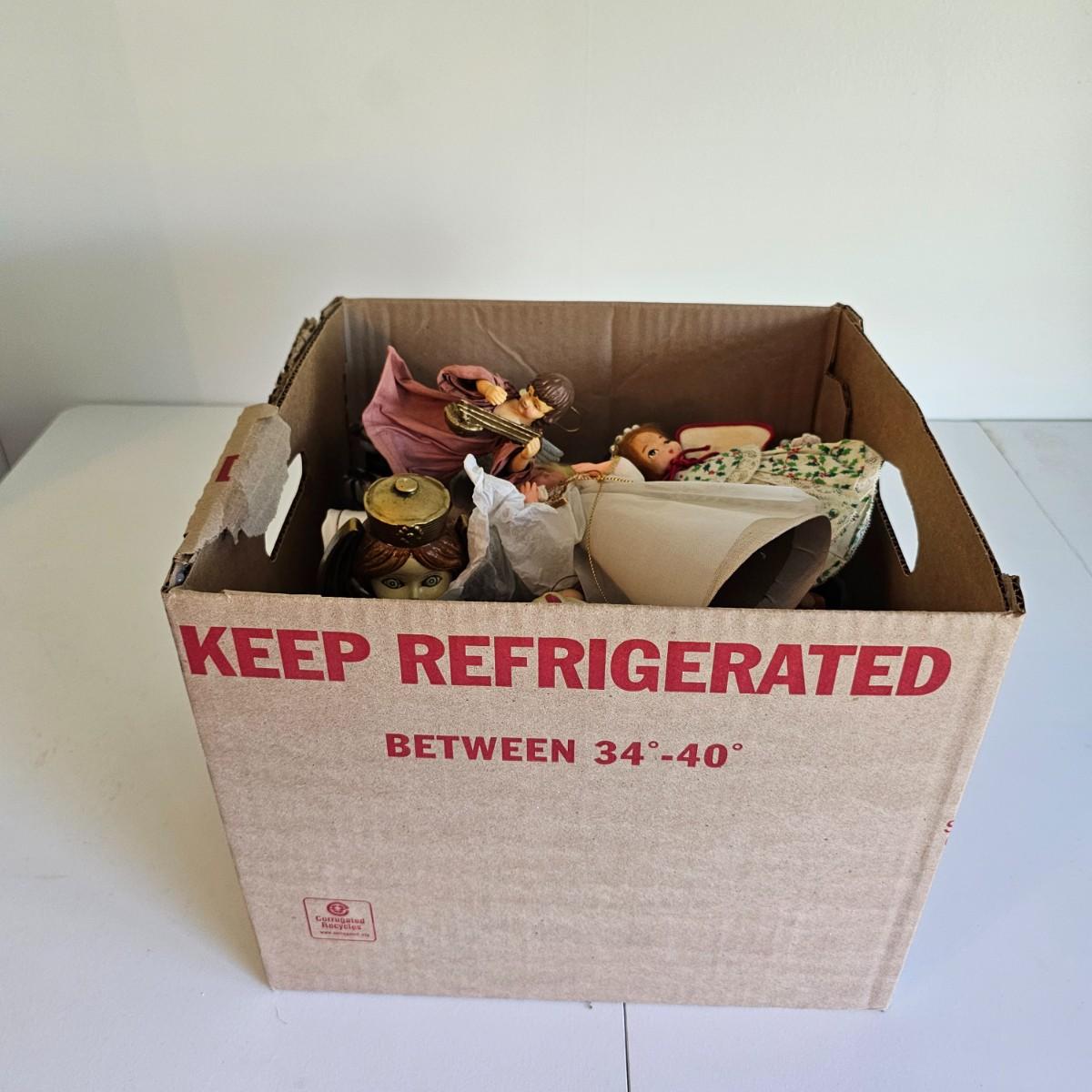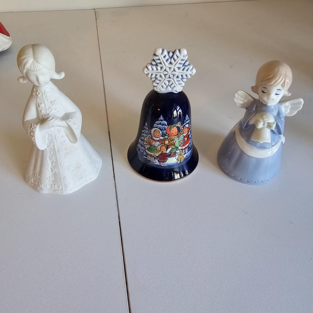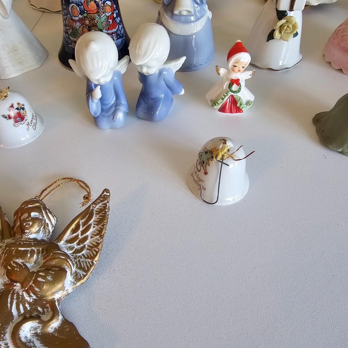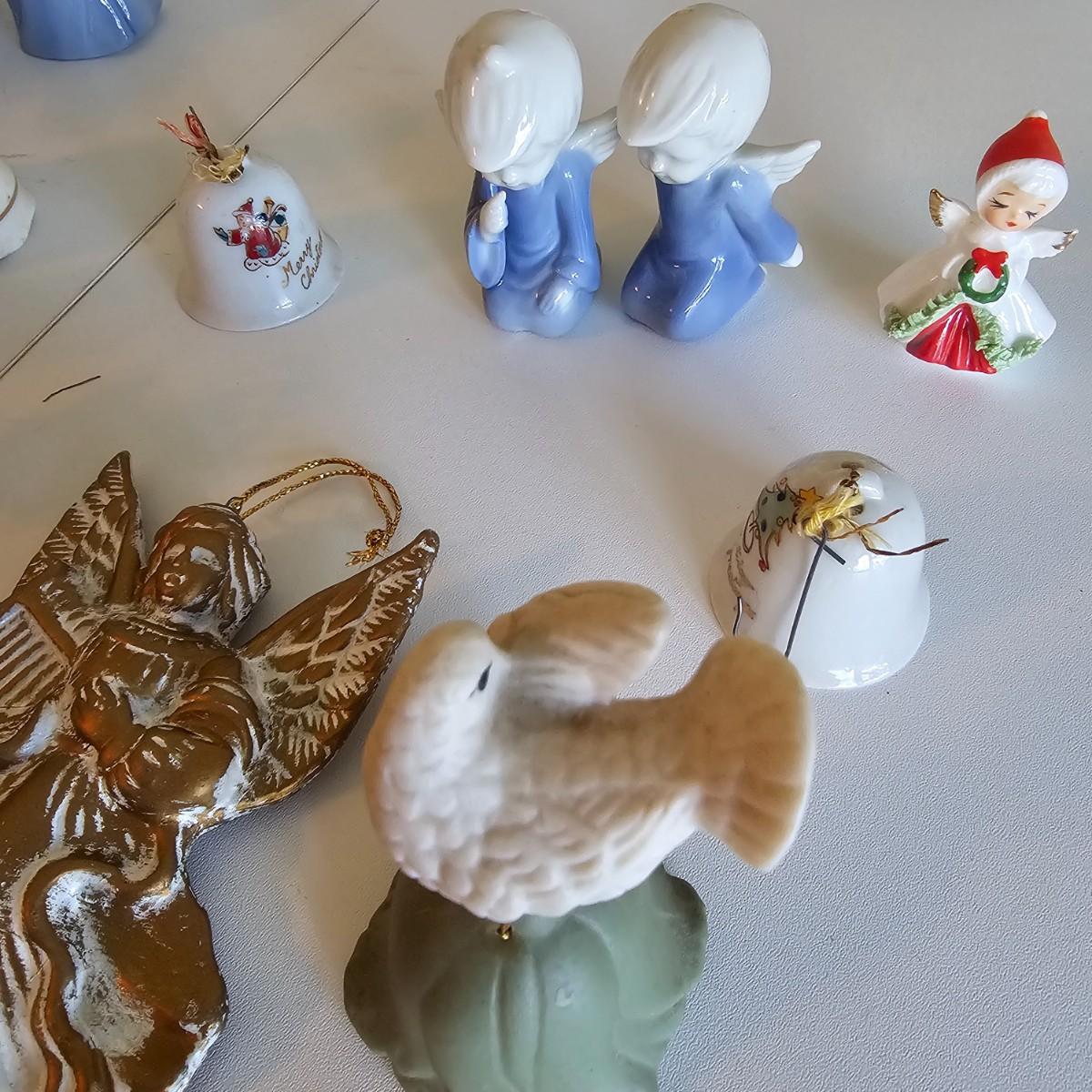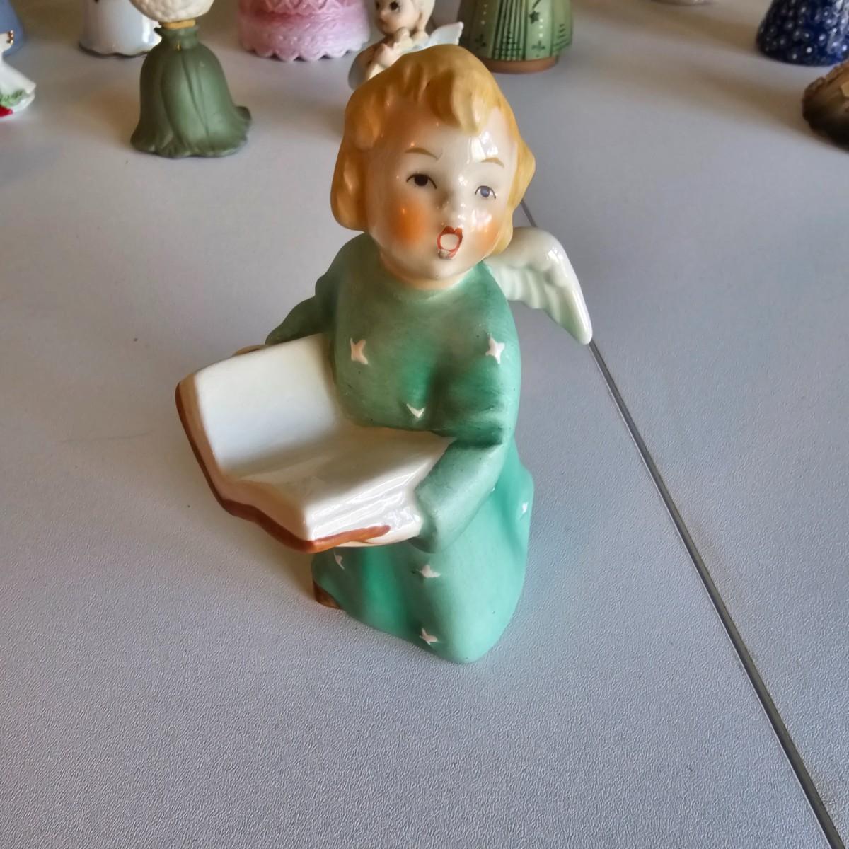 Lovel cherubic figures in glass, porcelain, wood and fabric. Many vintage items as well as newer. Some of these angels are bells, and some are music boxes. Tallest angel is 9.5"H. Produced all over the world, China, Japan, Germany, Taiwan, others. Also some fun snowmen figures. See photos for details. Shipping available.