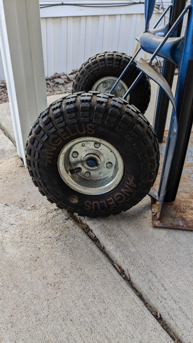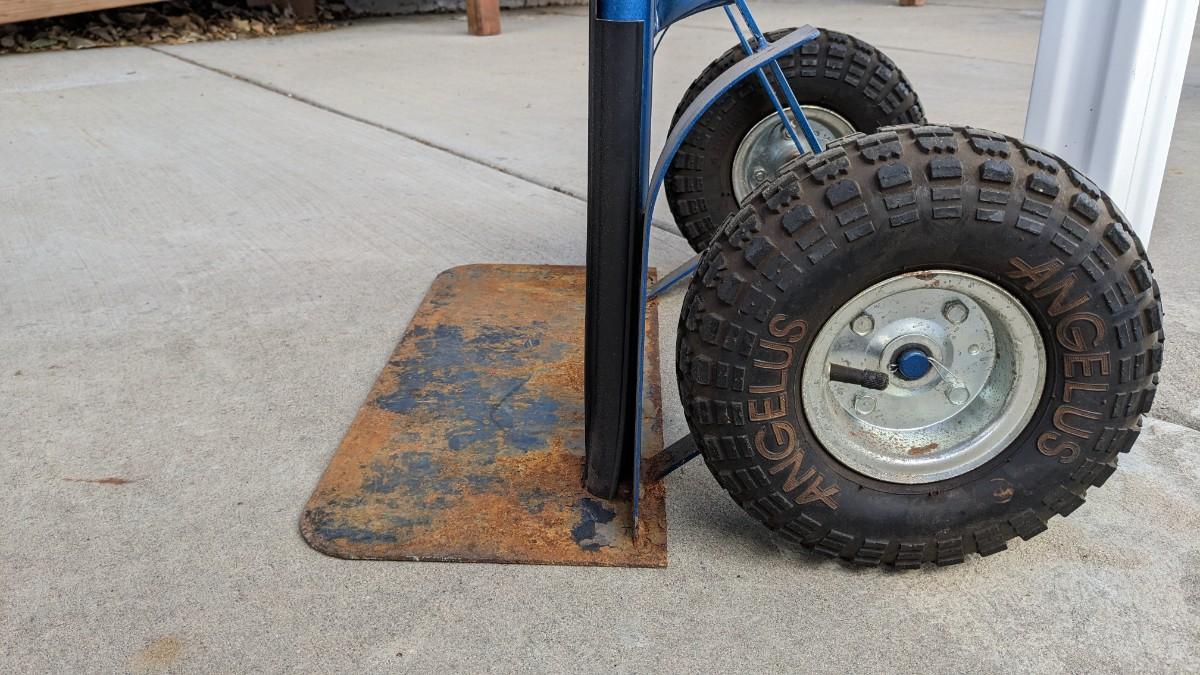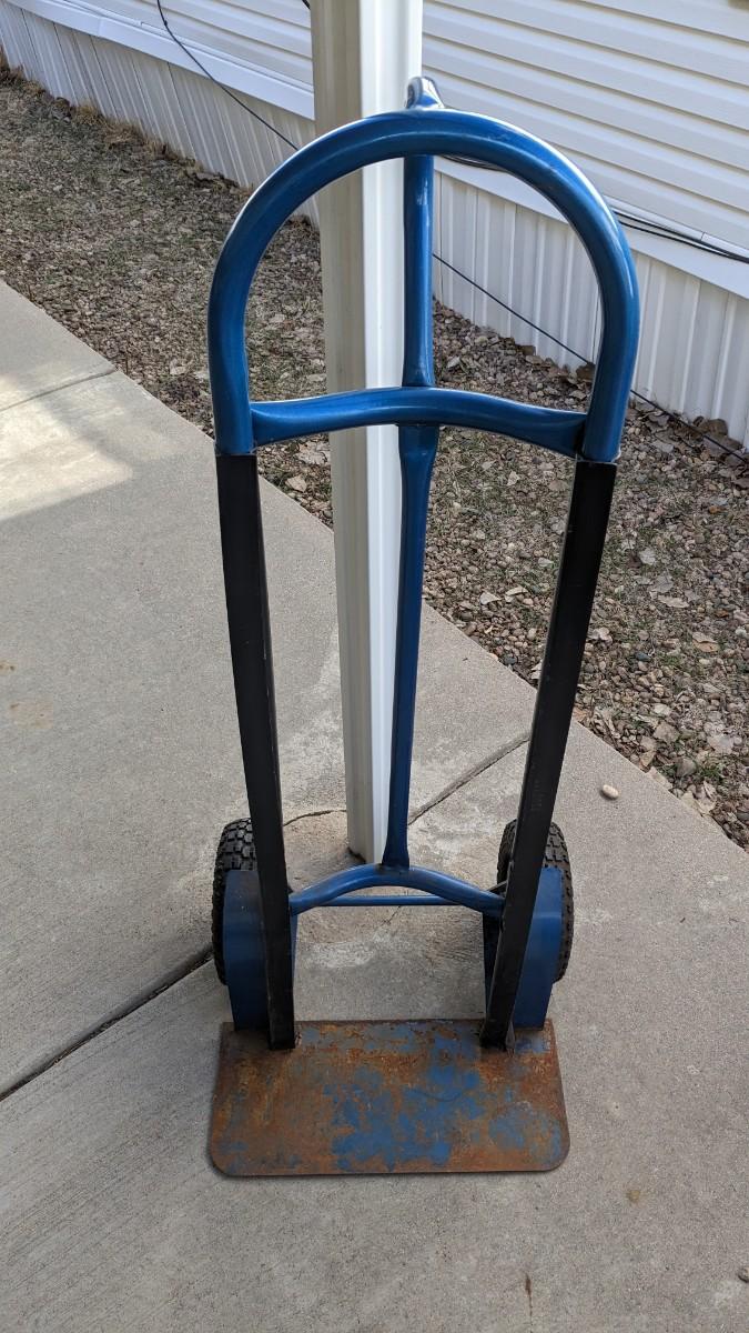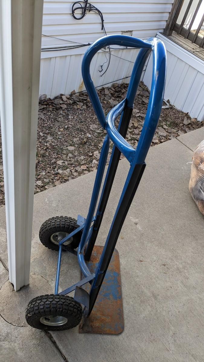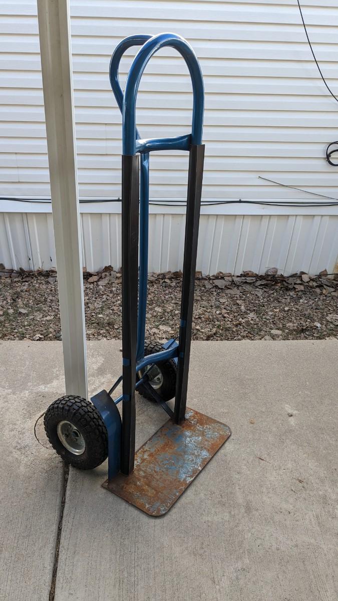50" tall with 20" platform, rail guards and aired tires, in great condition outside of rust on platform. No shipping. shed