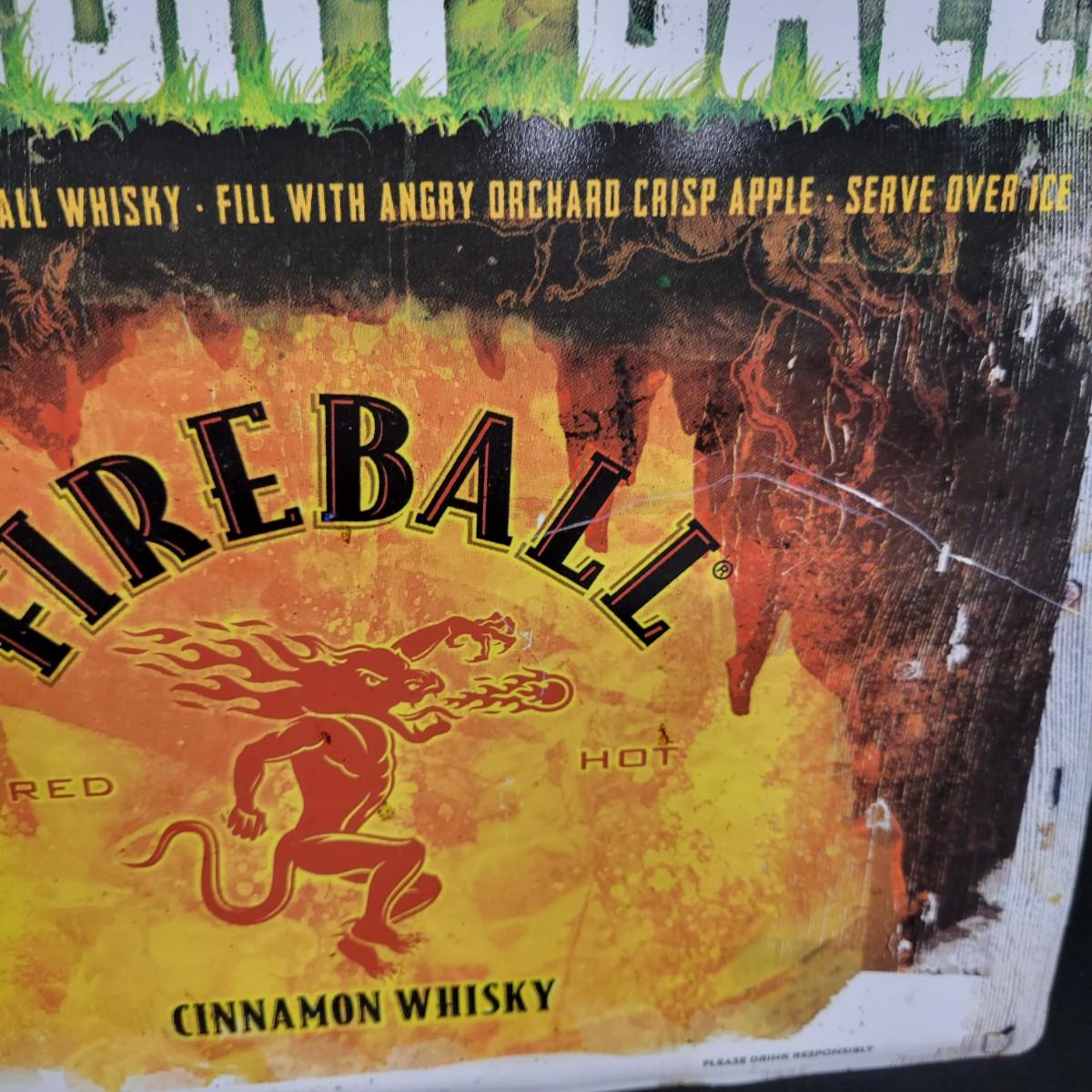 Angry Orchard and Fireball Whiskey metal sign in good condition. There are a few minor scratches, see attached pictures. Measures approximately 11.5" x 17.5" Shipping available