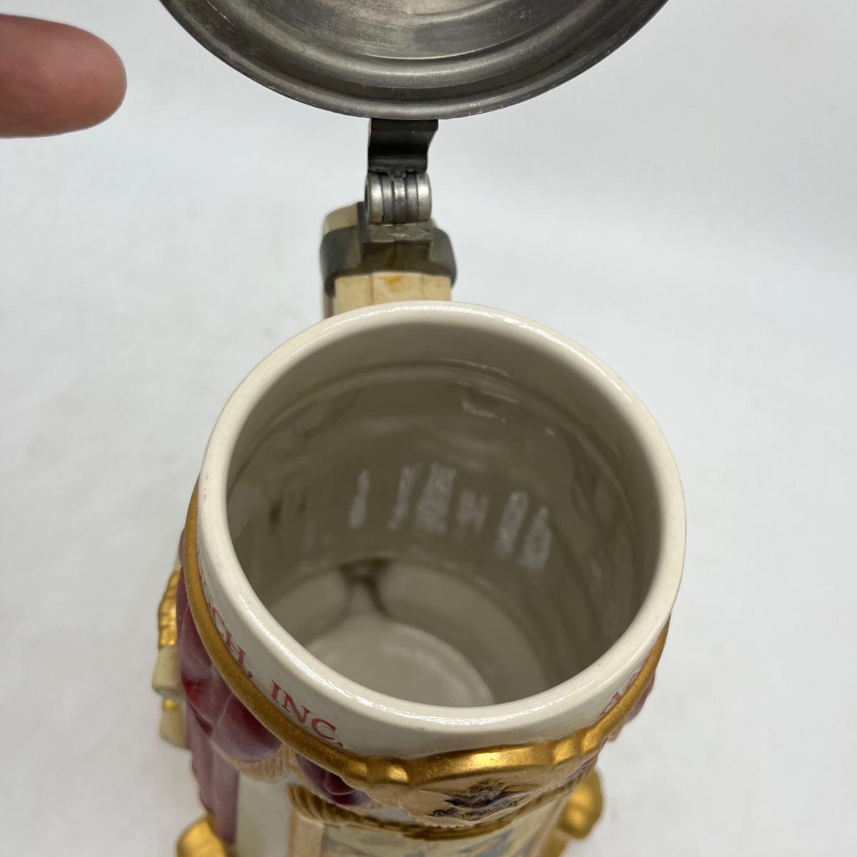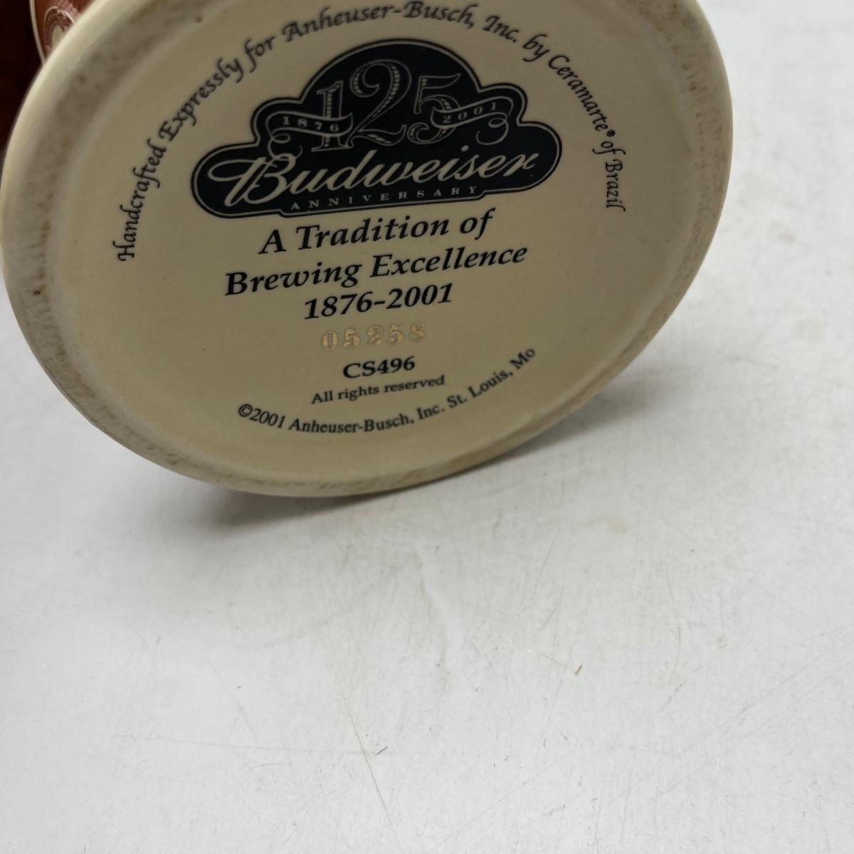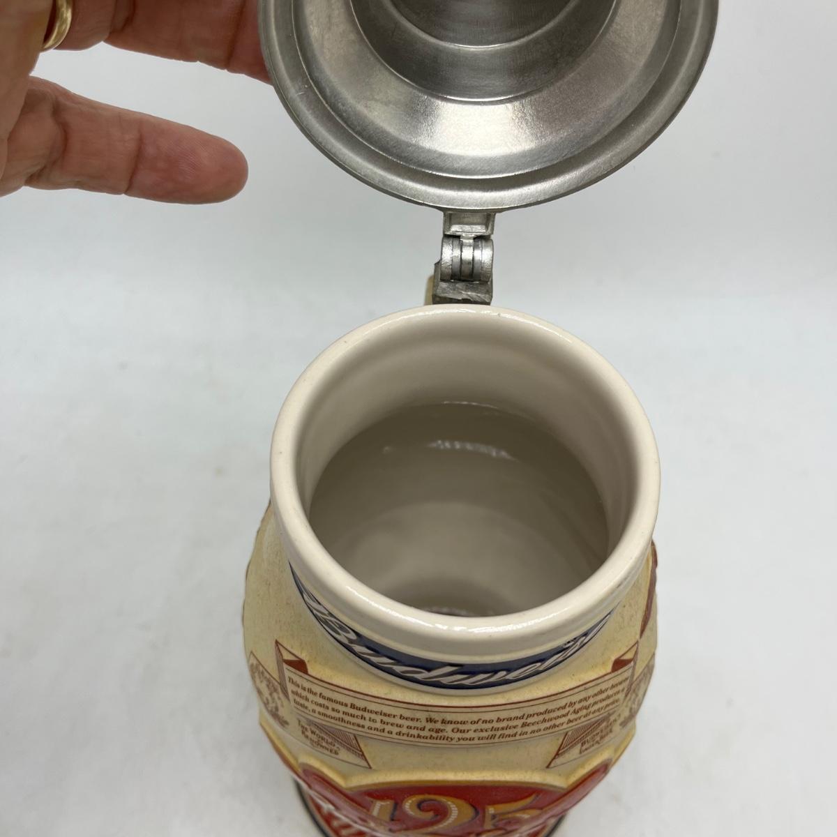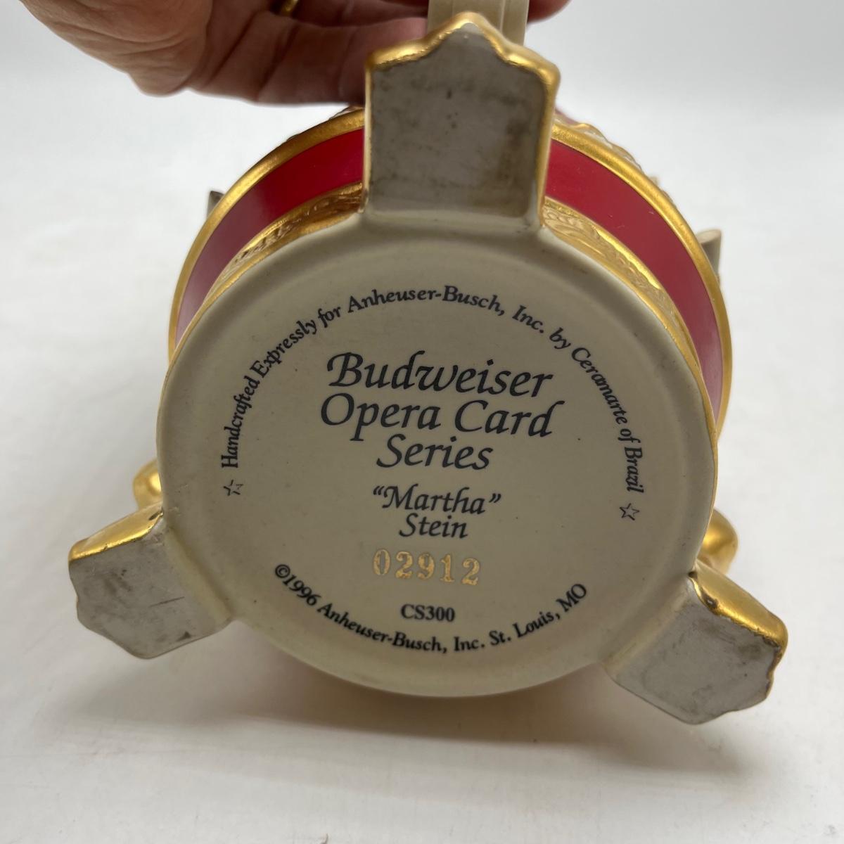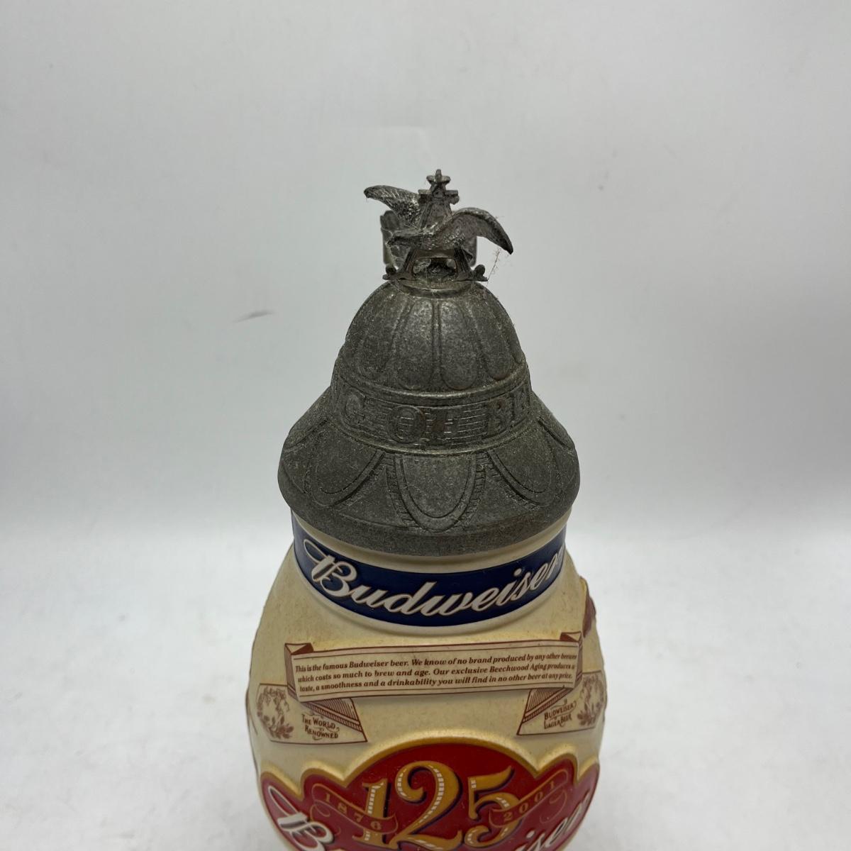 Lot includes Anheuser Busch 125th anniversary stein and a Anheuser Busch Opera card stein. Largest stein measures 4.5” x 6” x 11”.