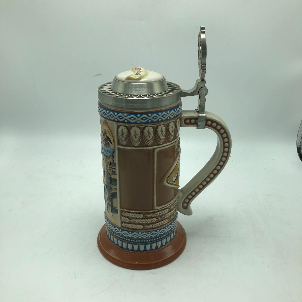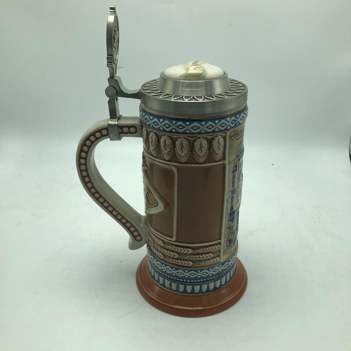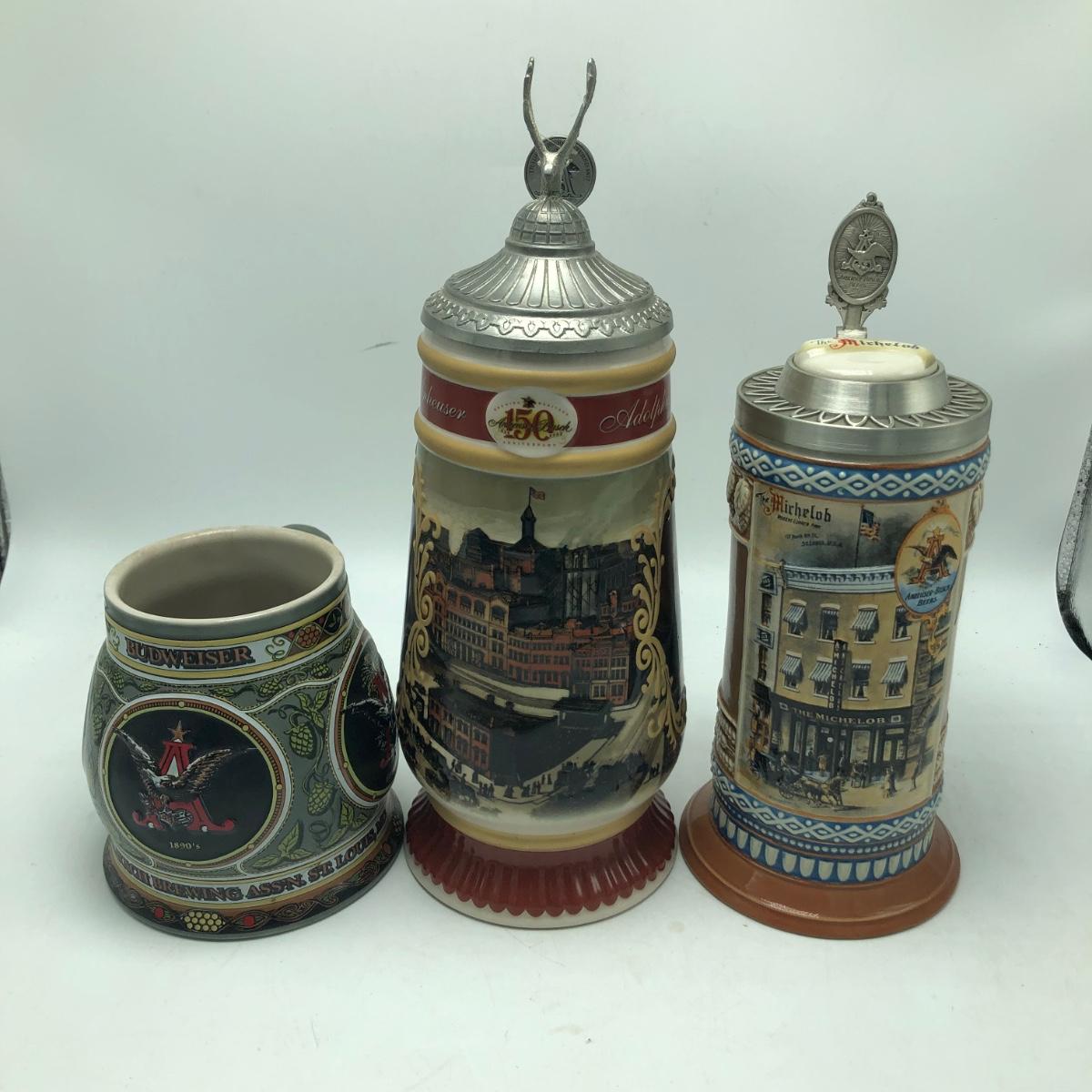 Lot contains a Anheuser Busch 150th anniversary stein, Michelin Tavern stein and Historical A & E Mug. All three come with original box. Tallest stein measures 4.5” x 7” x 12”.