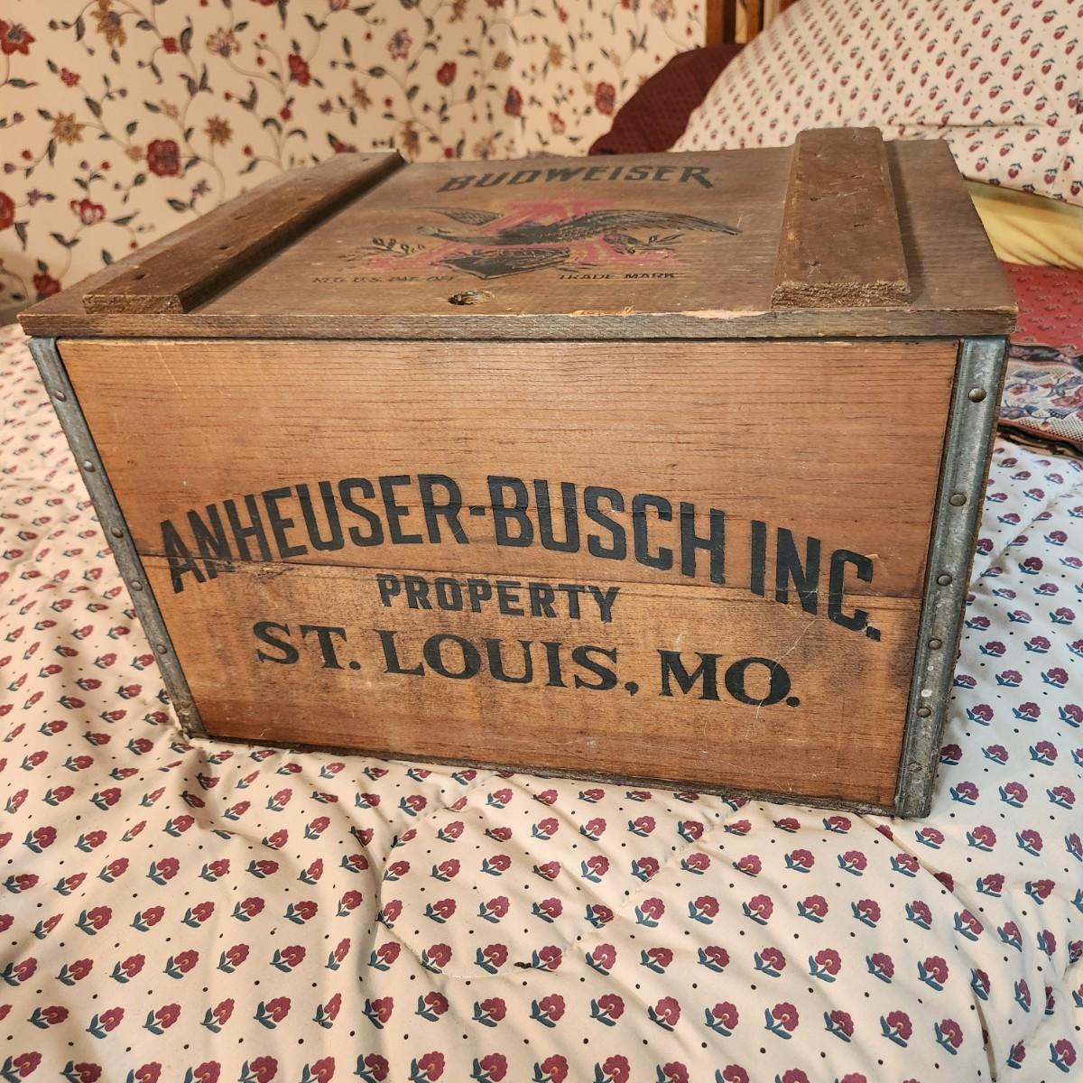 Anheuser Busch Beer St. Louis MO Wooden Crate with Lid Bar Man Cave