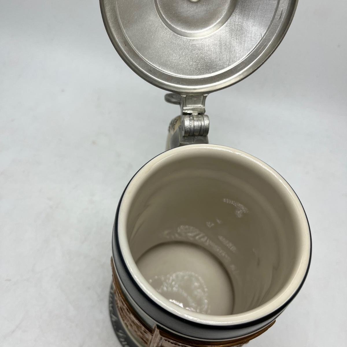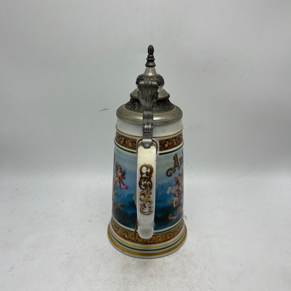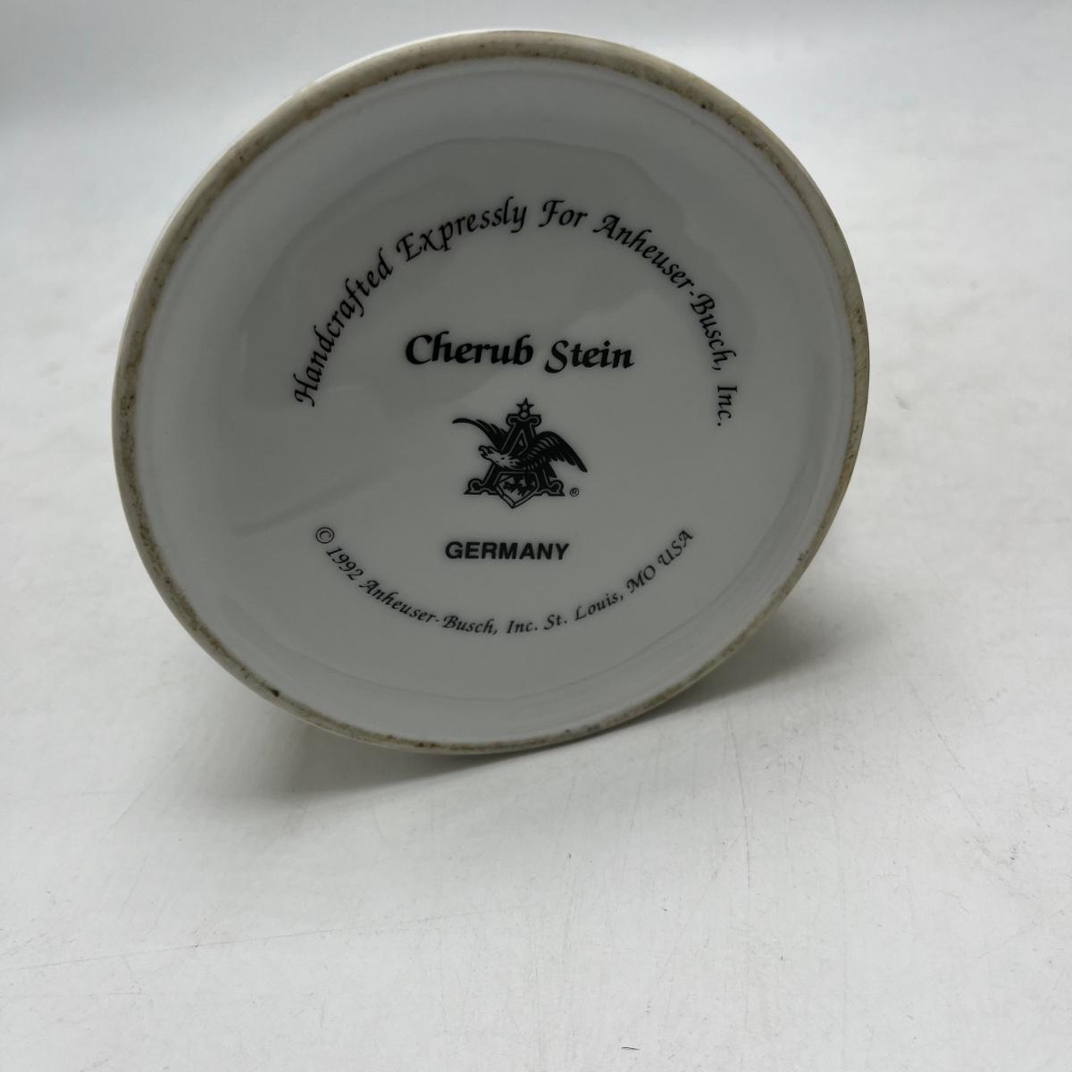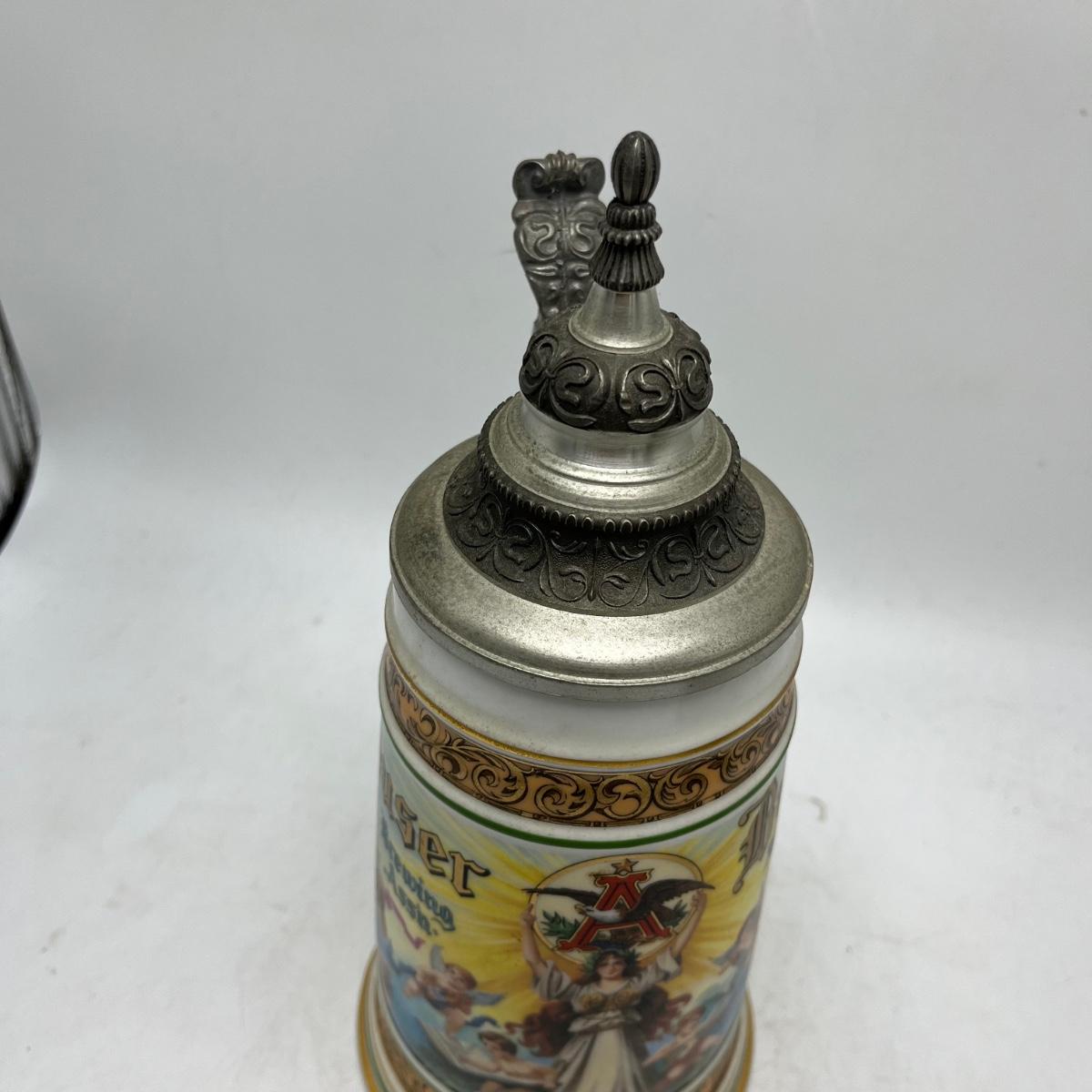 Lot includes a Anheuser Busch Clydesdales 75th anniversary stein. Cherub stein and a Tradition of BBC Quality stein. Tallest stein measures 4.75” x 6” x 11”.