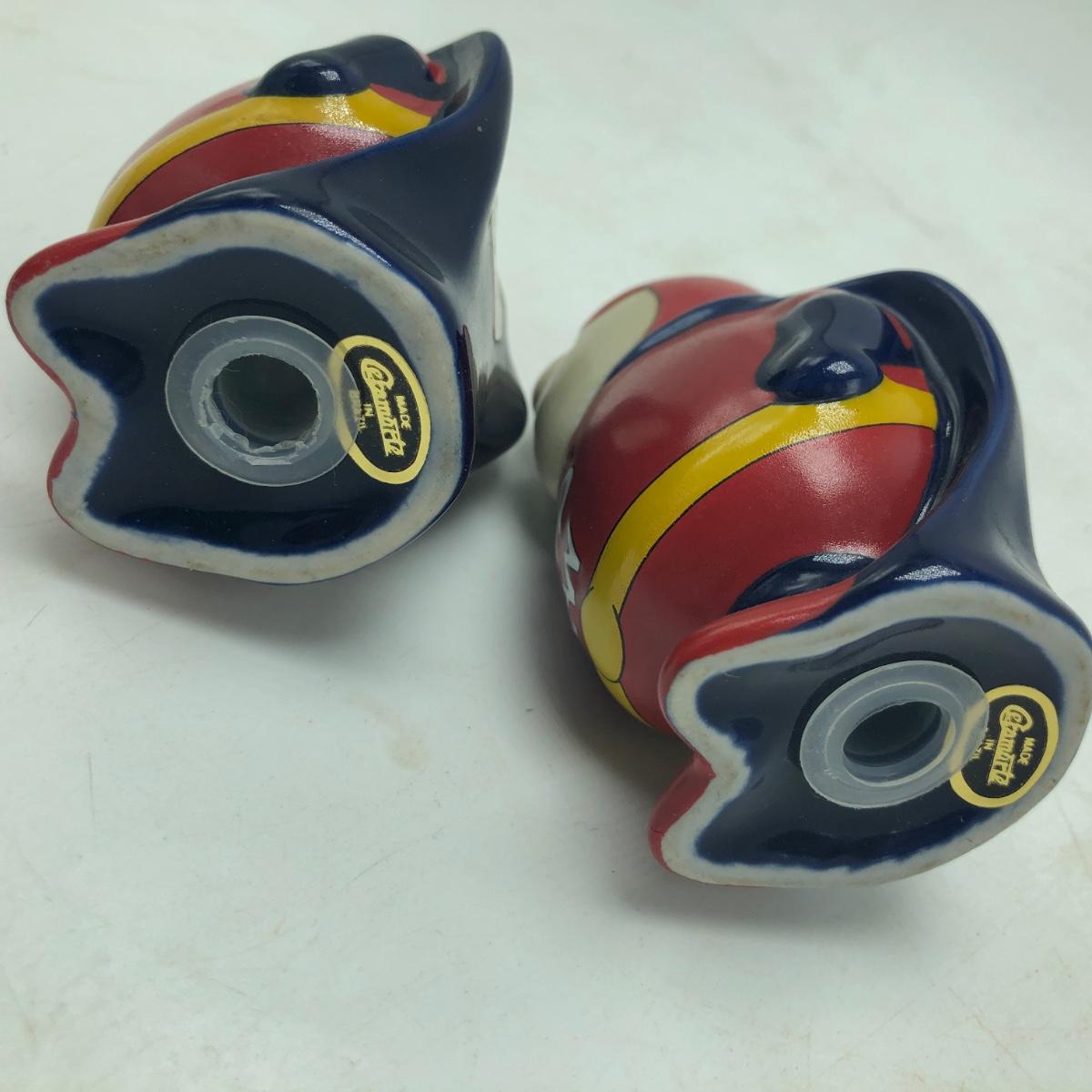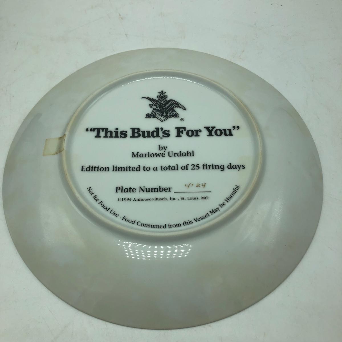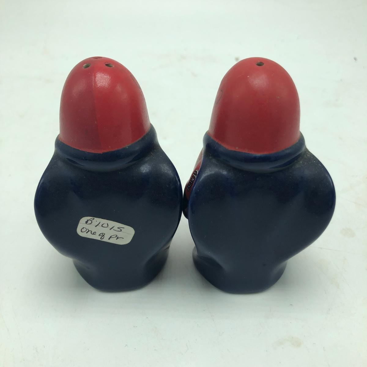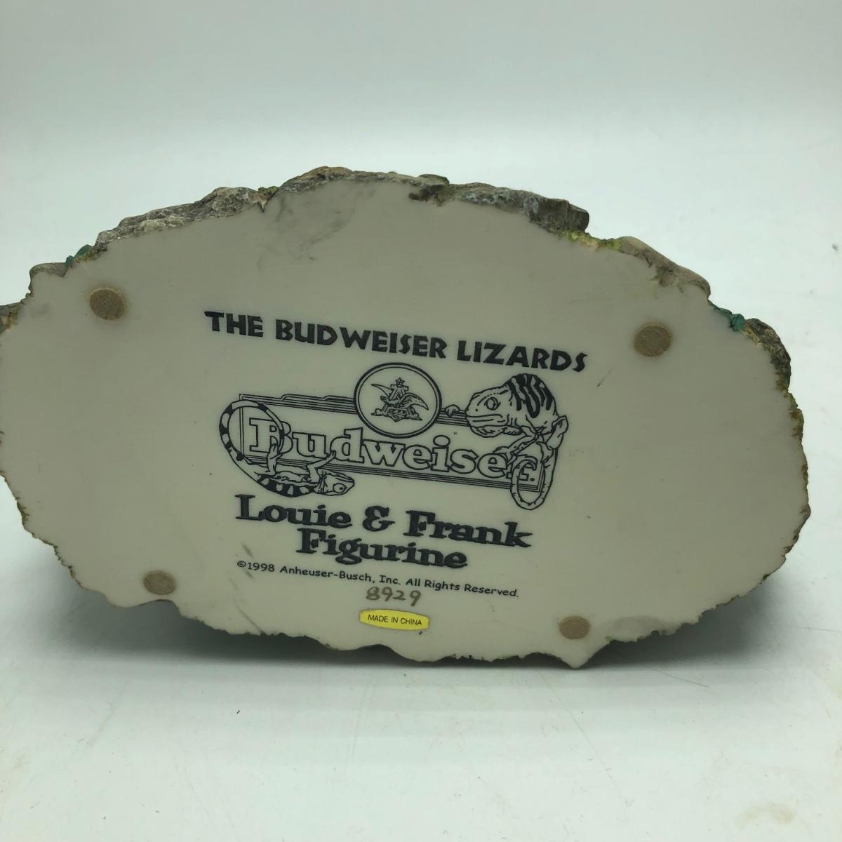 Lot includes Bud Man salt and pepper shakers, plate, Louie and Frank figurine, Eagle figurine and a figurine titled “ Parade Dress Pals “. Plate measures 8”D.
