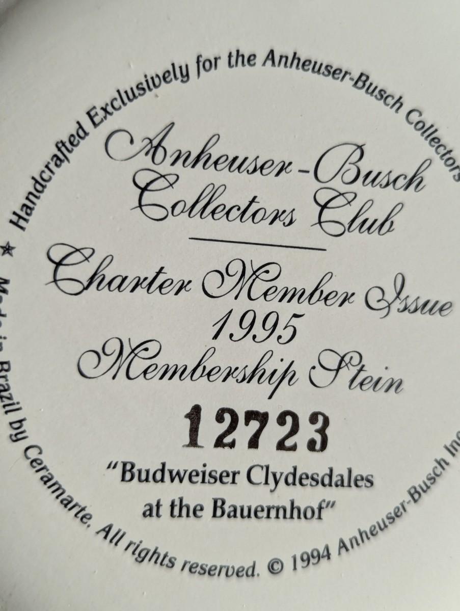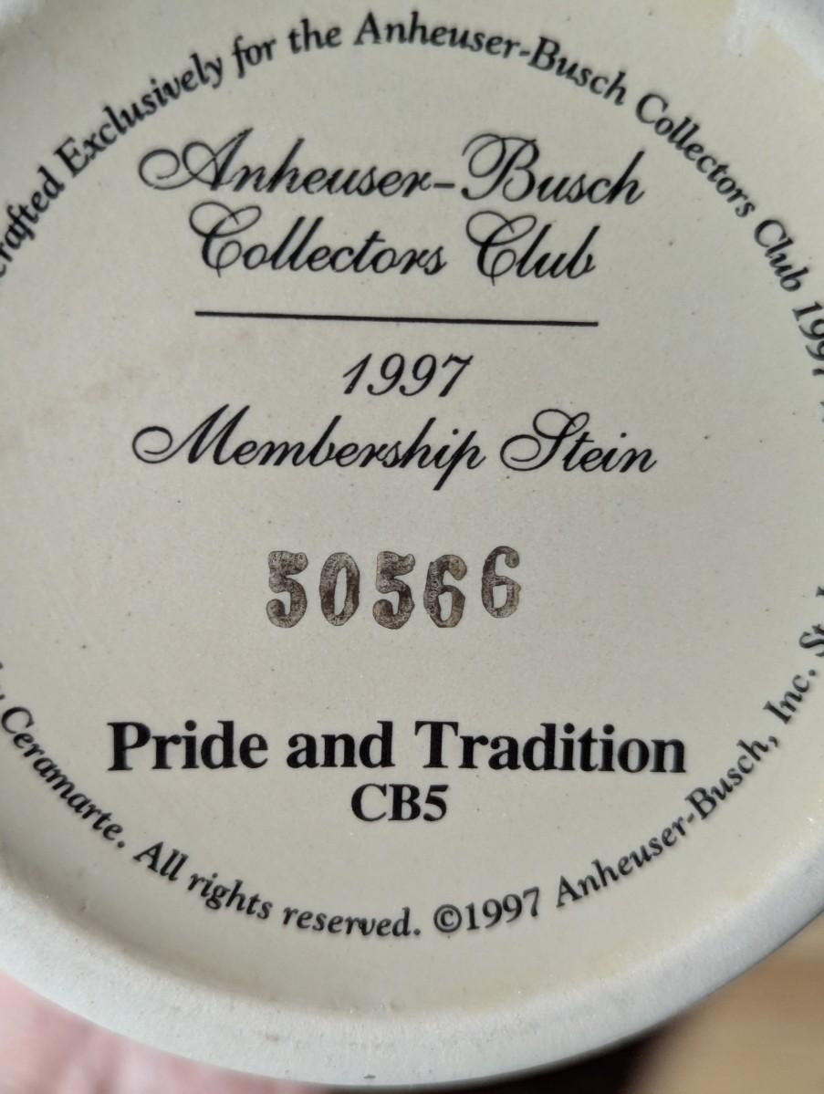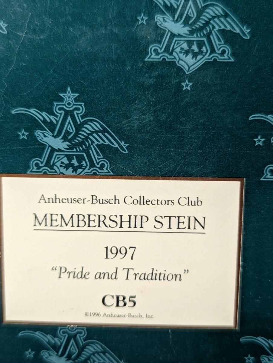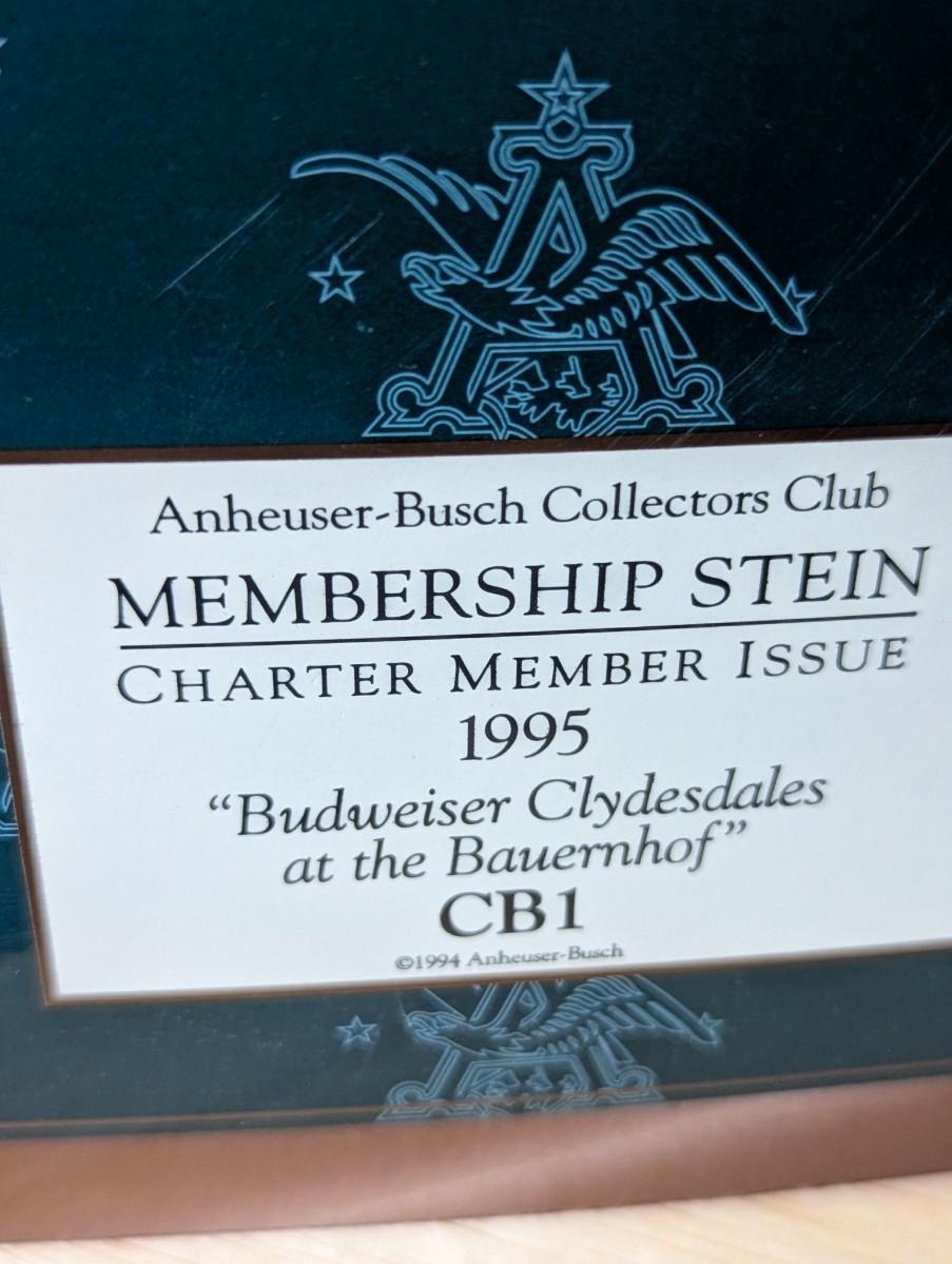 Anheuser-Busch Membership Stein "Pride & Tradition" w/ Box & Charter Member "Budweiser Clydesdales At The Bauernhof"