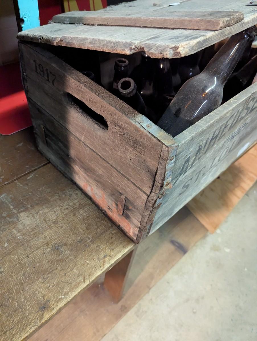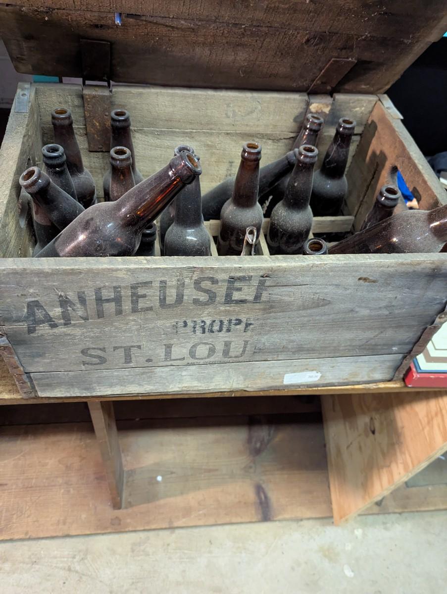 Anheuser-Busch St. Louis Wooden Box With Vintage Brown Bottles