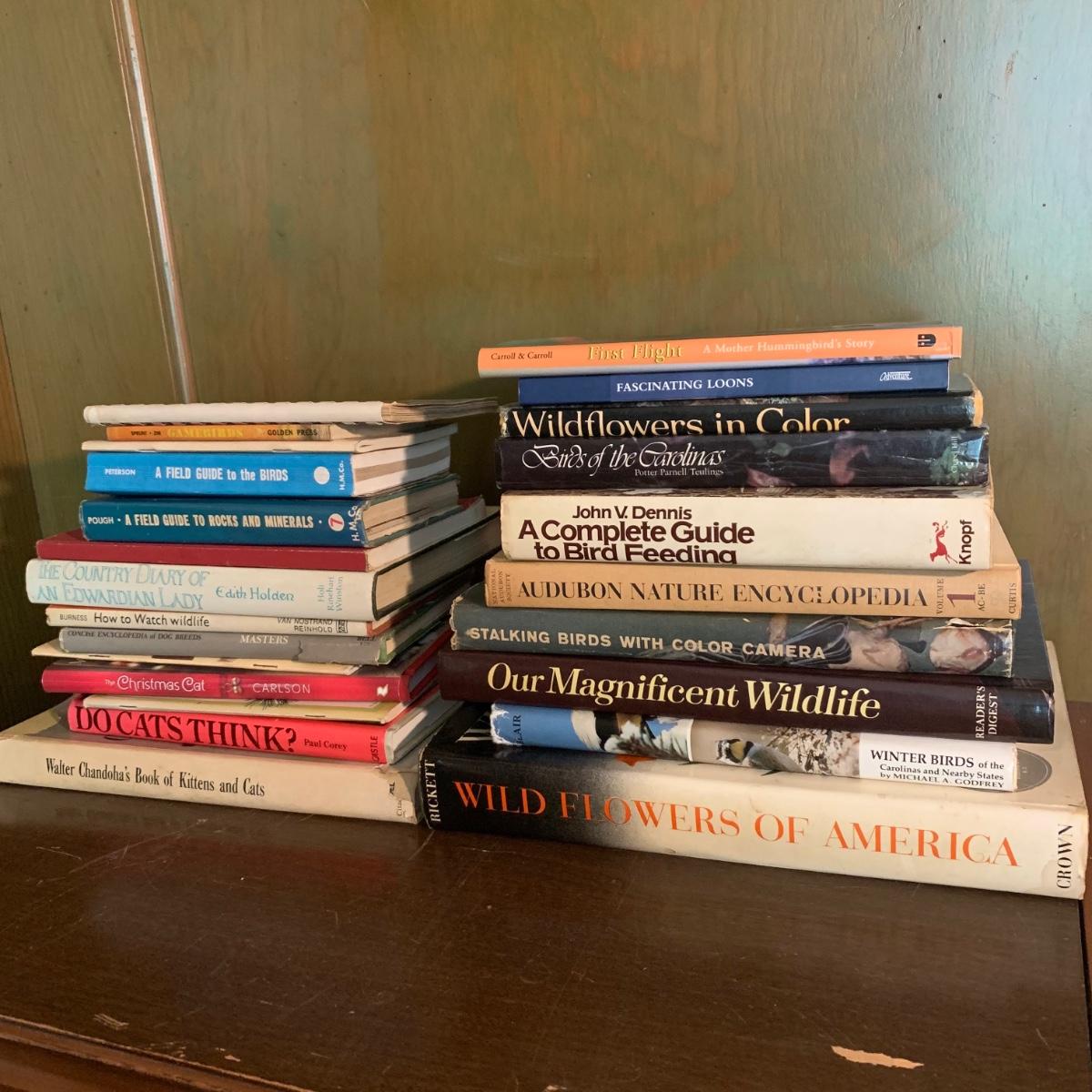 Included in this lot is a variety of bird watching books, plant identification books, and other animal books. The lot includes 20+ books all in good condition with a few book covers having fading and tearing. Local pickup only.