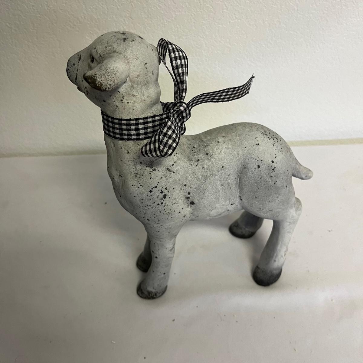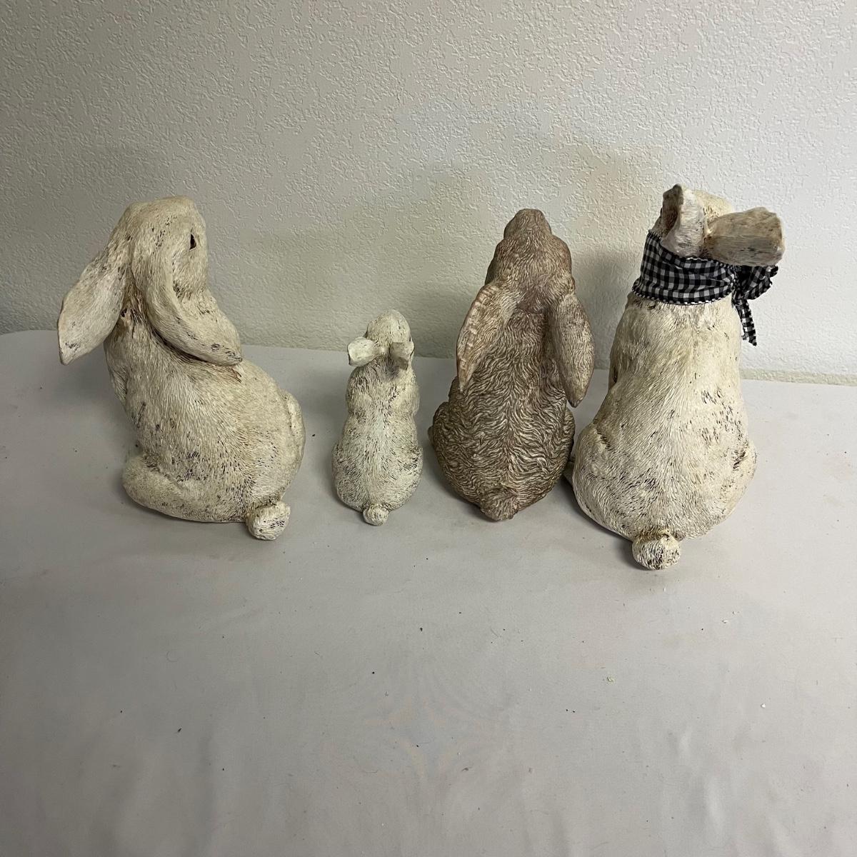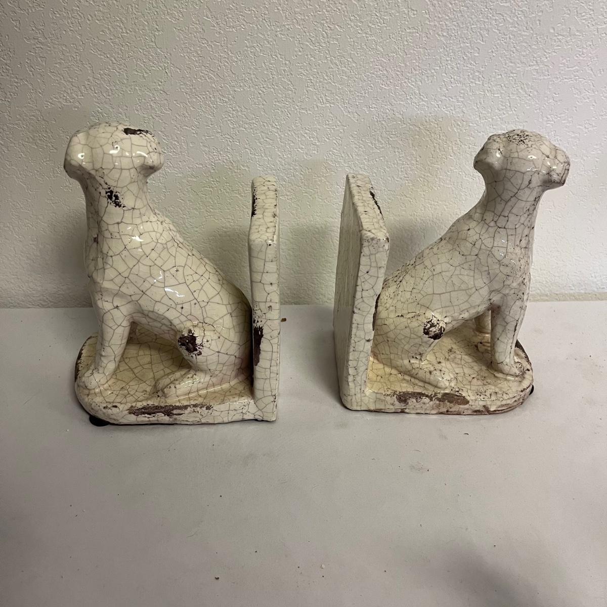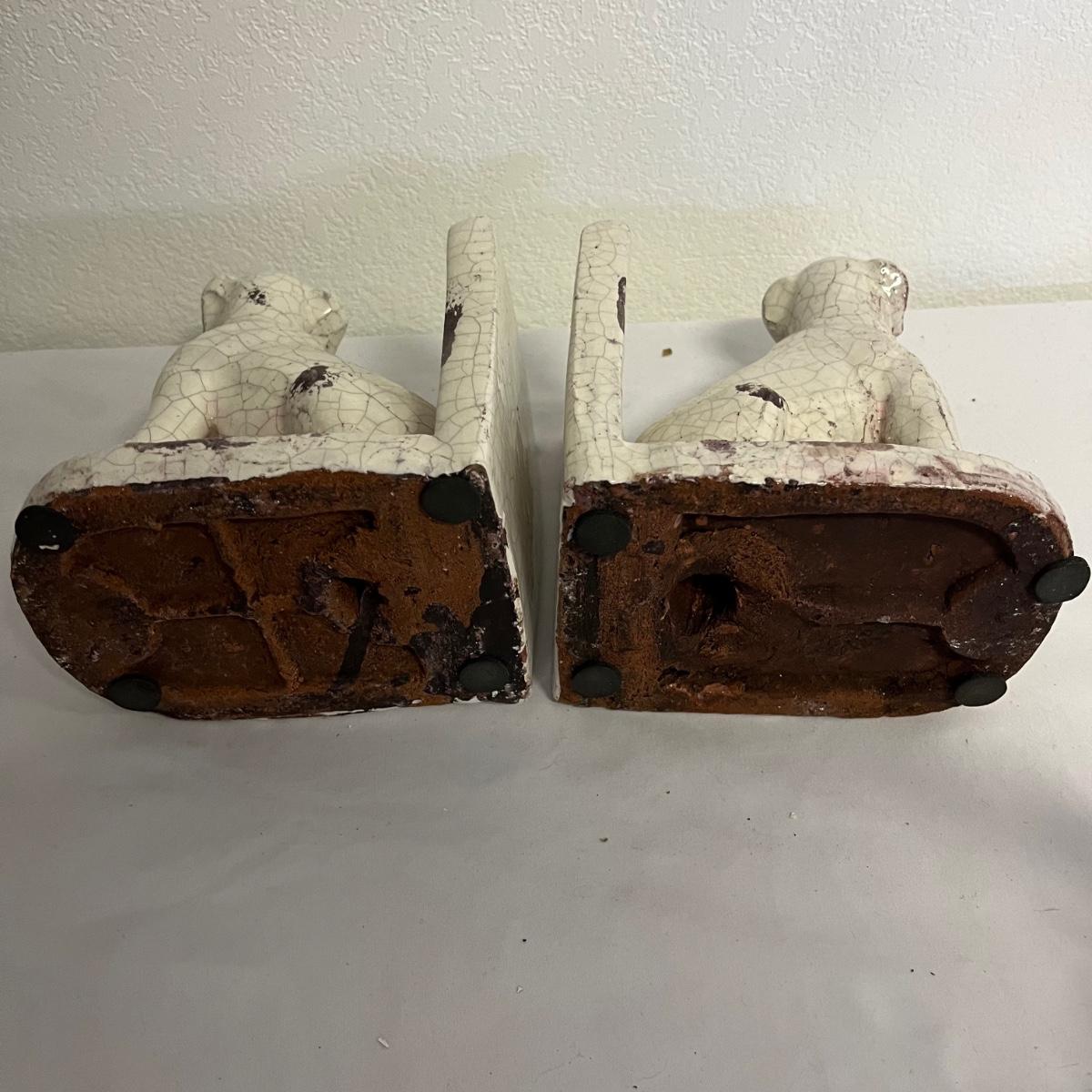 Lot includes pair of terra cotta dog bookends, two ceramic rabbits on bowls, seven resin rabbis, two resin birds, glass dome and a ceramic lamb that measures 3” x 7.25” x 9.25”.
