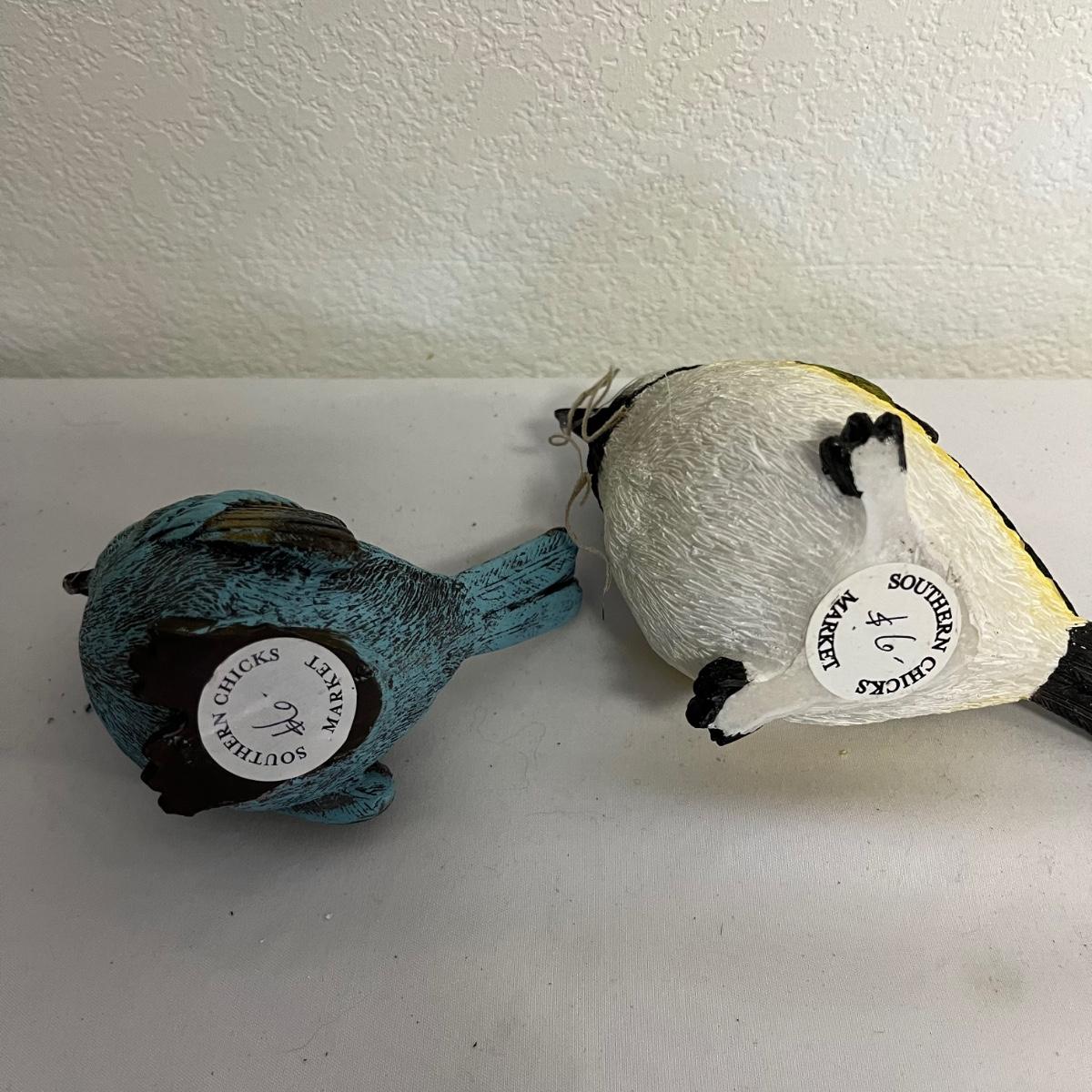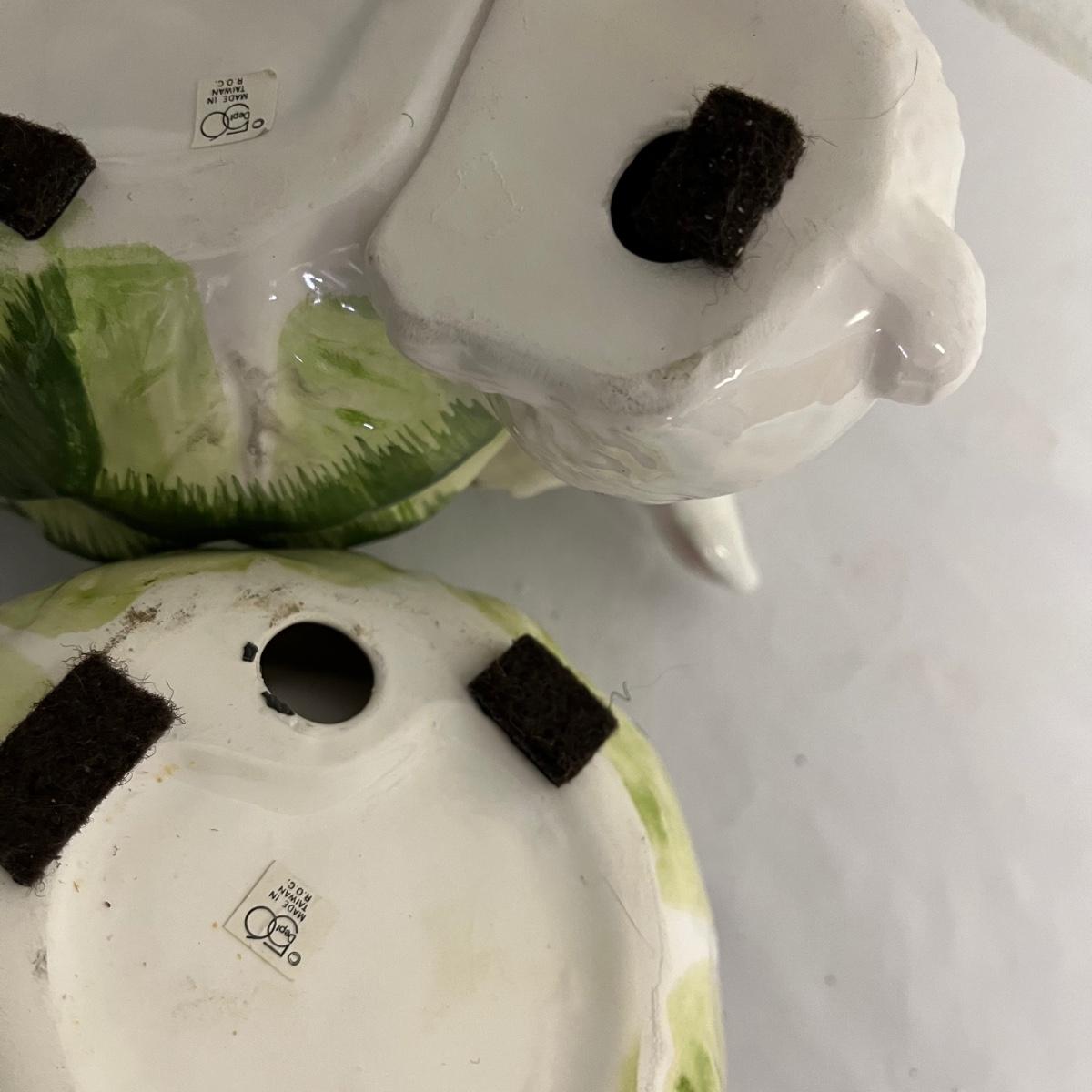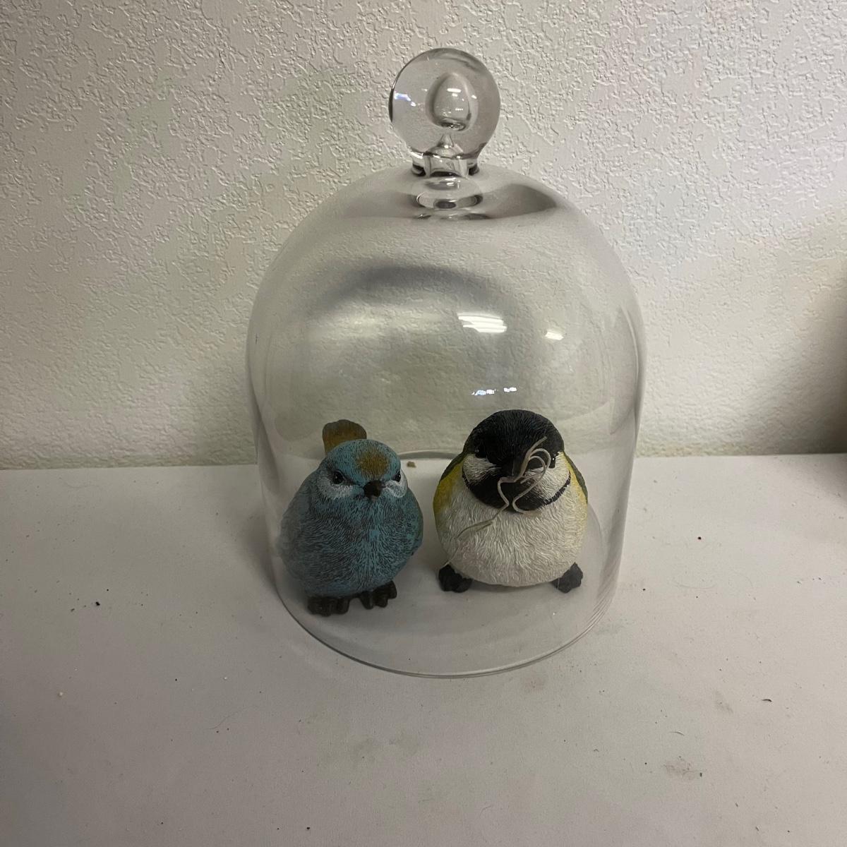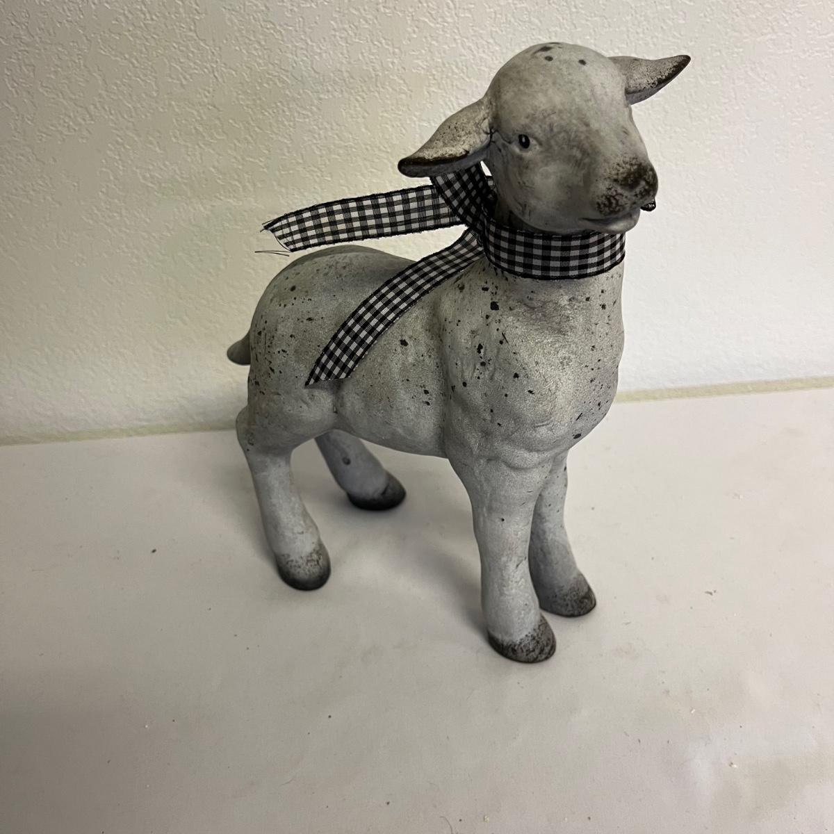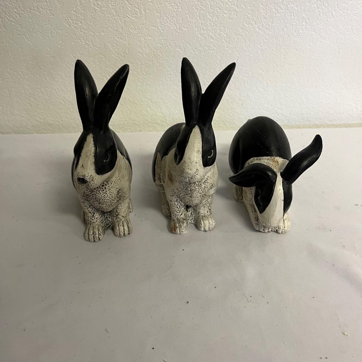 Lot includes pair of terra cotta dog bookends, two ceramic rabbits on bowls, seven resin rabbis, two resin birds, glass dome and a ceramic lamb that measures 3” x 7.25” x 9.25”.