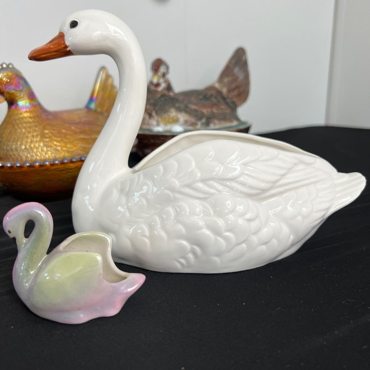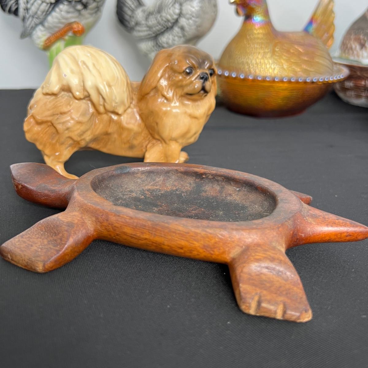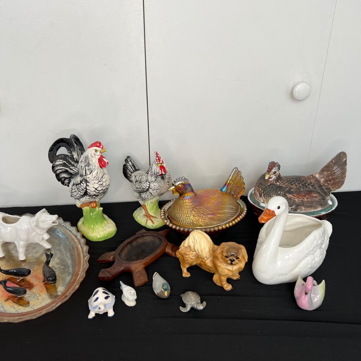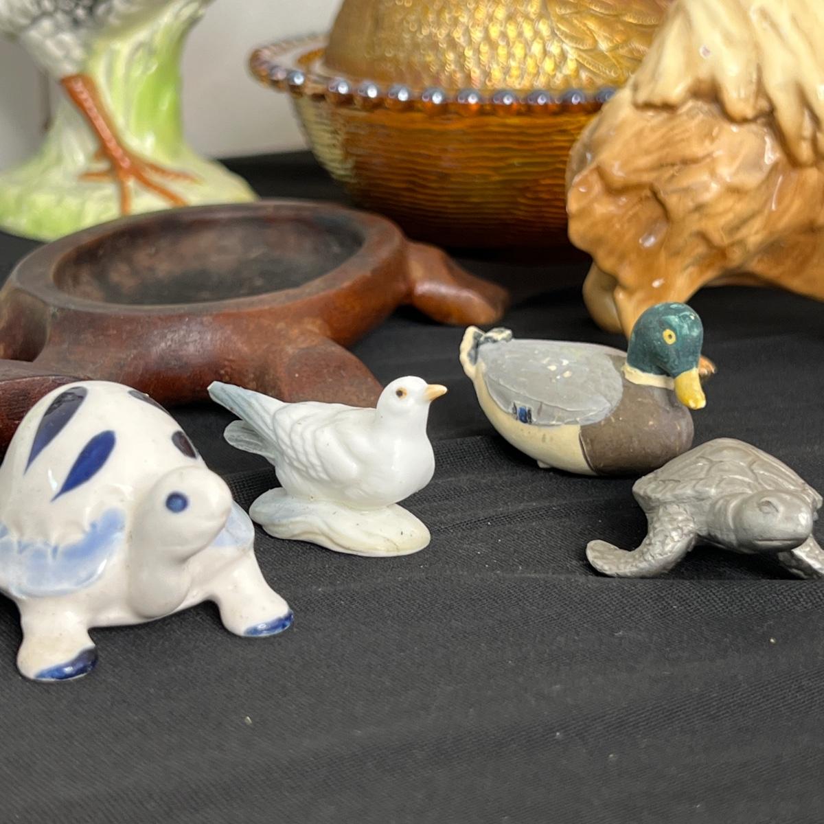 Animal Figurines Lot - Carnival Glass, Wood, Porcelain, Pewter
