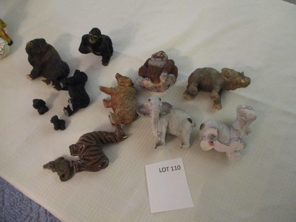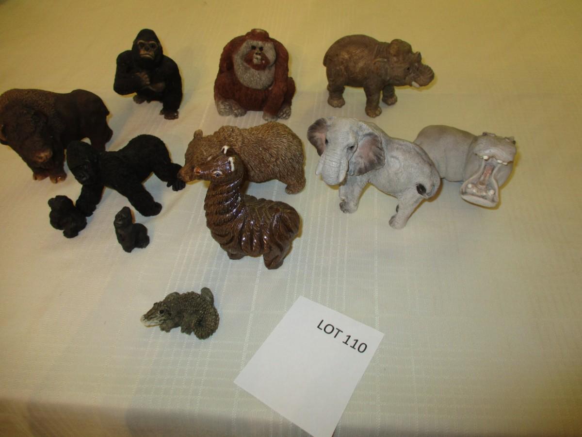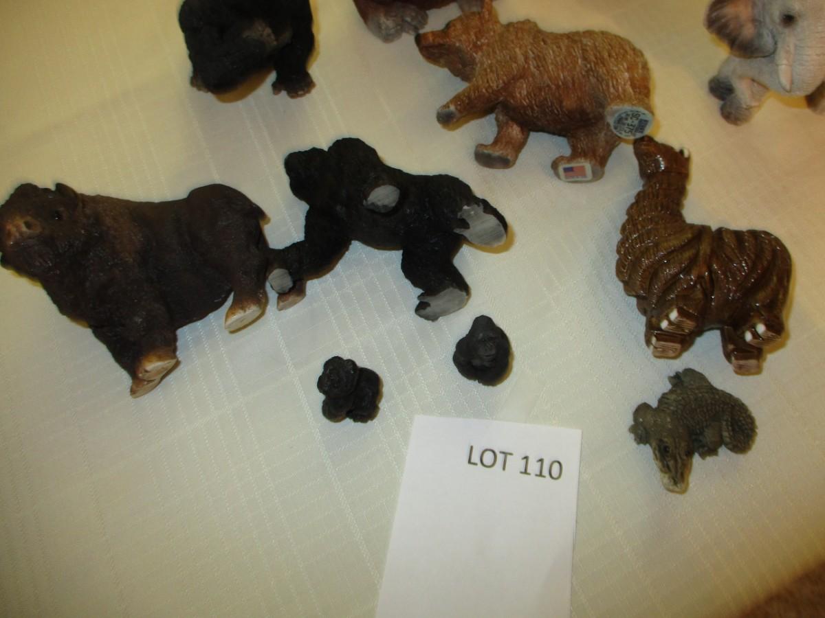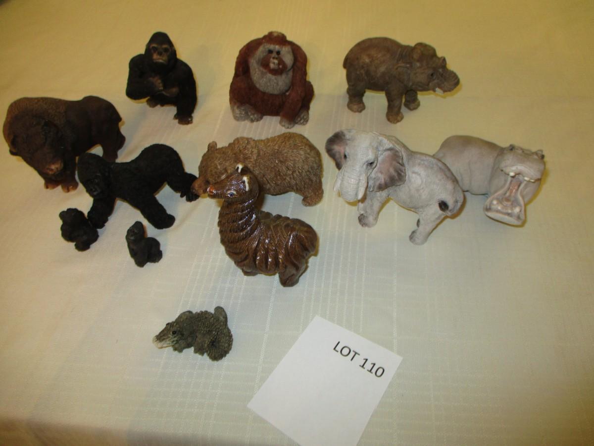 12pcs. Stone Critters, Cast llama, orangutang, hippo, elephant, apes