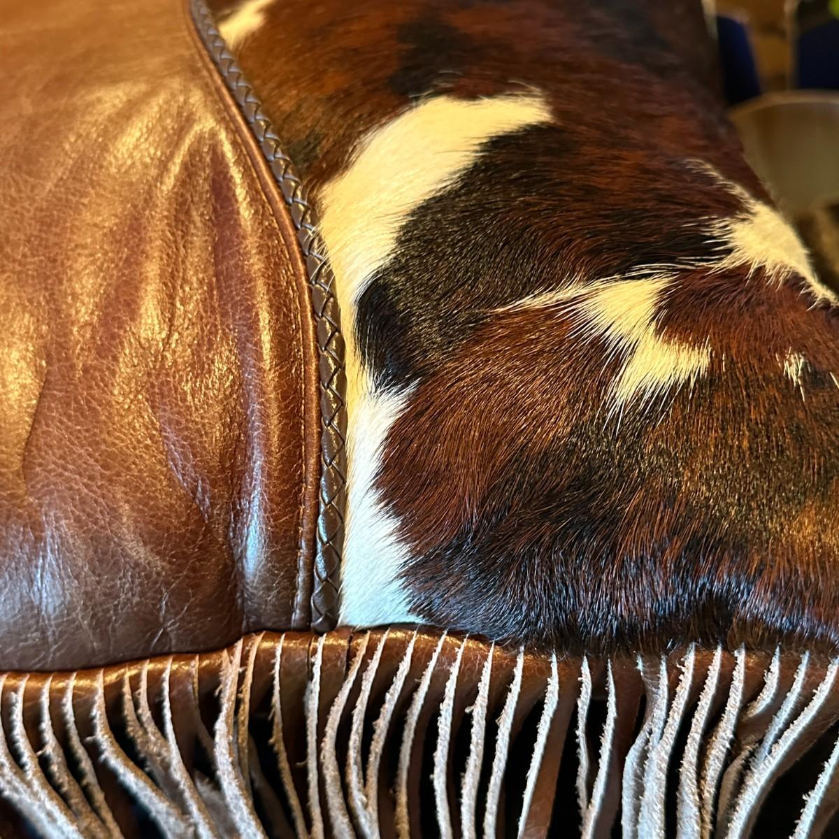 Animal Hide and Leather Throw Pillow with Fringe 20" Square