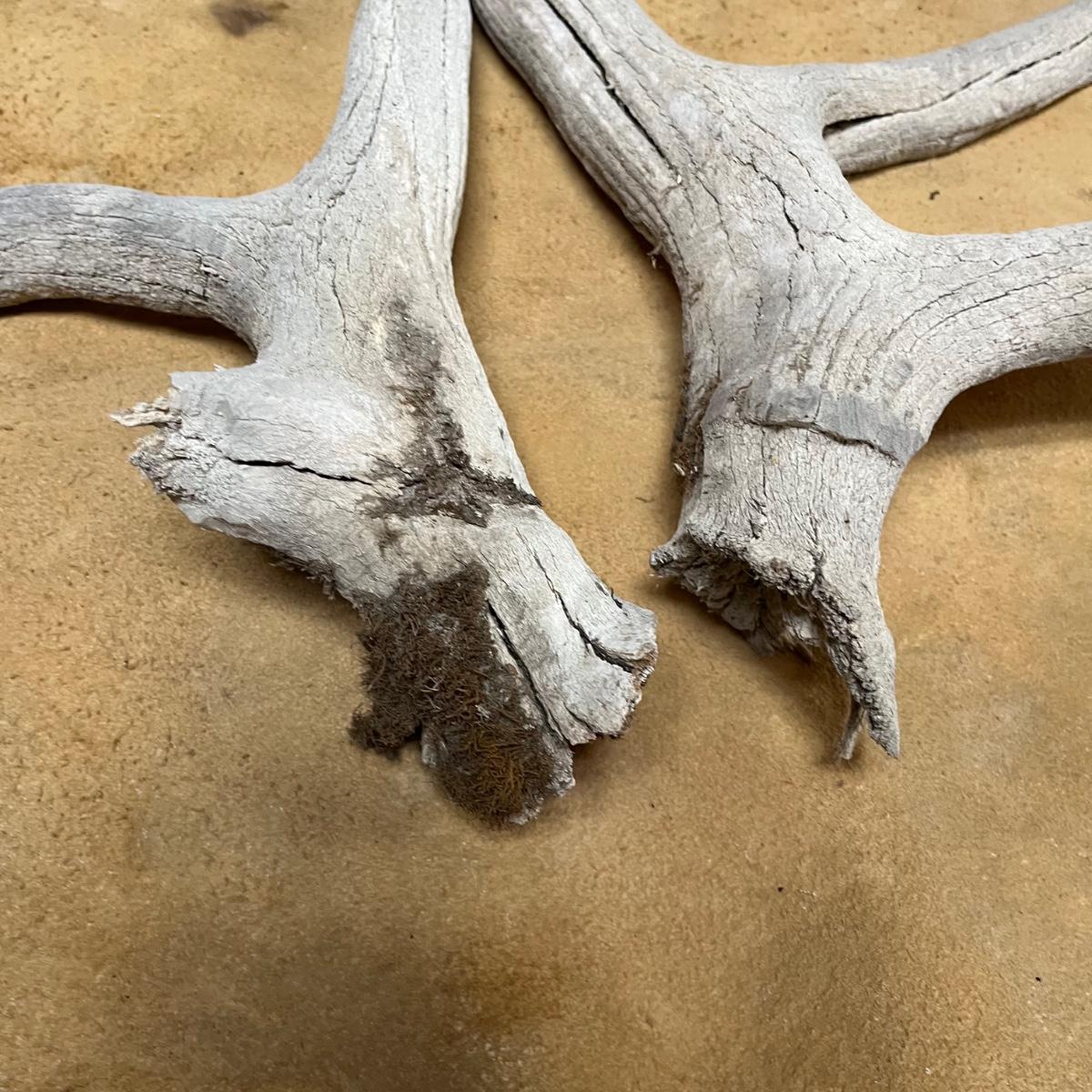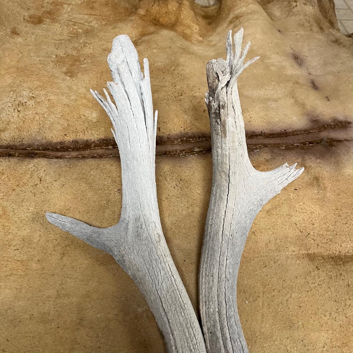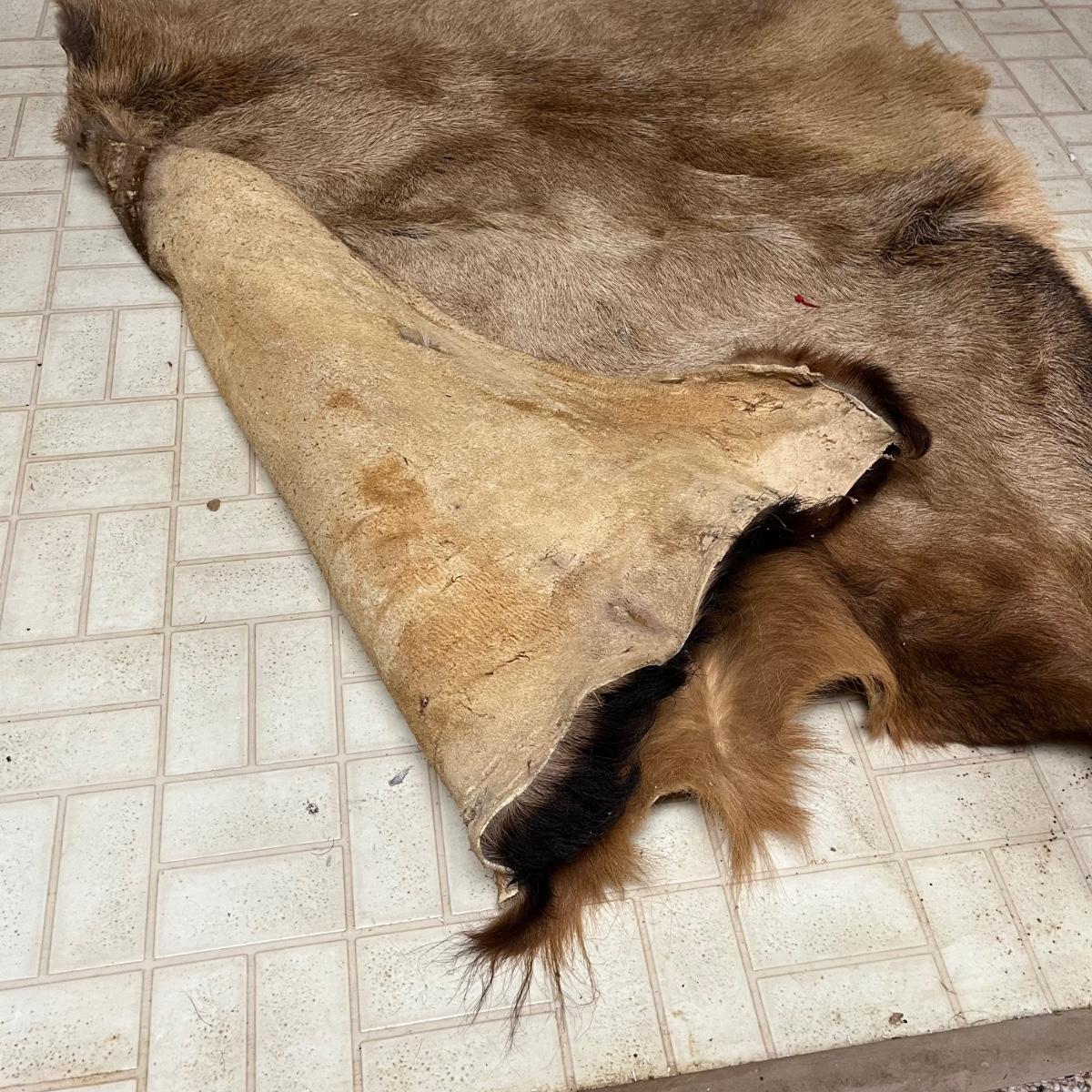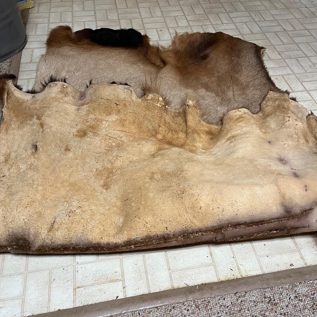 Lot includes an animal hide that measures 38” x 68” and two antlers.